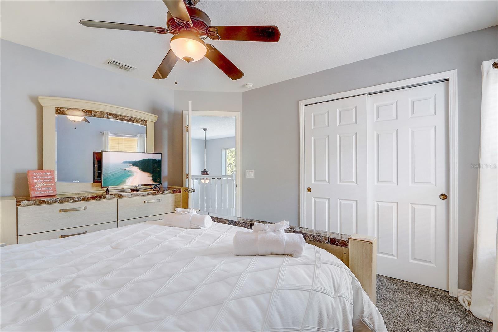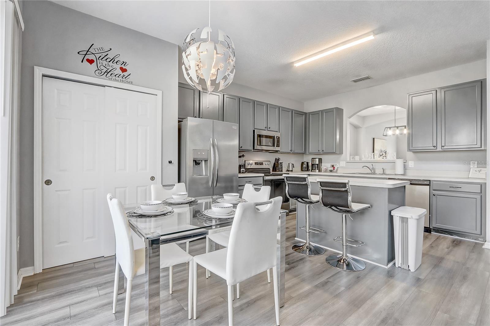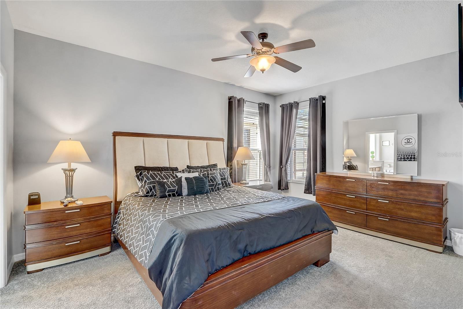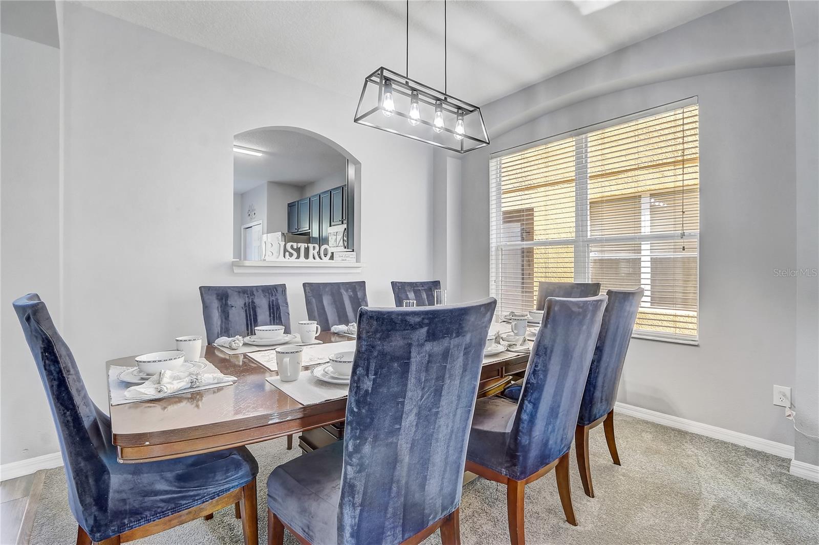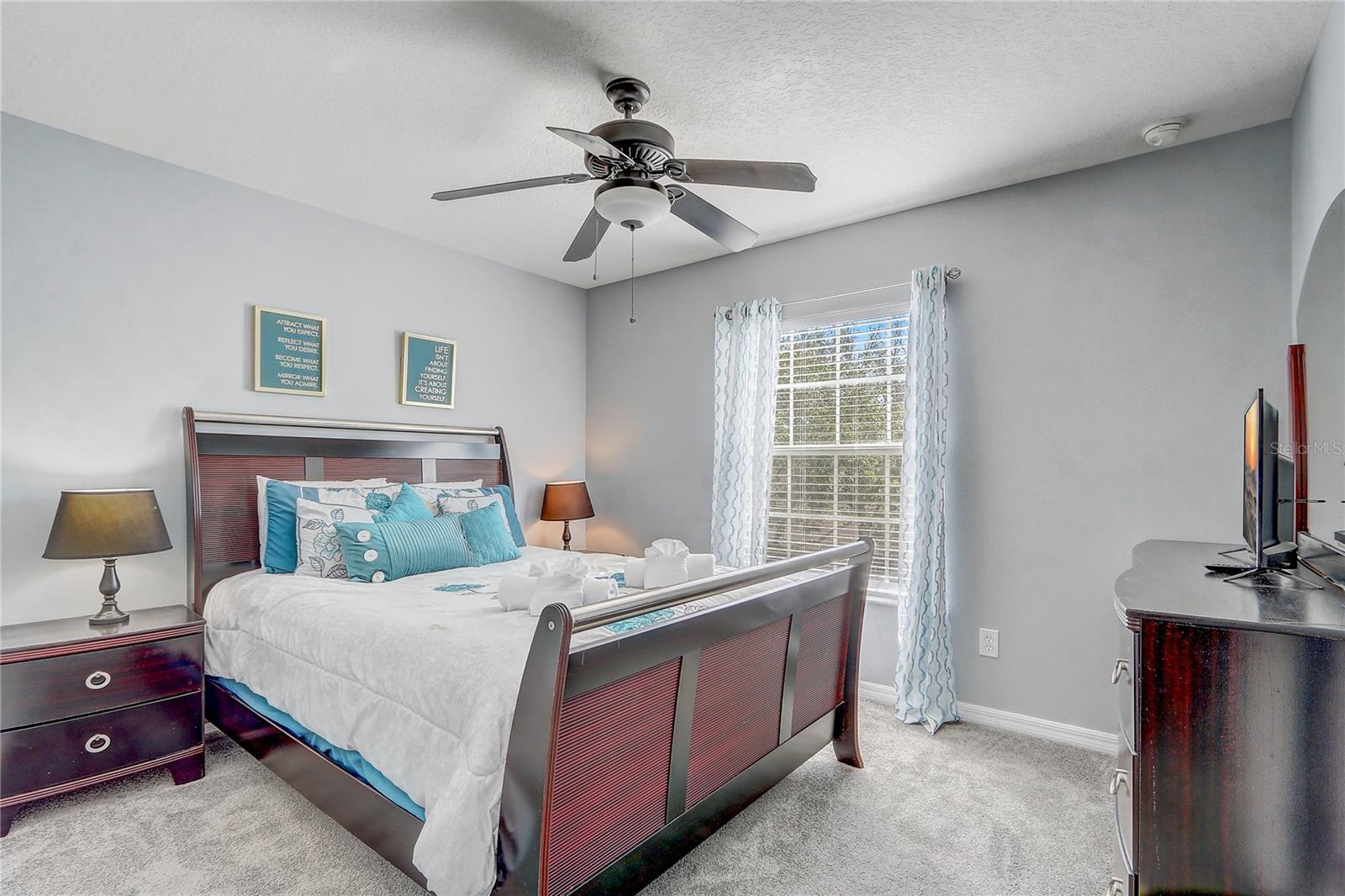 Welcome to this stunning 6-bedroom, 4.5-bathroom home located in the highly desirable gated Watersong community in Davenport, Florida. With 2,820 sq. ft. of living space, this fully furnished home (excluding select items) offers a perfect blend of style, comfort, and convenience. As you enter, you are greeted by a spacious family room and dining room combo, providing an open and inviting atmosphere. Just off the dining area, the kitchen features modern stainless steel appliances, a central island, ample cabinet space, and an eat-in area, making it the perfect place for family meals. The living room boasts soaring high ceilings, adding to the home's sense of grandeur. The primary bedroom is conveniently located on the main floor and includes a luxurious en-suite bathroom with dual sinks, a separate shower, and a soaking tub. Upstairs, a balcony overlooks the main living area, and a versatile loft space awaits – ideal for a game room, office, or additional living area. Five additional generously-sized bedrooms complete the upstairs, ensuring plenty of room for family and guests. Step outside to the heart of the home – a screened-in lanai with a sparkling inground pool and hot tub, all set against the backdrop of a spacious backyard. Recent upgrades to the home include vinyl flooring, new carpet, updated stainless steel appliances, new pool security gate, updated pool screens, and a new pool safety fence – all completed in 2024. Additional improvements include a new hot water heater, new washer, and new dryer in 2025, as well as a brand-new front door Wi-Fi system. Both AC units were replaced in 2023 and 2024, ensuring optimal comfort year-round. Residents of the Watersong community enjoy access to exceptional amenities, including a clubhouse, fitness center, pool and hot tub, playground, tennis courts, volleyball courts, and more. In addition to the fantastic amenities, the HOA fee covers lawn care, 24-hour guarded gate access, cable TV, internet, and valet trash service. Located just minutes from Disney World and other top attractions, this home offers the perfect location for those seeking both comfort and convenience in a vibrant community.