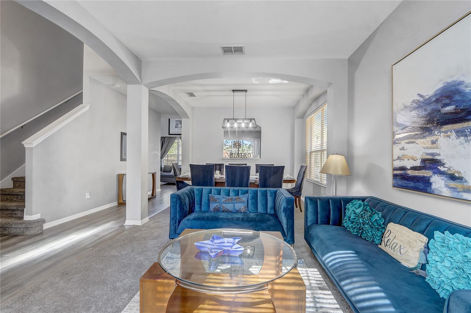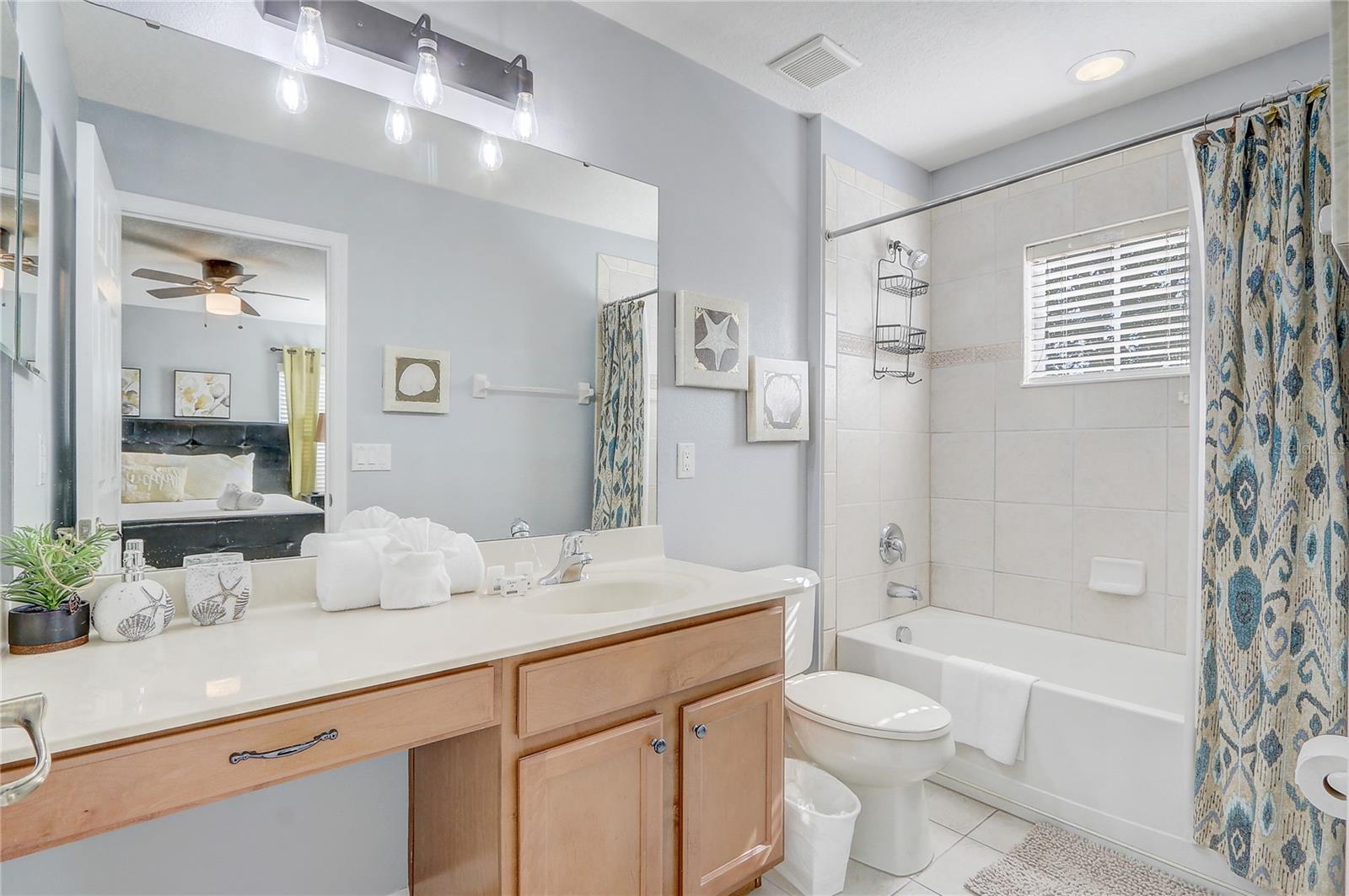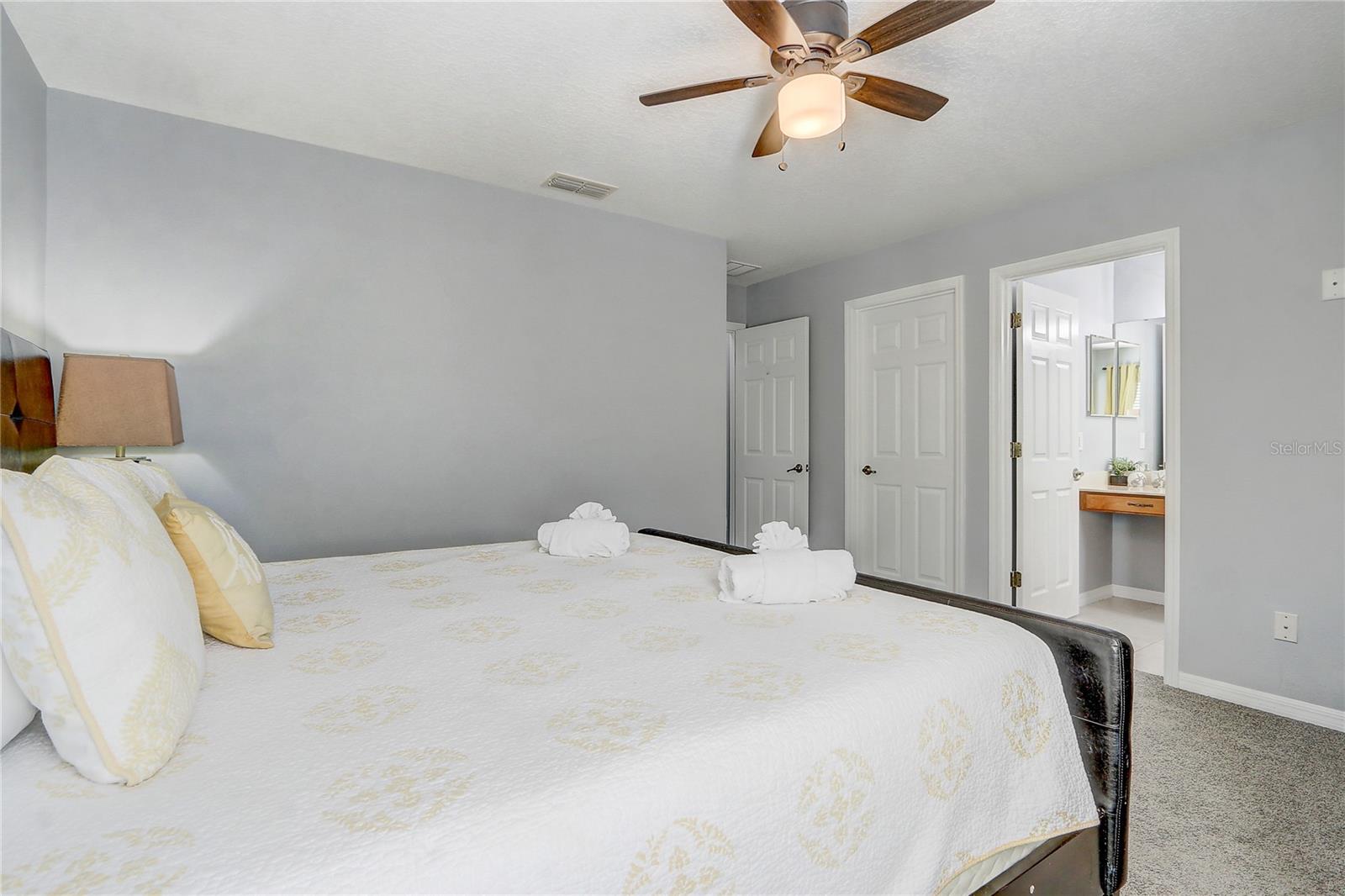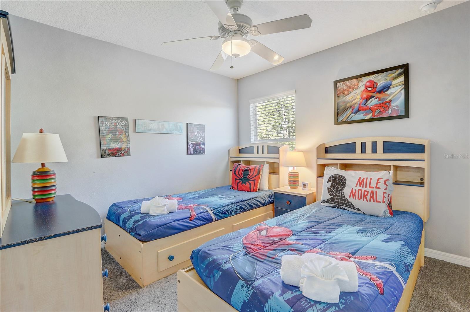 Welcome to this stunning 6-bedroom, 4.5-bathroom home located in the highly desirable gated Watersong community in Davenport, Florida. With 2,820 sq. ft. of living space, this fully furnished home (excluding select items) offers a perfect blend of style, comfort, and convenience. As you enter, you are greeted by a spacious family room and dining room combo, providing an open and inviting atmosphere. Just off the dining area, the kitchen features modern stainless steel appliances, a central island, ample cabinet space, and an eat-in area, making it the perfect place for family meals. The living room boasts soaring high ceilings, adding to the home's sense of grandeur. The primary bedroom is conveniently located on the main floor and includes a luxurious en-suite bathroom with dual sinks, a separate shower, and a soaking tub. Upstairs, a balcony overlooks the main living area, and a versatile loft space awaits – ideal for a game room, office, or additional living area. Five additional generously-sized bedrooms complete the upstairs, ensuring plenty of room for family and guests. Step outside to the heart of the home – a screened-in lanai with a sparkling inground pool and hot tub, all set against the backdrop of a spacious backyard. Recent upgrades to the home include vinyl flooring, new carpet, updated stainless steel appliances, new pool security gate, updated pool screens, and a new pool safety fence – all completed in 2024. Additional improvements include a new hot water heater, new washer, and new dryer in 2025, as well as a brand-new front door Wi-Fi system. Both AC units were replaced in 2023 and 2024, ensuring optimal comfort year-round. Residents of the Watersong community enjoy access to exceptional amenities, including a clubhouse, fitness center, pool and hot tub, playground, tennis courts, volleyball courts, and more. In addition to the fantastic amenities, the HOA fee covers lawn care, 24-hour guarded gate access, cable TV, internet, and valet trash service. Located just minutes from Disney World and other top attractions, this home offers the perfect location for those seeking both comfort and convenience in a vibrant community.