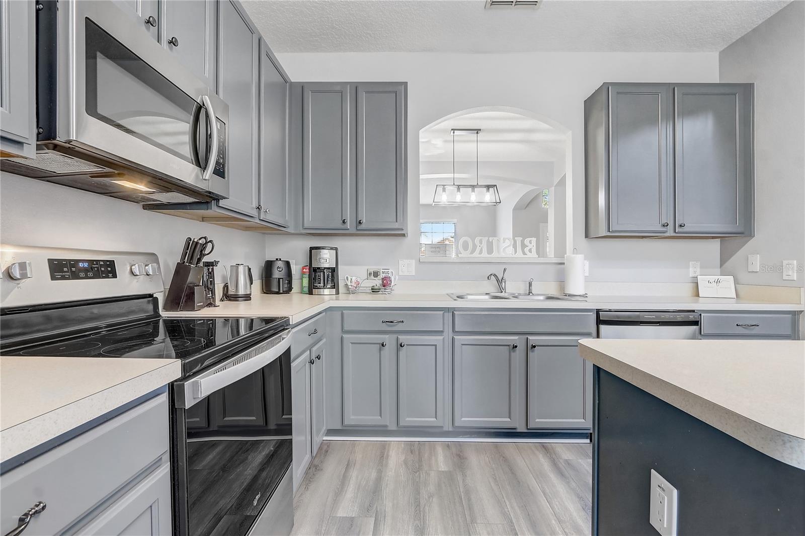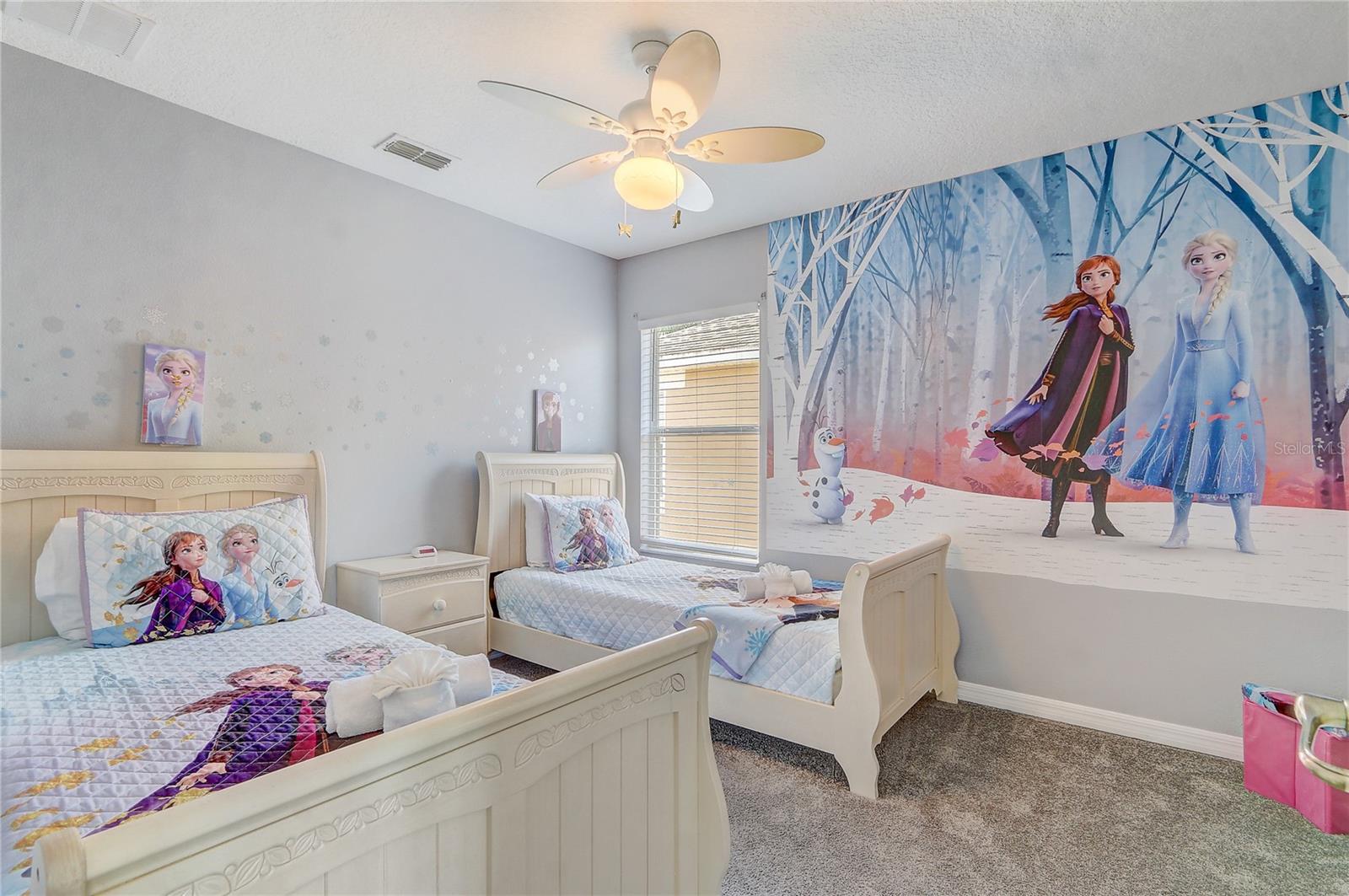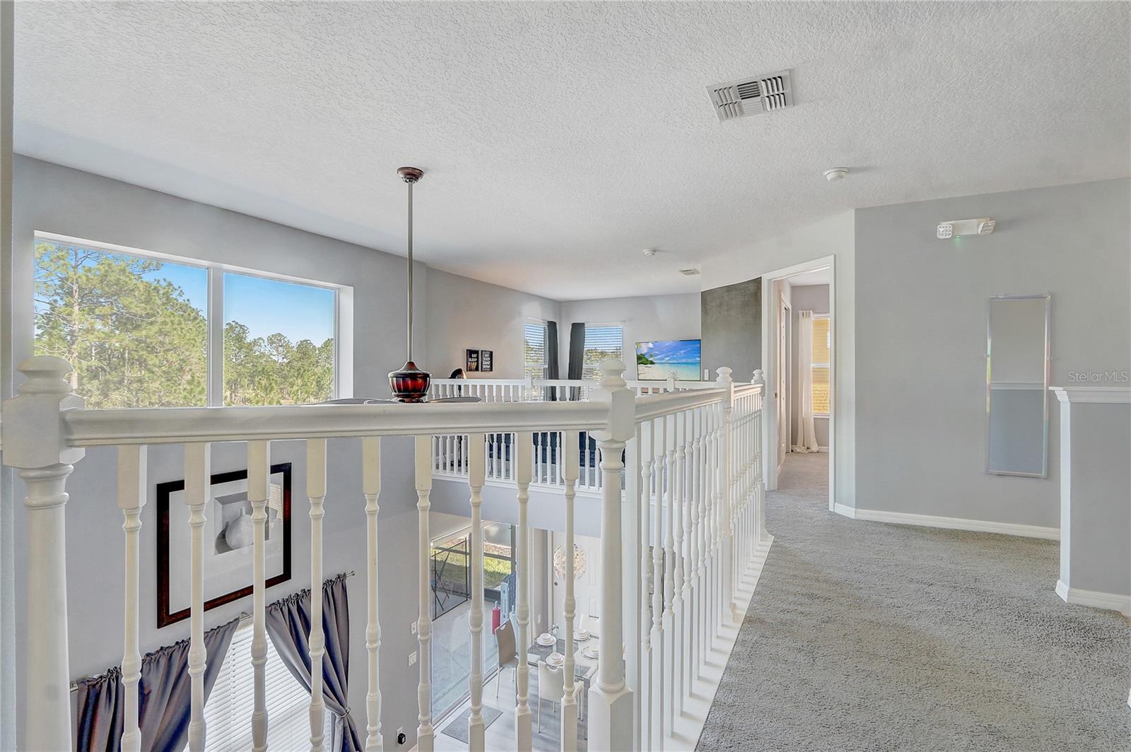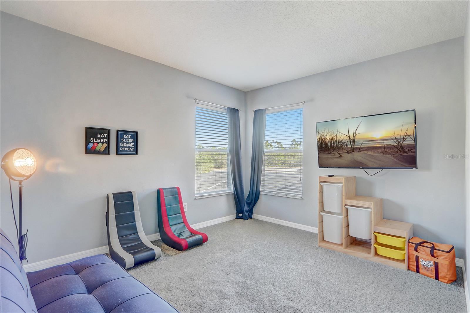 Welcome to this stunning 6-bedroom, 4.5-bathroom home located in the highly desirable gated Watersong community in Davenport, Florida. With 2,820 sq. ft. of living space, this fully furnished home (excluding select items) offers a perfect blend of style, comfort, and convenience. As you enter, you are greeted by a spacious family room and dining room combo, providing an open and inviting atmosphere. Just off the dining area, the kitchen features modern stainless steel appliances, a central island, ample cabinet space, and an eat-in area, making it the perfect place for family meals. The living room boasts soaring high ceilings, adding to the home's sense of grandeur. The primary bedroom is conveniently located on the main floor and includes a luxurious en-suite bathroom with dual sinks, a separate shower, and a soaking tub. Upstairs, a balcony overlooks the main living area, and a versatile loft space awaits – ideal for a game room, office, or additional living area. Five additional generously-sized bedrooms complete the upstairs, ensuring plenty of room for family and guests. Step outside to the heart of the home – a screened-in lanai with a sparkling inground pool and hot tub, all set against the backdrop of a spacious backyard. Recent upgrades to the home include vinyl flooring, new carpet, updated stainless steel appliances, new pool security gate, updated pool screens, and a new pool safety fence – all completed in 2024. Additional improvements include a new hot water heater, new washer, and new dryer in 2025, as well as a brand-new front door Wi-Fi system. Both AC units were replaced in 2023 and 2024, ensuring optimal comfort year-round. Residents of the Watersong community enjoy access to exceptional amenities, including a clubhouse, fitness center, pool and hot tub, playground, tennis courts, volleyball courts, and more. In addition to the fantastic amenities, the HOA fee covers lawn care, 24-hour guarded gate access, cable TV, internet, and valet trash service. Located just minutes from Disney World and other top attractions, this home offers the perfect location for those seeking both comfort and convenience in a vibrant community.