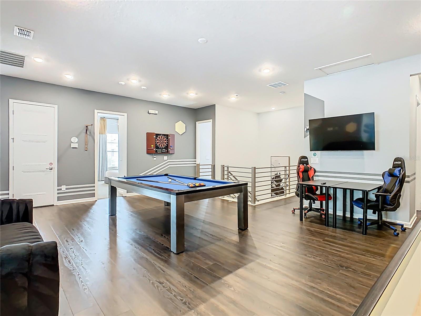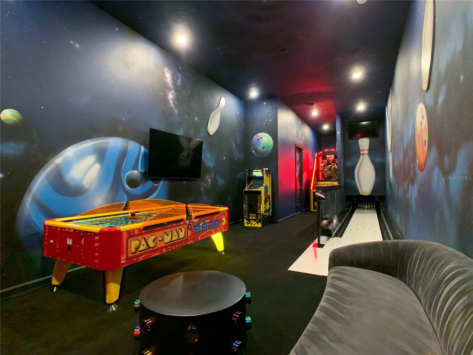 Your Dream Investment Awaits: Unforgettable 11-Bedroom Luxury Vacation Home! This is more than just a property; it’s an incredible opportunity you won’t want to miss! Imagine owning a stunning 11-bedroom luxury vacation home nestled in the coveted Villatel Village—perfectly designed for unforgettable family gatherings and joyful getaways with friends. Step inside and be captivated by the grand foyer that leads to a spacious open-concept area with soaring 12-foot ceilings. The oversized gourmet kitchen is a chef’s dream, equipped with everything you need to create memorable meals, while the expansive dining table—seating sixteen—sets the stage for laughter-filled family feasts. The outdoor living area is a true oasis, featuring a gorgeous pool and a rejuvenating spa, all surrounded by tranquil conservation views that provide the ultimate in privacy. This home is an entertainer’s paradise, offering themed bunk rooms, two exciting game rooms, a thrilling bowling alley, and a state-of-the-art movie theater. A well-equipped fitness room ensures you can stay active, and various cozy gathering spots allow everyone to relax in comfort. With all bedrooms boasting en-suite baths, your guests will enjoy their own private retreats. The first floor features an electric neon blue arcade room, an owner’s suite, and two additional bedrooms, while the second floor is dedicated to fun, housing another entertainment room, the theater, and eight more beautifully styled bedrooms, including unique themed bunk rooms. This home is packed with exceptional upgrades—designer lighting, quartz countertops, stylish window treatments, and ceiling fans elevate the living experience. The impressive 40-foot pool with a sun shelf and spa is perfect for sunny days, complemented by convenient pool baths and multiple laundry areas. What truly makes this property a must-have is the hassle-free rental management by Villatel Village, which handles everything from marketing to bookings and maintenance. This means a seamless investment experience with minimal effort on your part. Villatel Village is a purpose-built community spanning 40 acres, featuring 71 exquisite designer homes and a brand-new 15,000-square-foot Event & Conference Center—ideal for weddings, parties, and corporate gatherings. Located within the vibrant Solterra Resort, you and your guests will have access to a wealth of family-friendly amenities, including a clubhouse, resort-style pool, lazy river, tennis courts, and fitness center—all just moments away from Central Florida’s world-famous attractions, beautiful beaches, and premier dining and shopping. Don’t let this opportunity pass you by! Schedule your private showing today and step into a world of luxury and leisure that you and your family can cherish for years to come!