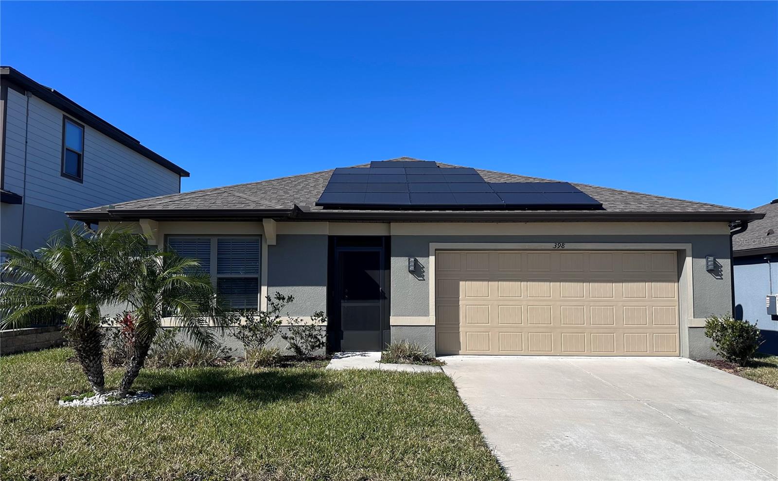 Price below value !!! Welcome to this Beautiful 4-bedroom, 2-bathroom home with SOLAR PANELS. Energy efficiency bringing your monthly electric bill to under $50. kitchen comes equipped with quartz counter tops, tile backsplash, Stainless Steel Appliances and modern pendant lighting. The large center island is perfect for those who like to cook keeping the stove, sink, refrigerator and open counter space all within reach. The open concept living space incorporates a designated dining area and family room. The sliding doors lead out to a screened in porch and a large fenced in yard perfect for those with little ones or pets. Primary bedroom boasts a large bathroom with double sinks, tiled shower, separate water closet and large walk in closet. The other three bedrooms share a central full bath with tub. This home is equipped with a water softener known for benefits of healthier skin and hair, improved appliance performance, easier cleaning and lower energy bills. The HOA includes a community pool, playground and dog park. Conveniently located near major highways, this property offers easy access to shopping, dining, and entertainment throughout the Central Florida area. Schedule your showing today!
