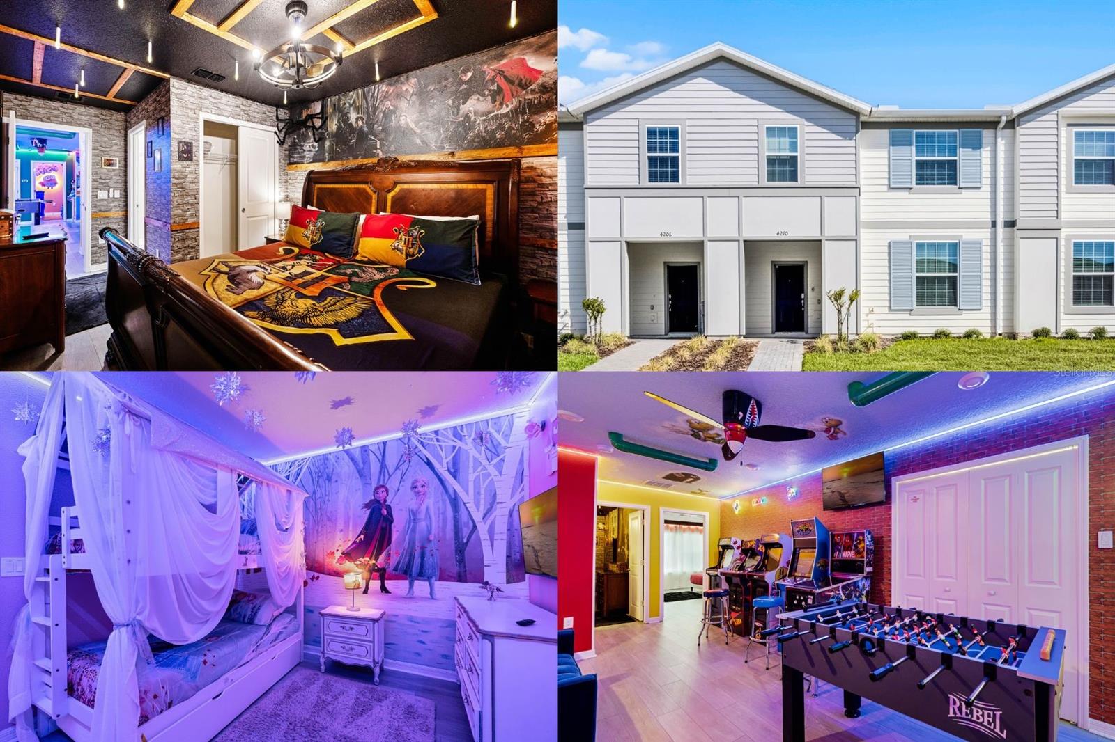 Step into a world of magic and wonder in this stunning 5 bedroom, 4.5 bathroom townhome in the desirable community of Windsor Island Resort. This property is fully furnished, and designed to WOW guests the moment they walk through the door. With INCREDIBLE THEME ROOMS and top-tier amenities this property is a must see. Sleeps up to 12 guests! Average nightly rental rate is $292 with a 72% occupancy rate. Themed bedrooms include Mickey and Minnie Magic, Frozen Fantasy, Minions Mayhem, Harry Potter Hideaway, and Star Wars Galaxy. The upstairs loft has been transformed into an EPIC Mario Brothers game room featuring 9 arcade games, foosball, and immersive LED lighting. The spacious open-concept kitchen, dining, and great room are perfect for entertaining. The home features stylish ceramic tile and wood laminate flooring throughout - no carpet! Your guests can enjoy the private, screened-in heated pool with LED lighting, creating the ultimate nighttime ambiance, along with an outdoor half-bathroom for added convenience. Located in one of the top resort communities near Disney, Windsor Island Resort amenities include a lazy river, water slides, resort-style pool, splash playground, clubhouse, fitness center, mini golf, arcade game room, tennis, on-site dining and more! Whether you're looking for a high-performing short-term rental or the ultimate vacation home, this property is a turnkey investment with everything needed to attract guests and maximize bookings!