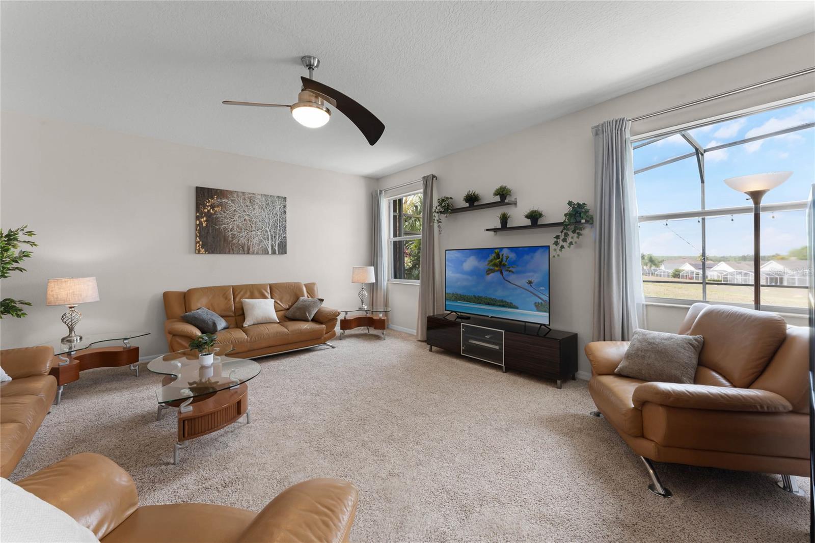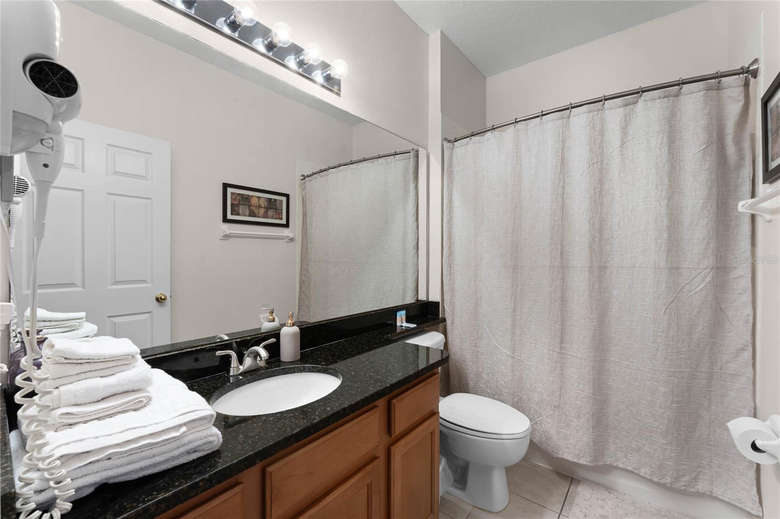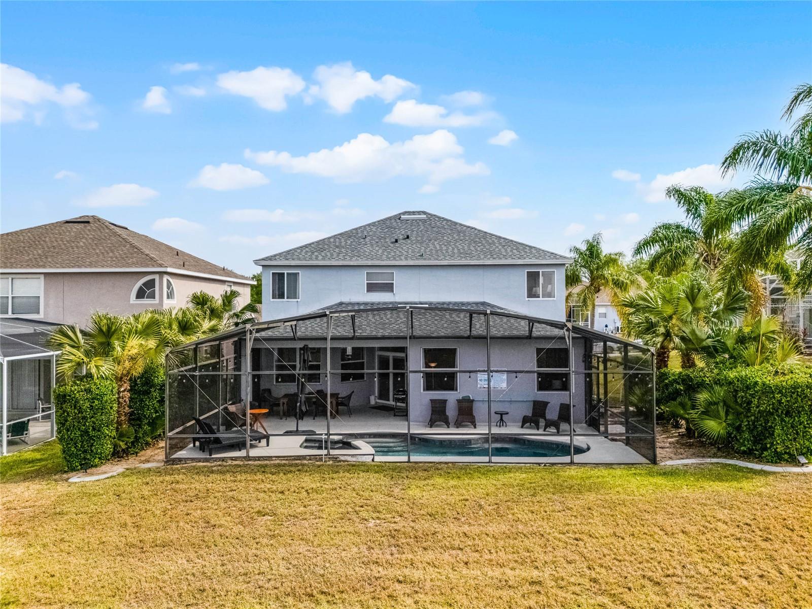 Discover this meticulously maintained 5-bedroom, 3-bathroom short-term rental home, perfectly situated on the golf course with a sought-after southwest-facing pool—offering sun all day long. Spanning approximately 3,000 square feet, this spacious retreat comfortably sleeps 10 guests and is fully furnished, ready for vacation rentals with bookings already in place—just bring your suitcase! The home features a bright and airy layout with abundant natural light pouring in. The first floor includes a convenient bedroom and full bathroom, ideal for guests. Upstairs, you'll find the primary suite along with three additional bedrooms and a loft space equipped with a desk—perfect for remote work or relaxation. The garage has been transformed into a fun-filled game room, adding to the home's entertainment appeal. Outside, enjoy the screened-in pool and spa, resurfaced in 2018, surrounded by scenic golf course views. The roof was replaced in 2024, and both A/C units were upgraded in 2019, ensuring peace of mind and energy efficiency. Whether you're seeking a personal vacation home or a lucrative investment property, this turn-key residence offers it all—modern updates, prime location, and outstanding amenities for guests to enjoy. The community offers incredible amenities, including a championship golf course, pool, playground, and tennis courts. This location is minutes from shopping and restaurants, 20 minutes from Disney, 45 minutes to Orlando International Airport, 30 minutes to SeaWorld, and 35 minutes to Universal Studios.