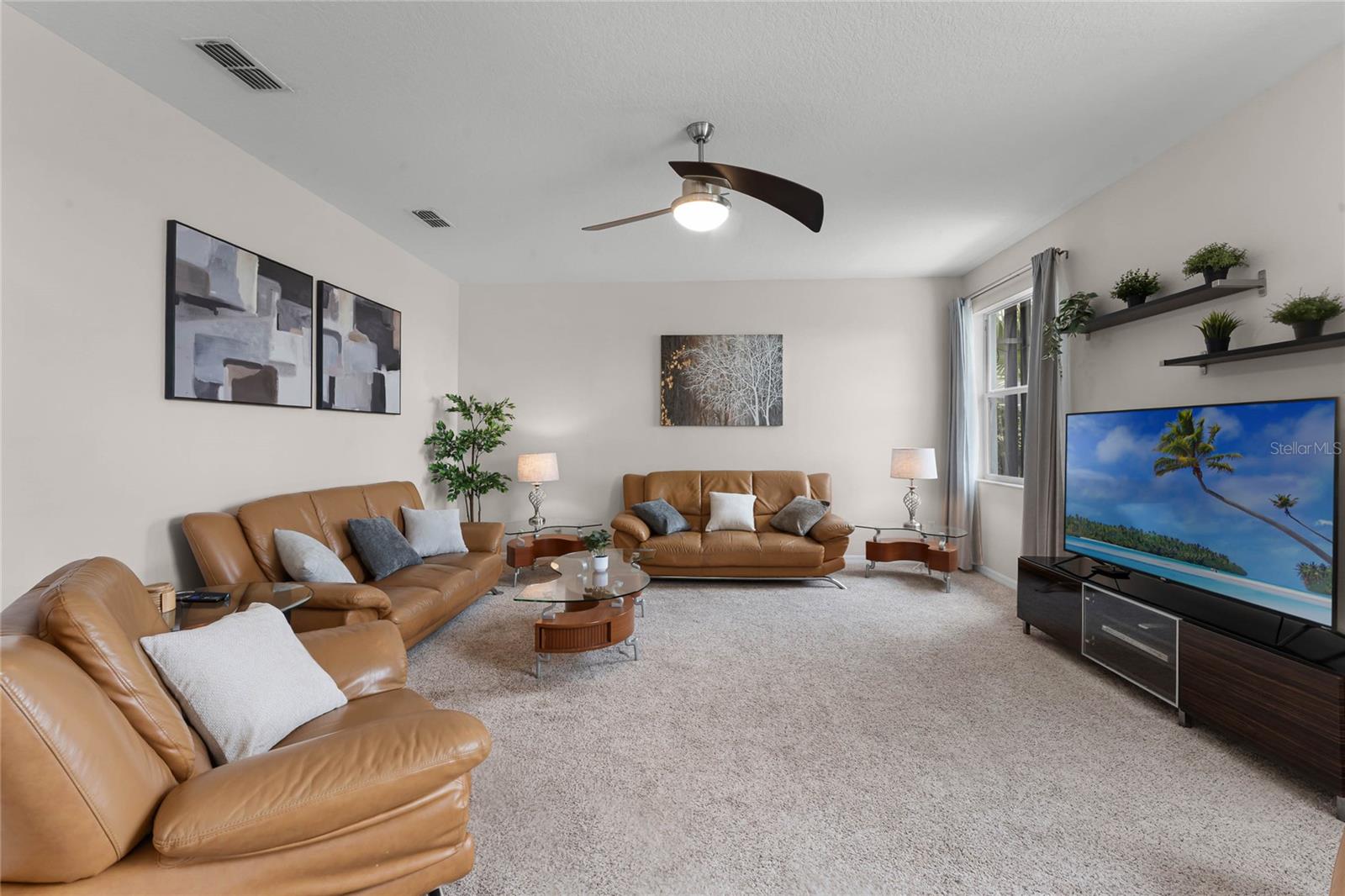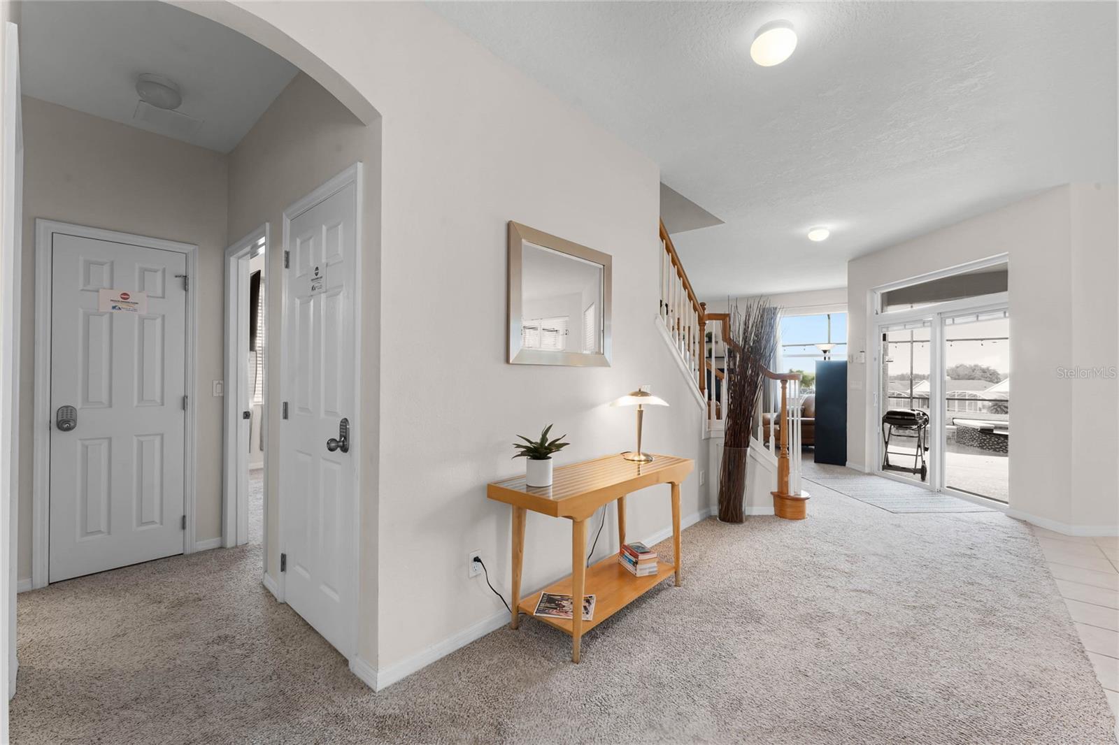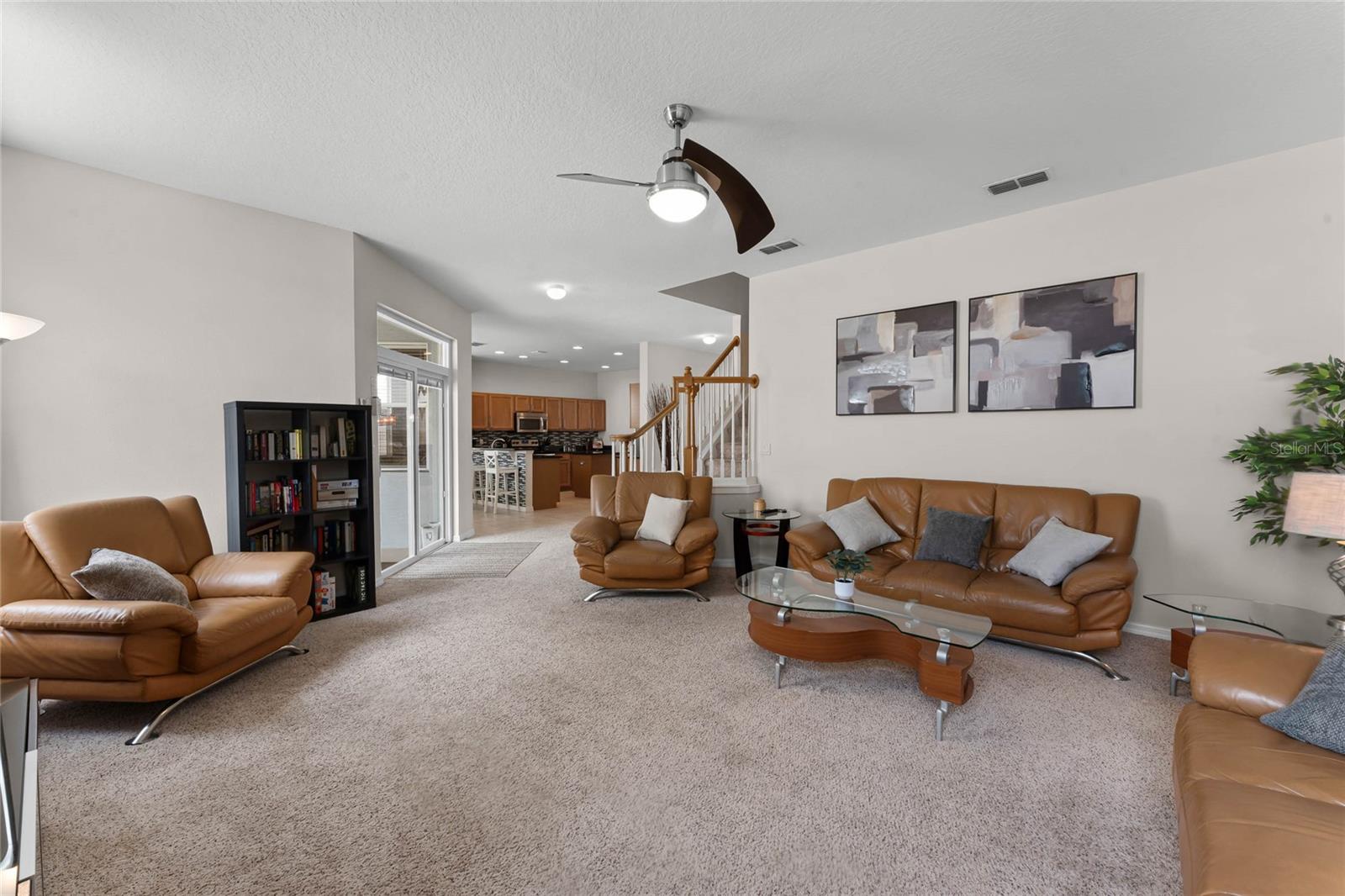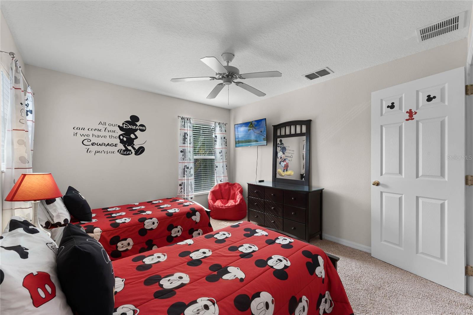 Discover this meticulously maintained 5-bedroom, 3-bathroom short-term rental home, perfectly situated on the golf course with a sought-after southwest-facing pool—offering sun all day long. Spanning approximately 3,000 square feet, this spacious retreat comfortably sleeps 10 guests and is fully furnished, ready for vacation rentals with bookings already in place—just bring your suitcase! The home features a bright and airy layout with abundant natural light pouring in. The first floor includes a convenient bedroom and full bathroom, ideal for guests. Upstairs, you'll find the primary suite along with three additional bedrooms and a loft space equipped with a desk—perfect for remote work or relaxation. The garage has been transformed into a fun-filled game room, adding to the home's entertainment appeal. Outside, enjoy the screened-in pool and spa, resurfaced in 2018, surrounded by scenic golf course views. The roof was replaced in 2024, and both A/C units were upgraded in 2019, ensuring peace of mind and energy efficiency. Whether you're seeking a personal vacation home or a lucrative investment property, this turn-key residence offers it all—modern updates, prime location, and outstanding amenities for guests to enjoy. The community offers incredible amenities, including a championship golf course, pool, playground, and tennis courts. This location is minutes from shopping and restaurants, 20 minutes from Disney, 45 minutes to Orlando International Airport, 30 minutes to SeaWorld, and 35 minutes to Universal Studios.
