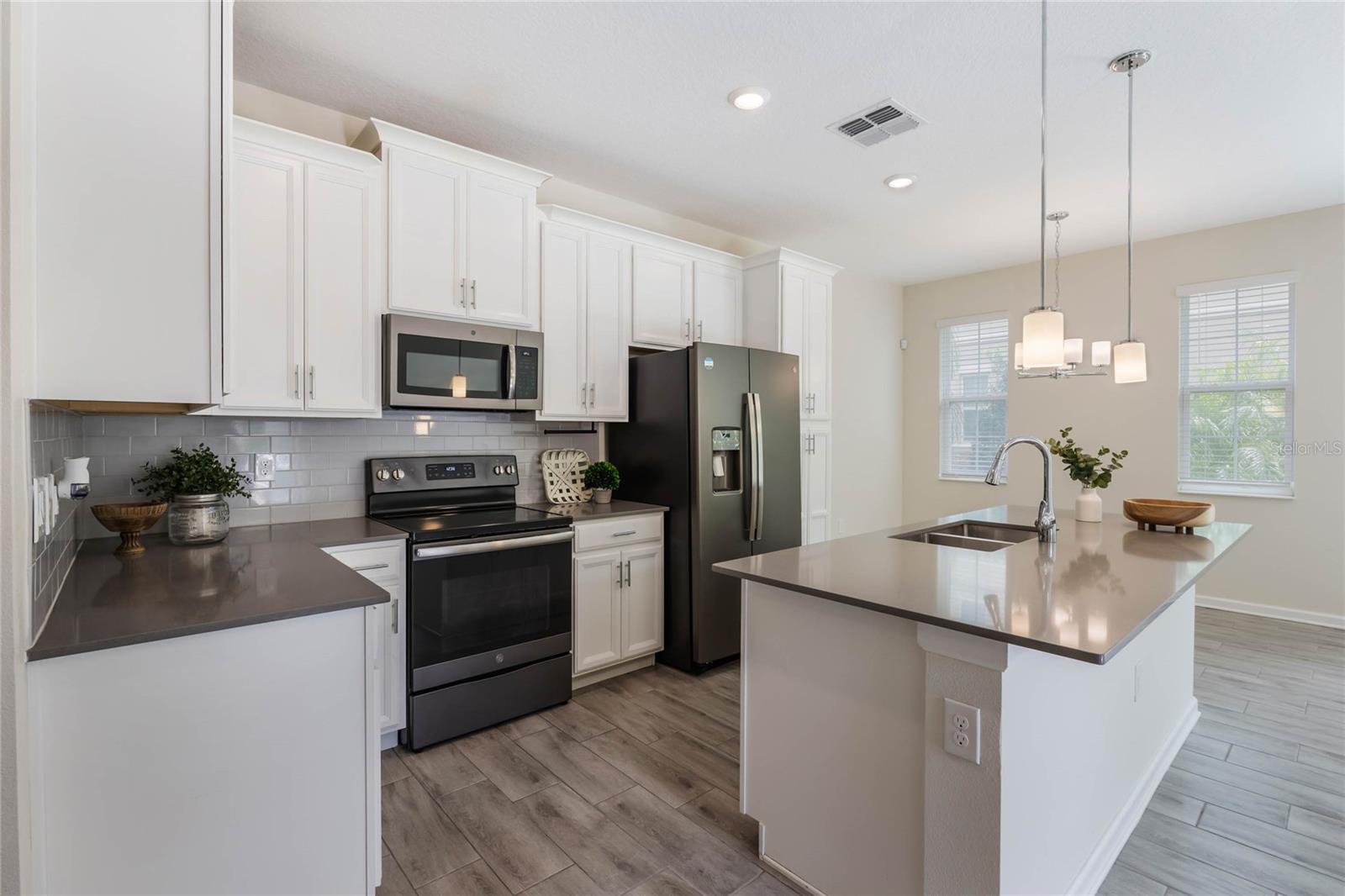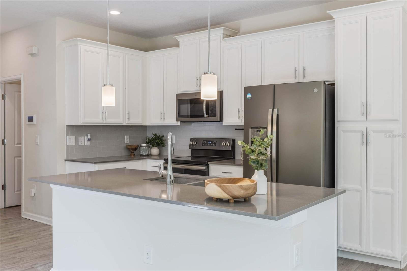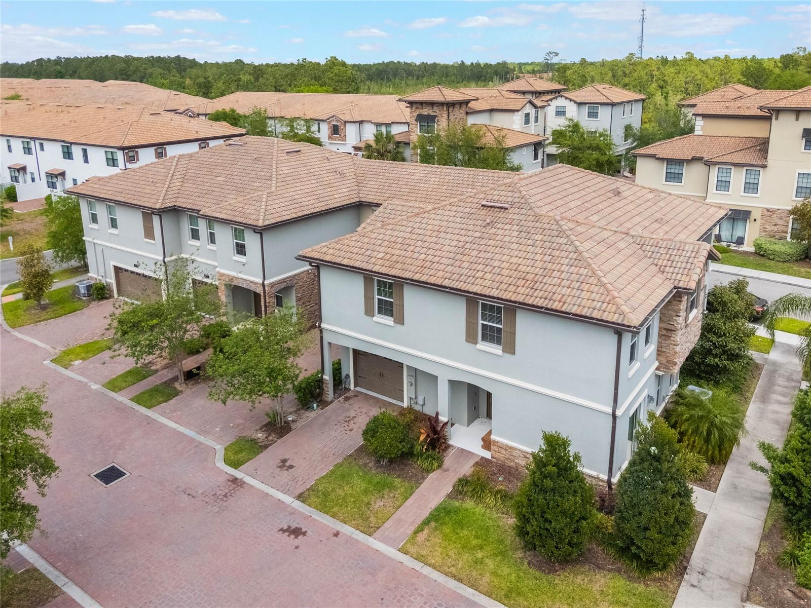 One or more photo(s) has been virtually staged. Experience the best of resort-style living in this beautifully designed townhome, located in the highly sought-after gated community of ChampionsGate. Known as a premier destination in Orlando’s “vacation zone,” this community offers world-class amenities, including a lazy river, water slides, multiple pools, a movie theater, an on-site restaurant, a fitness center, and more—all accessible with ownership! This stunning townhome is uniquely positioned for maximum privacy, sharing only one wall with neighboring properties. A brick-paved driveway and sidewalk add a touch of elegance as you arrive. Inside, you'll find tastefully selected finishes that complement nearly any aesthetic. The first floor features wood-look tile floors, abundant natural light, and a modern kitchen equipped with 48” white cabinetry, quartz countertops, a stylish tile backsplash, a large island with an oversized sink, and pendant lighting. Unlike many vacation properties, this home includes its own private washer and dryer—no need for public laundry facilities! Upstairs, a spacious loft leads to three well-sized bedrooms. The primary suite boasts a walk-in closet and an ensuite bath with dual sinks and a stand-alone shower. Located in a residential-only section of ChampionsGate, short-term rentals are not permitted, ensuring a peaceful and relaxed atmosphere. Conveniently located just over 12 miles from Disney, approximately 15 miles from SeaWorld, and only 1 mile from the nearest grocery store, this home offers both luxury and convenience. For golf enthusiasts, ChampionsGate is home to two 18-hole championship courses designed by Greg Norman. Don’t miss the opportunity to own a piece of paradise in one of Orlando’s most desirable communities! Schedule your private showing today.