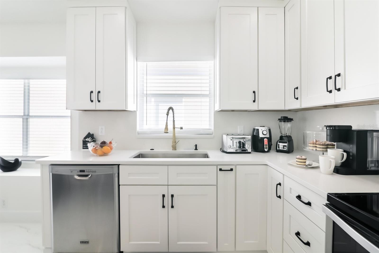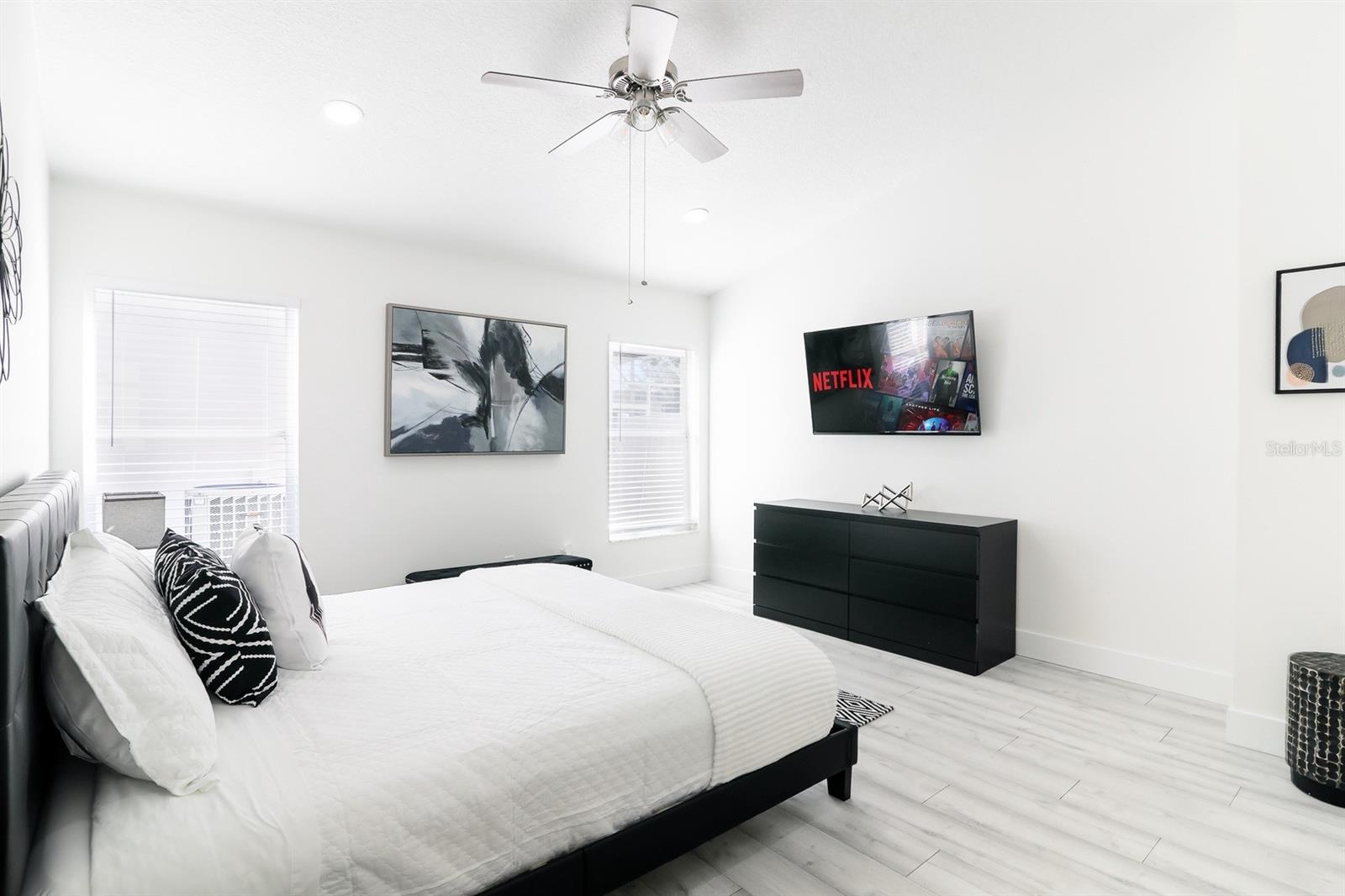 This Fully Furnished, Fully remodeled home with private SOUTH facing pool is in the community of Lake Davenport Estates. No detail left untouched this home boasts so many upgrades with a modern feel throughout perfect for a short term rental or residential home. This 4 bed, 2 bath open floor plan has beautiful upgraded ceramic tile flooring in kitchen and wet areas, and luxury vinyl planking in bedrooms In the kitchen you will find a Large island with quartz countertops, upgraded cabinets, hardware, stainless steel appliances, pendant lights and touchless faucet. The bathrooms have updated vanities, tiled showers with glass doors, upgraded faucets, rain head shower head, touch light mirrors and a free standing stylish tub. The outside lanai has an oversized 24 X 18 South facing pool. The fenced yard creates the perfect private oasis. HOA is only $40 a month and the location is great for visiting guests close to Hwy 27, Theme parks, Restaurants, Sunset Walk, Shopping and more. Do not miss this opportunity to own a rental ready vacation home or step into your newly remodeled personal residence. Roof 2018 HVAC 2023 New Pool Pump and LED pool lights