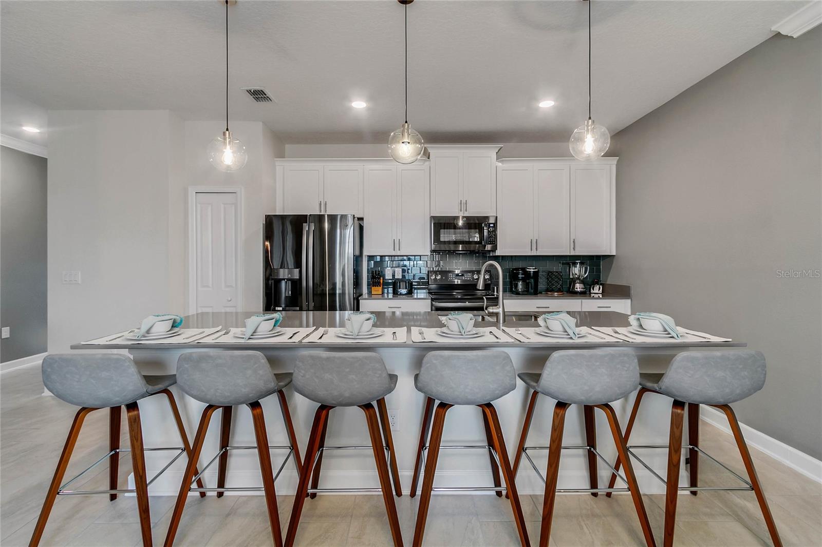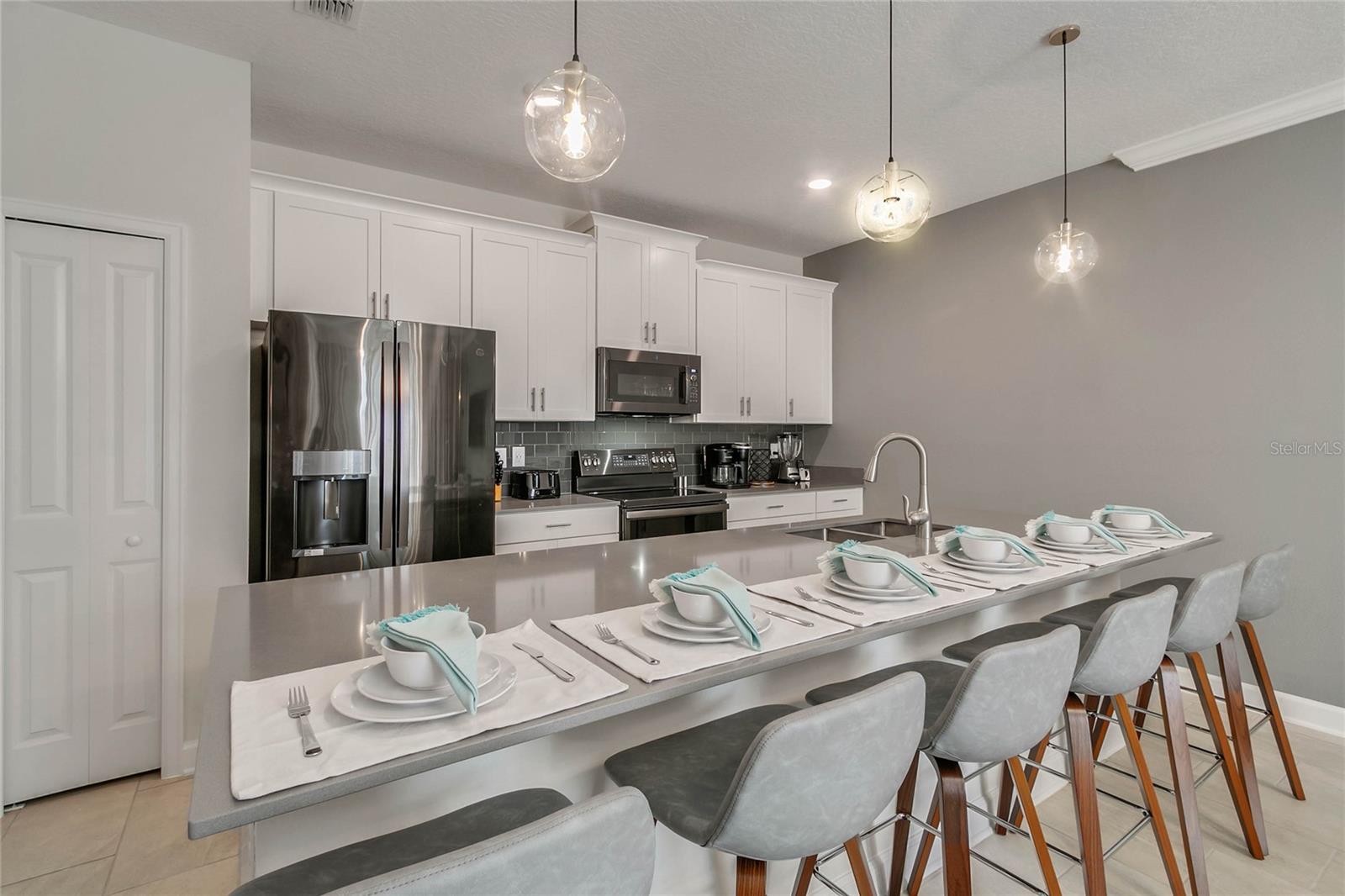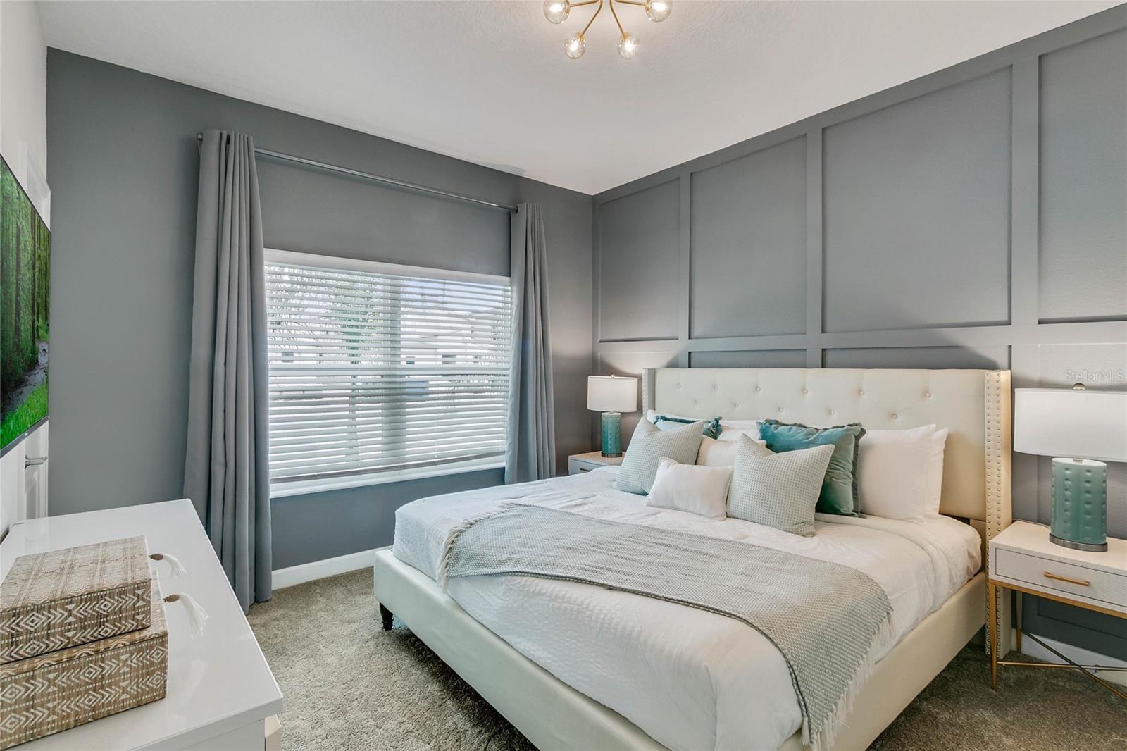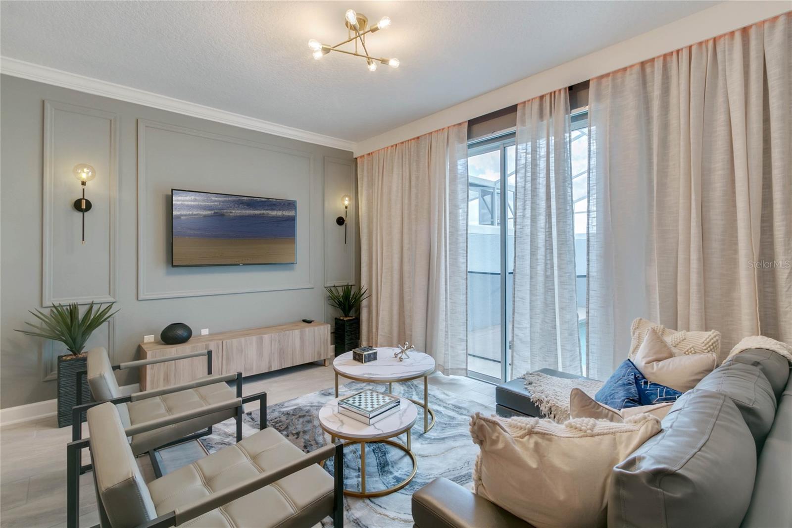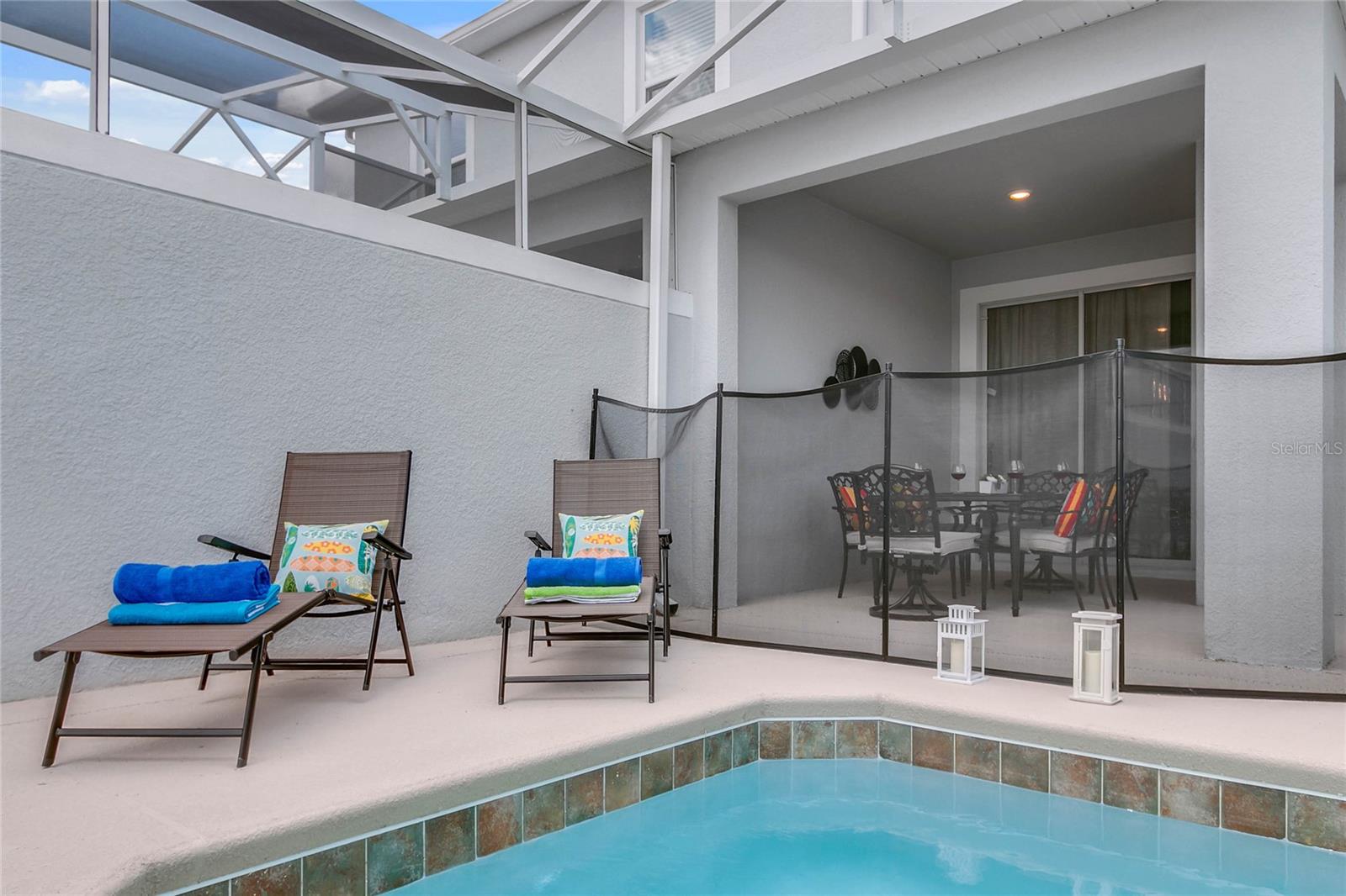 This professionally designed upscale vacation home offers an exceptional investment opportunity in Champions Gate Resort. This stunning furnished four-bedroom, three-bathroom townhome features a private pool, combining luxury, comfort, and convenience. The first floor boasts a spacious living area, perfect for entertaining or unwinding, along with an upgraded kitchen featuring GE Profile appliances and premium cabinetry. Sliding glass doors open to a screened-in patio and private pool, providing a serene outdoor retreat to bask in the Florida sunshine. The well-designed floor plan includes a convenient downstairs bedroom and full bathroom, while the master suite and two additional bedrooms are located upstairs. Residents enjoy access to The Retreat Club, just a short walk away, offering a public pool, water slides, beach volleyball, and a bar. Additionally, the renowned Oasis Clubhouse, one of the best in the greater Orlando area, features a restaurant, bar, fitness center, cinema, game room, and an incredible resort-style pool area complete with a water playground, massive swimming pool, and a relaxing lazy river. Ideally located with easy access to Disney World and Orlando’s top attractions, this home is the perfect choice for vacationers and investors seeking a premier resort-style living experience. Some furniture may have been updated. Room measurements are approximate.