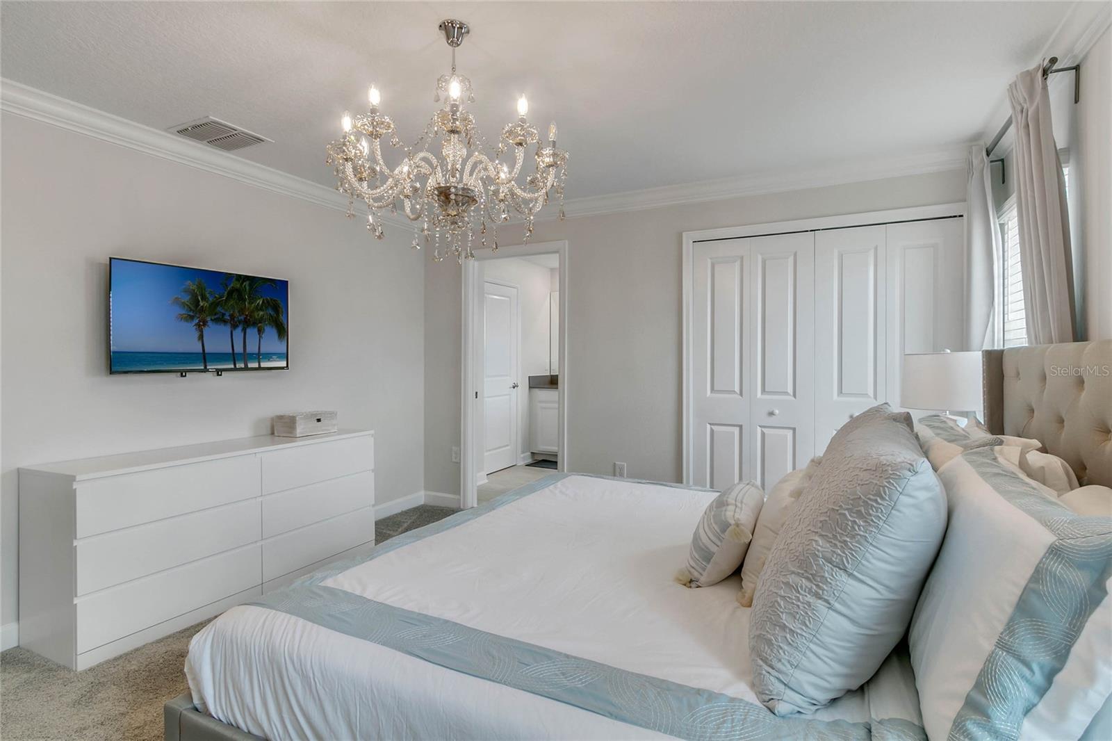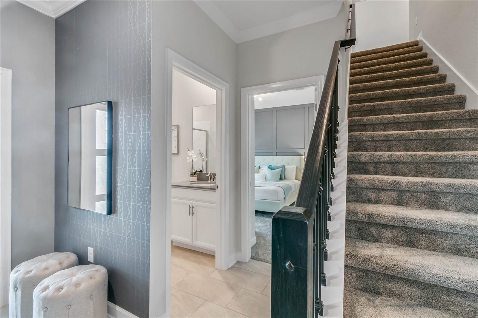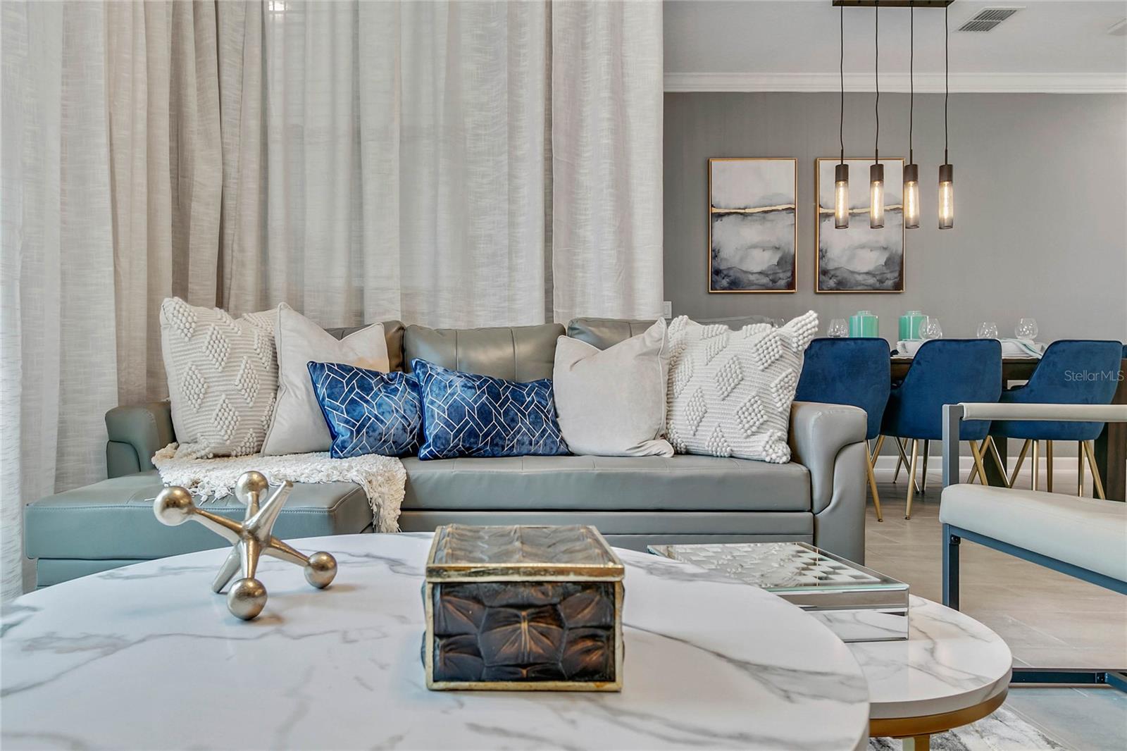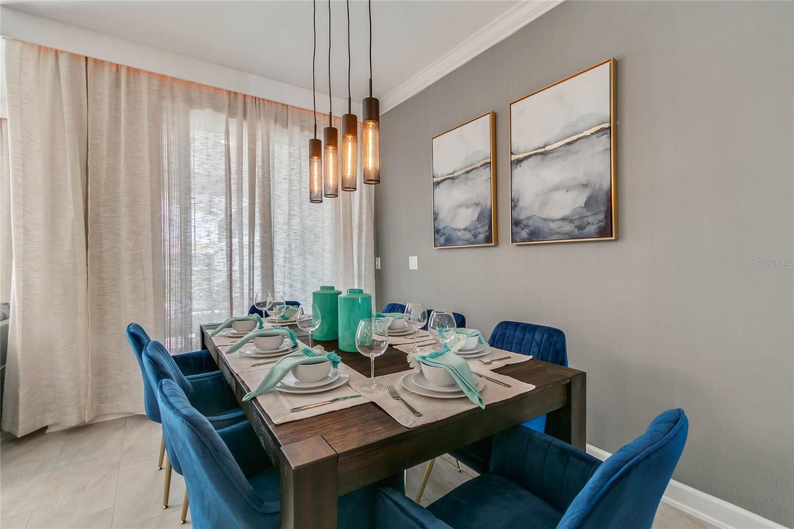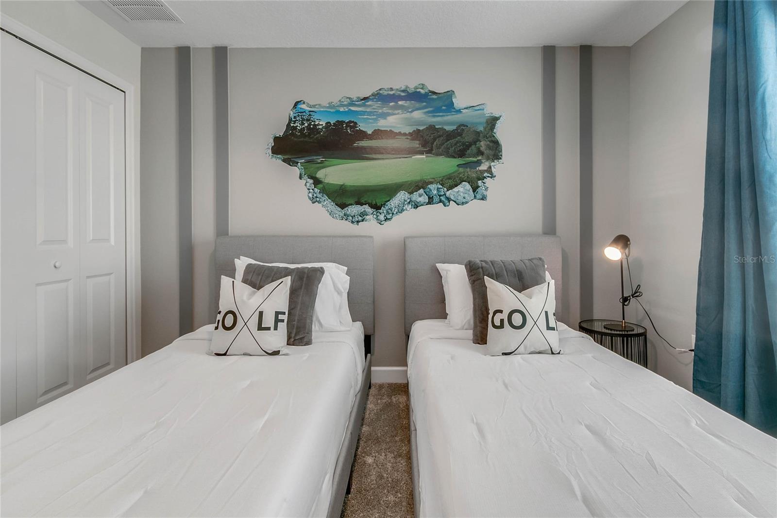 This professionally designed upscale vacation home offers an exceptional investment opportunity in Champions Gate Resort. This stunning furnished four-bedroom, three-bathroom townhome features a private pool, combining luxury, comfort, and convenience. The first floor boasts a spacious living area, perfect for entertaining or unwinding, along with an upgraded kitchen featuring GE Profile appliances and premium cabinetry. Sliding glass doors open to a screened-in patio and private pool, providing a serene outdoor retreat to bask in the Florida sunshine. The well-designed floor plan includes a convenient downstairs bedroom and full bathroom, while the master suite and two additional bedrooms are located upstairs. Residents enjoy access to The Retreat Club, just a short walk away, offering a public pool, water slides, beach volleyball, and a bar. Additionally, the renowned Oasis Clubhouse, one of the best in the greater Orlando area, features a restaurant, bar, fitness center, cinema, game room, and an incredible resort-style pool area complete with a water playground, massive swimming pool, and a relaxing lazy river. Ideally located with easy access to Disney World and Orlando’s top attractions, this home is the perfect choice for vacationers and investors seeking a premier resort-style living experience. Some furniture may have been updated. Room measurements are approximate.