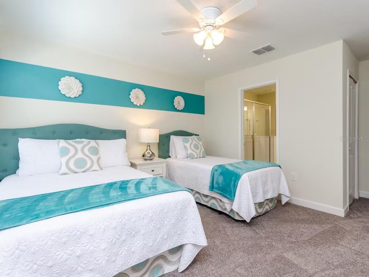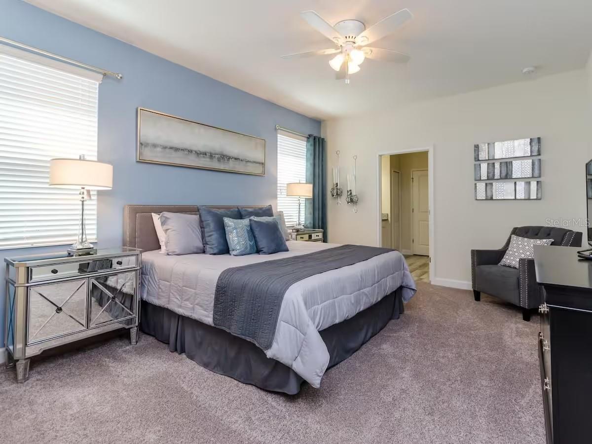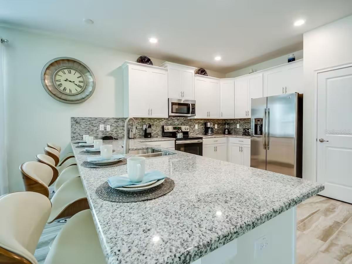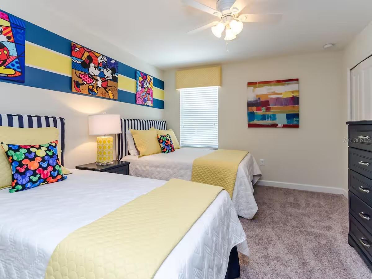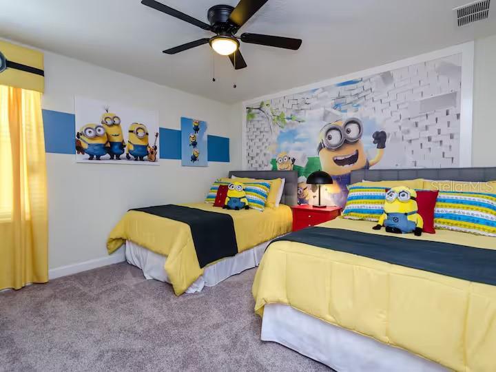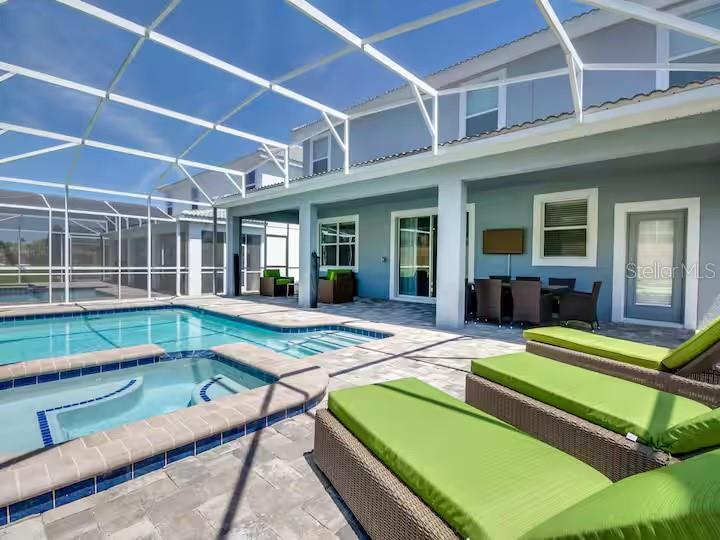 Welcome to 9081 Hazard St, a stunning vacation retreat in the incredible Champions Gate Resort! This professionally decorated, fully furnished, turnkey short-term rental home offers an incredible investment opportunity or the perfect getaway. Located on a coveted corner lot, this 8-bedroom, 5-bathroom home spans over 3,000 square feet and was designed for comfort, luxury, and entertaining. The open-concept layout is light-filled and inviting, embodying the relaxed Florida lifestyle. The contemporary kitchen features granite countertops, stainless steel appliances, 42-inch cabinets, and a spacious island perfect for entertaining. The living room seamlessly connects to the pool area, where you’ll find a heated pool and spa, covered lanai, and plenty of space to relax after a day at the world-famous attractions nearby. This guest-focused home features a home theater room, Minions-themed bedrooms, and multiple spacious master suites, including one on the first floor for added convenience. The second floor offers six additional bedrooms and a bonus space, ensuring privacy and comfort for all guests. With neutral decor, premium flooring, and high-end finishes, this home is truly turnkey and ready for guests. Located just a short distance from the Champions Gate Resort clubhouse, residents and guests enjoy world-class amenities including multiple pools, a lazy river, water park, tiki bar, clubhouse restaurant, fitness center, and sports courts. Golf enthusiasts will love the championship course, pro shop, and clubhouse restaurant at Champions Gate Golf Club. Plus, the gated and guarded entrance provides security and peace of mind. Don’t miss out on this incredible opportunity to own a high-performance vacation rental in one of Orlando’s premier resort communities!