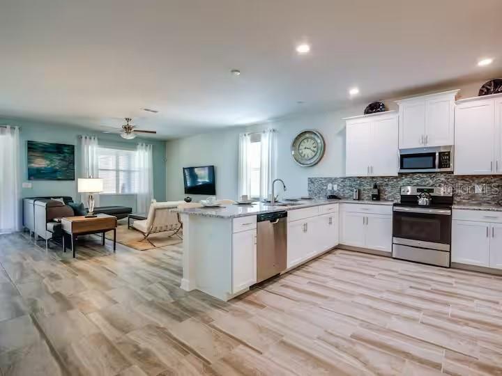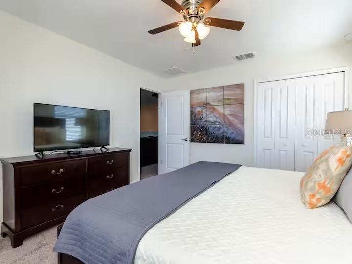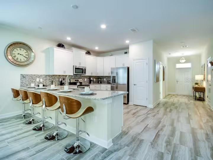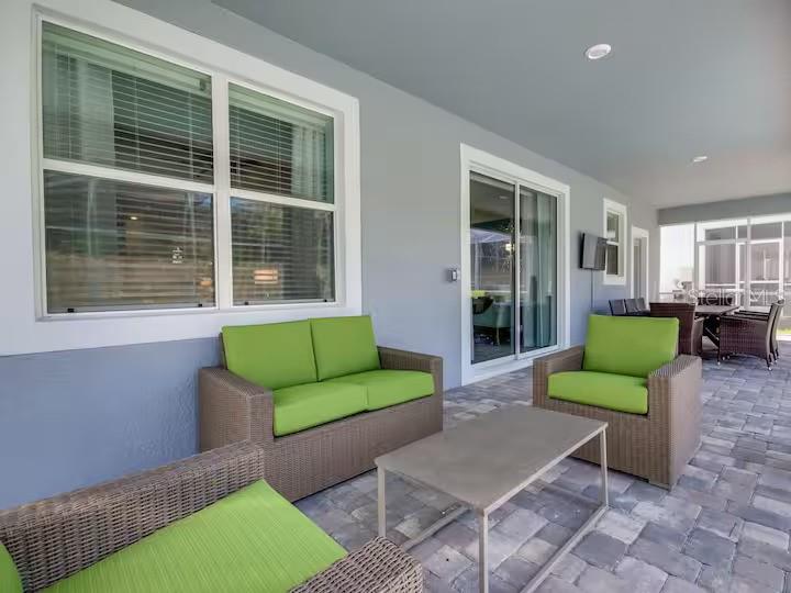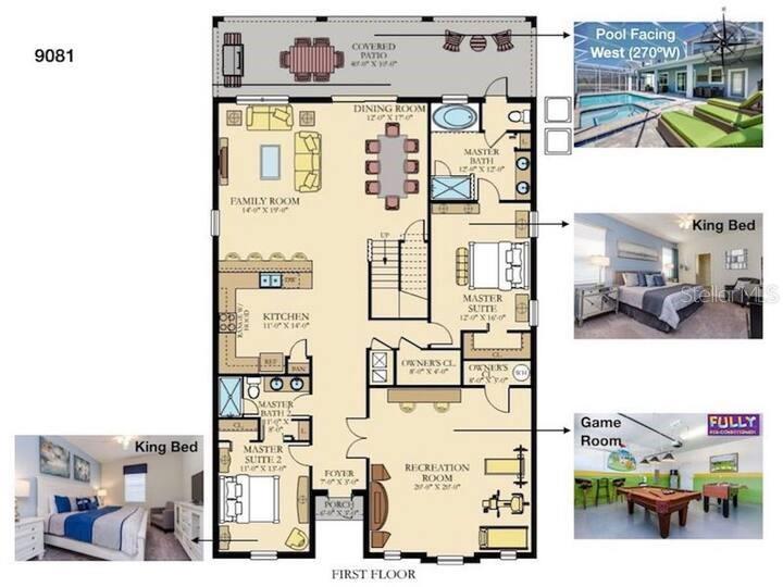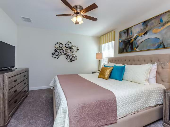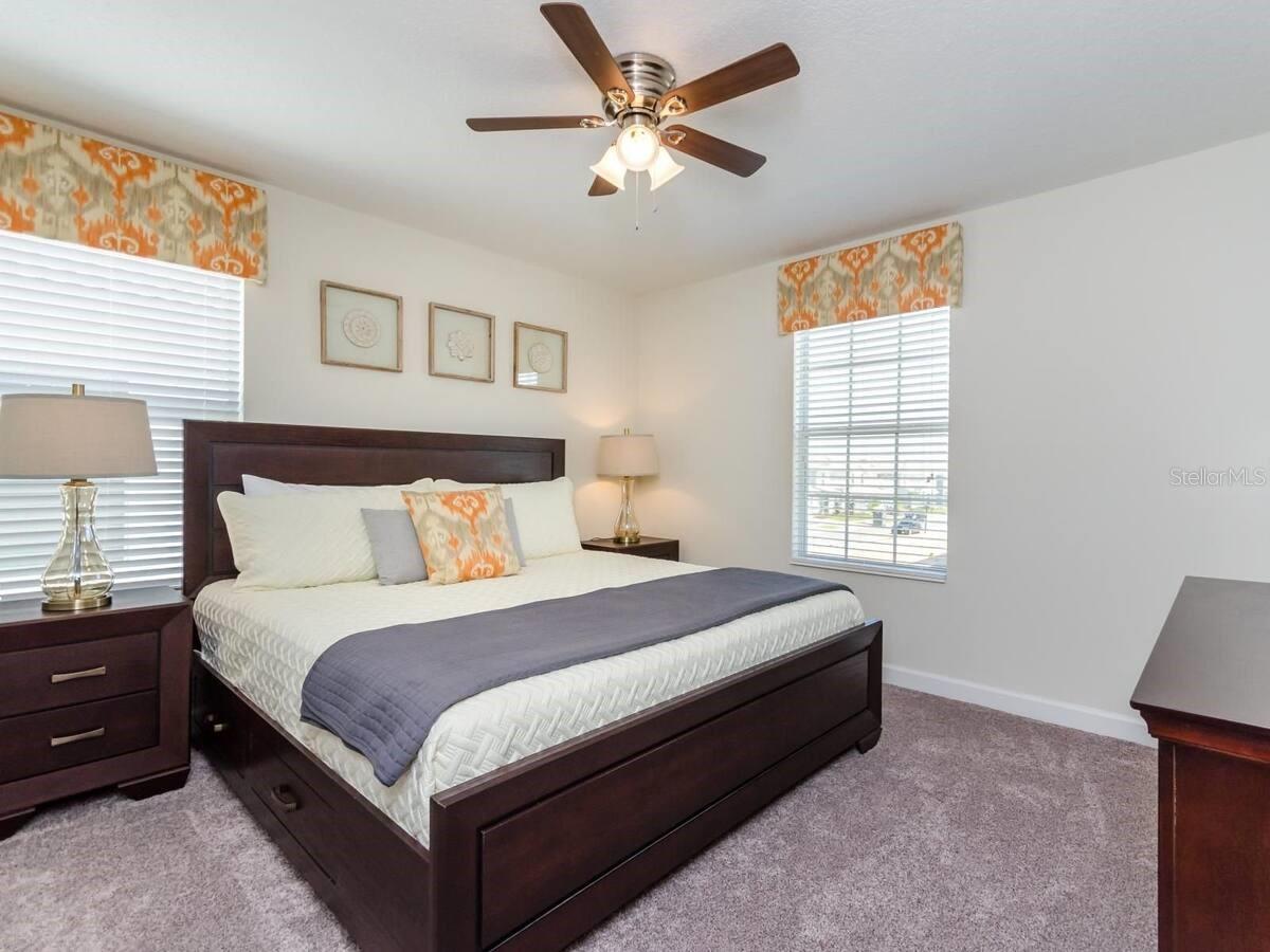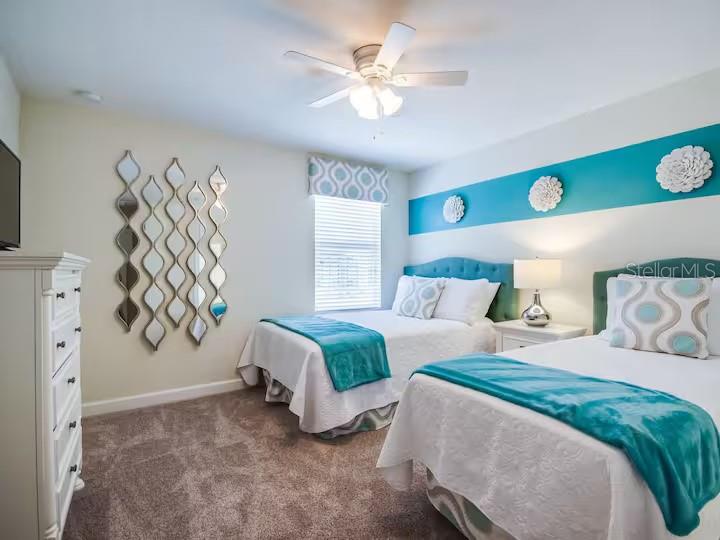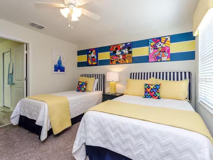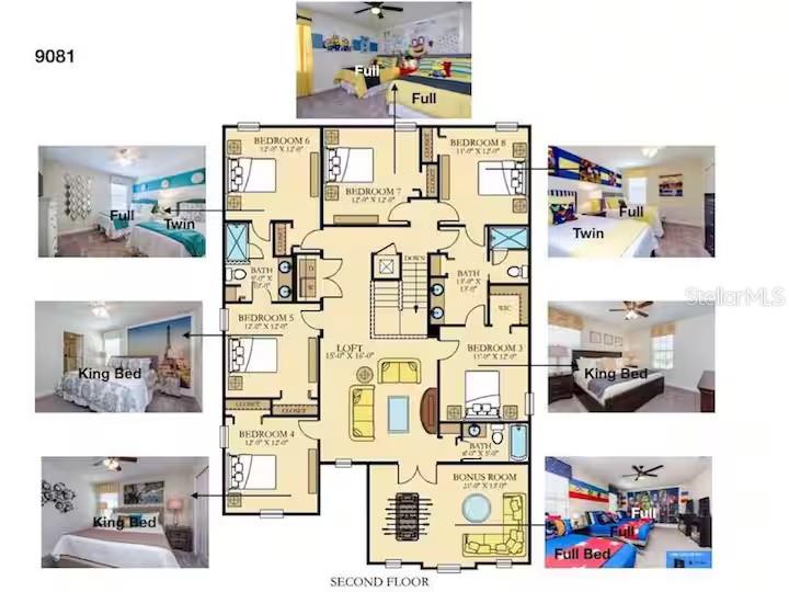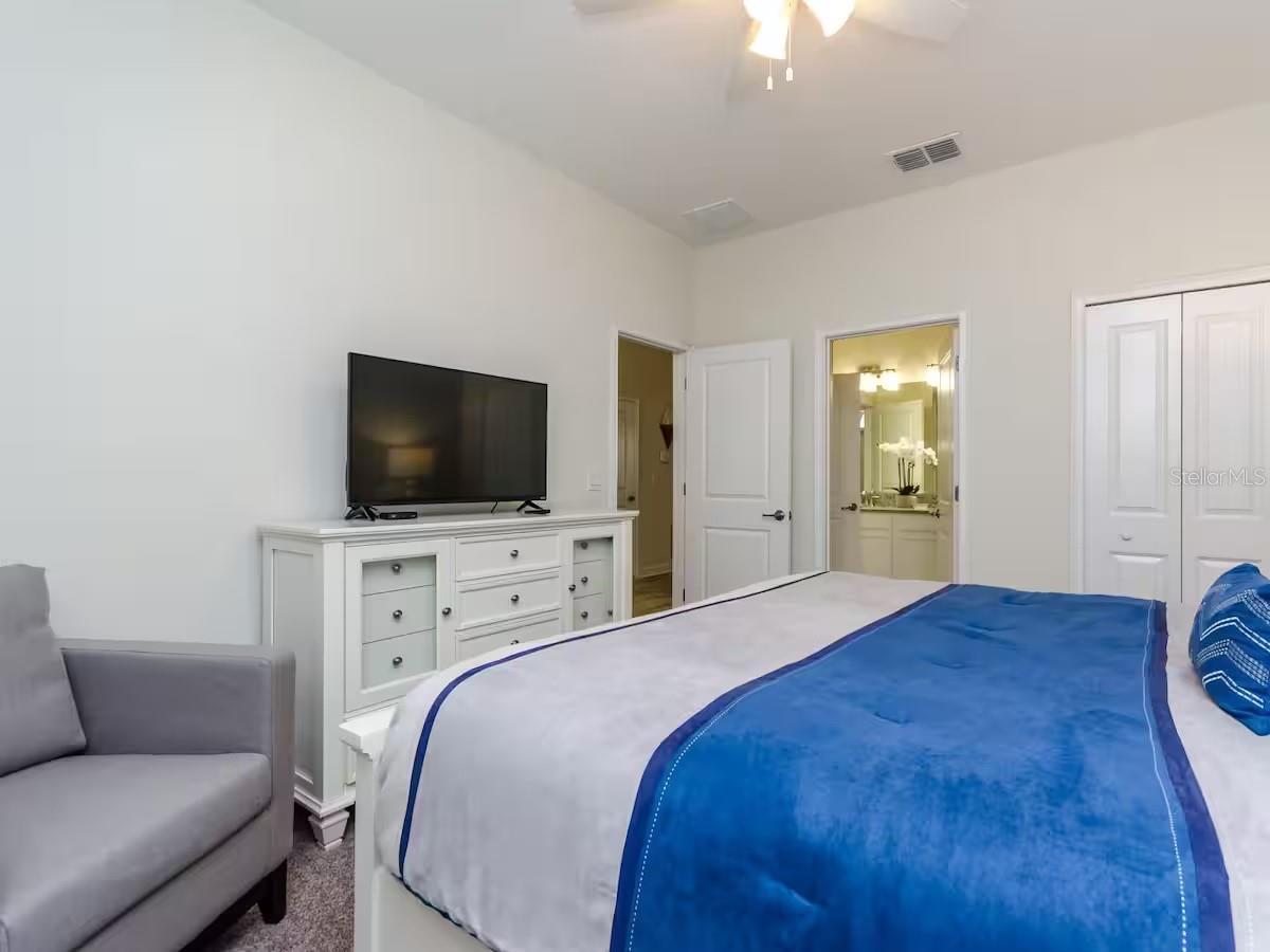 Welcome to 9081 Hazard St, a stunning vacation retreat in the incredible Champions Gate Resort! This professionally decorated, fully furnished, turnkey short-term rental home offers an incredible investment opportunity or the perfect getaway. Located on a coveted corner lot, this 8-bedroom, 5-bathroom home spans over 3,000 square feet and was designed for comfort, luxury, and entertaining. The open-concept layout is light-filled and inviting, embodying the relaxed Florida lifestyle. The contemporary kitchen features granite countertops, stainless steel appliances, 42-inch cabinets, and a spacious island perfect for entertaining. The living room seamlessly connects to the pool area, where you’ll find a heated pool and spa, covered lanai, and plenty of space to relax after a day at the world-famous attractions nearby. This guest-focused home features a home theater room, Minions-themed bedrooms, and multiple spacious master suites, including one on the first floor for added convenience. The second floor offers six additional bedrooms and a bonus space, ensuring privacy and comfort for all guests. With neutral decor, premium flooring, and high-end finishes, this home is truly turnkey and ready for guests. Located just a short distance from the Champions Gate Resort clubhouse, residents and guests enjoy world-class amenities including multiple pools, a lazy river, water park, tiki bar, clubhouse restaurant, fitness center, and sports courts. Golf enthusiasts will love the championship course, pro shop, and clubhouse restaurant at Champions Gate Golf Club. Plus, the gated and guarded entrance provides security and peace of mind. Don’t miss out on this incredible opportunity to own a high-performance vacation rental in one of Orlando’s premier resort communities!