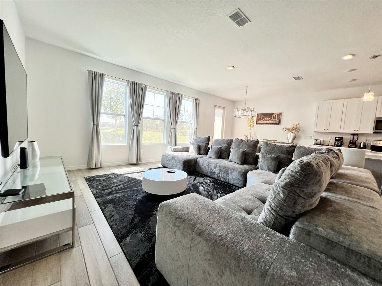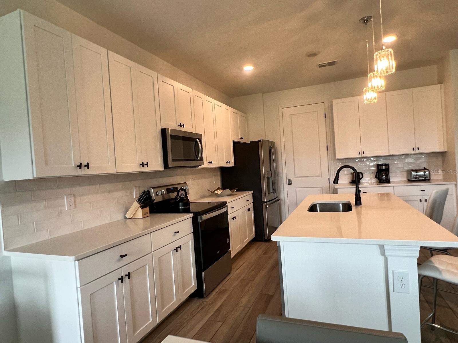 EXTRA BATH, 3 Bedrooms Suites!!!!! This beautiful and completed townhome offers an additional master suite and extra bedrooms to accommodate more guests. The home features a bright and open kitchen with excellent upgrades, including 42-inch cabinets and stainless steel appliances such as a stove, dishwasher, and microwave. The spacious quartz island connects seamlessly to the great room and dining area, making it perfect for gatherings with family and friends. The first floor boasts stylish ceramic tile flooring, while the bedrooms feature stain-resistant vinyl for added elegance. Enjoy incredible resort-style amenities, including a community pool, water park, fitness center, 18-hole mini golf course, and beach volleyball court. This home is in a fantastic location, close to shopping, grocery stores, Posner Park, Champions Gate Village, and Disney World!