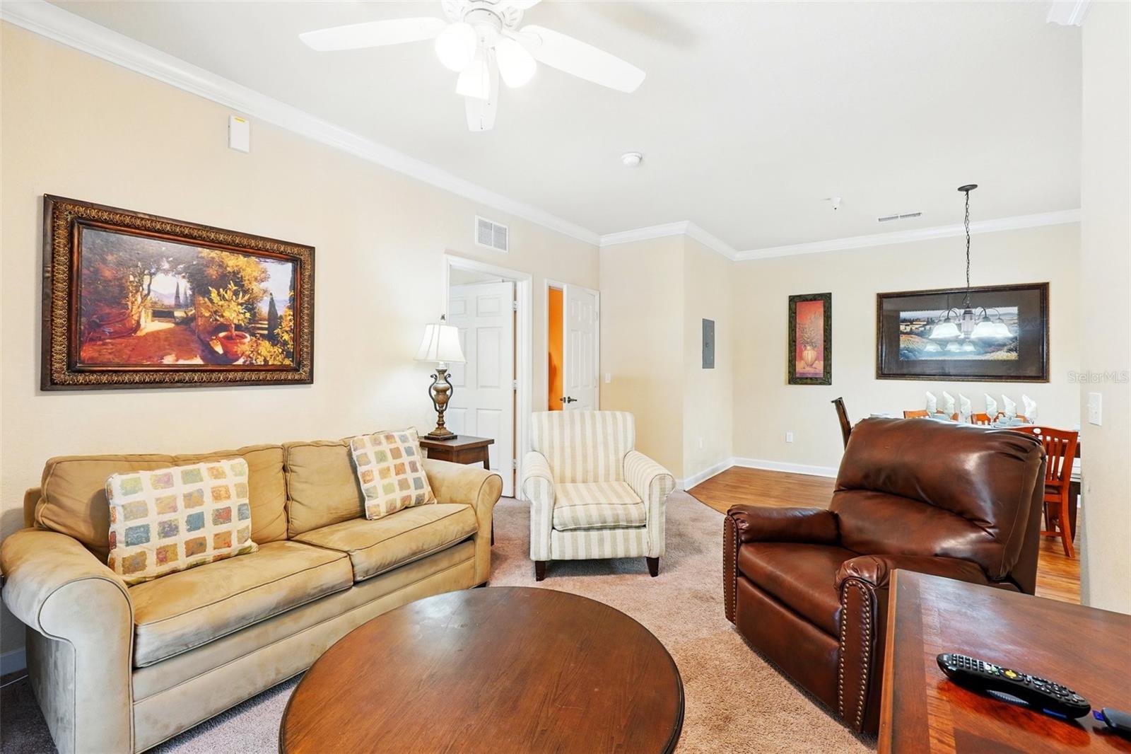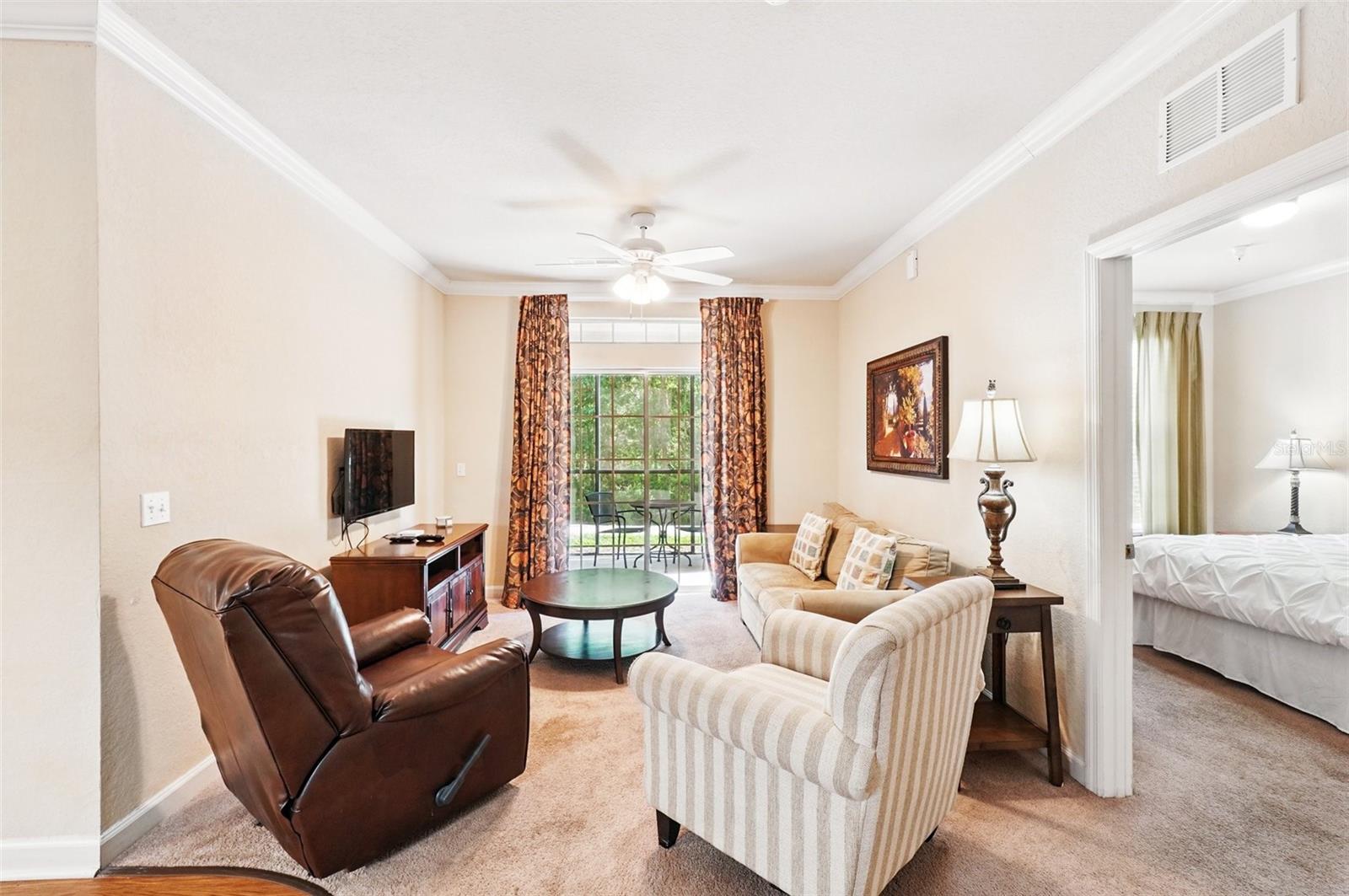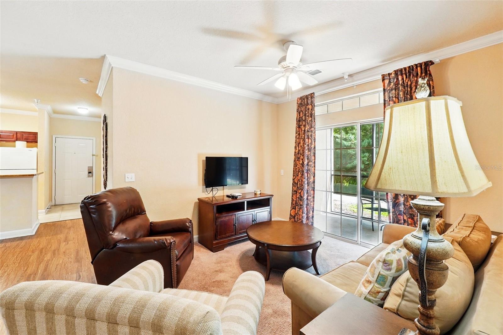 Wonderful investment opportunity or condo community to call home. Close to all Central Florida has to offer! Condo is a 2 bedroom/2 bath unit on the first floor. Convenient to the community pool, restaurant, bar, and fitness center. The condo itself has a nice size kitchen with a breakfast bar, dining room, living room and a screened patio. Also includes a washer and dryer and a new AC unit. Fully furnished and ready to book potential vacationers or move-in ready to make it your own. Come see this great resort style condo community.