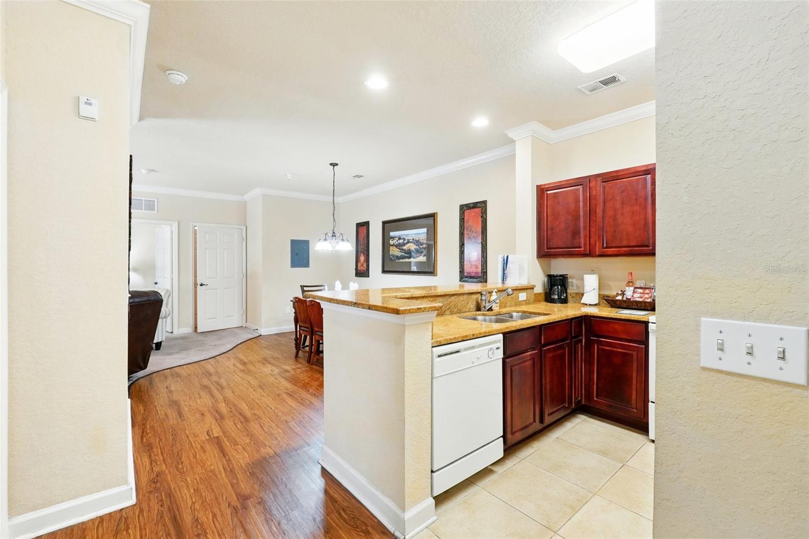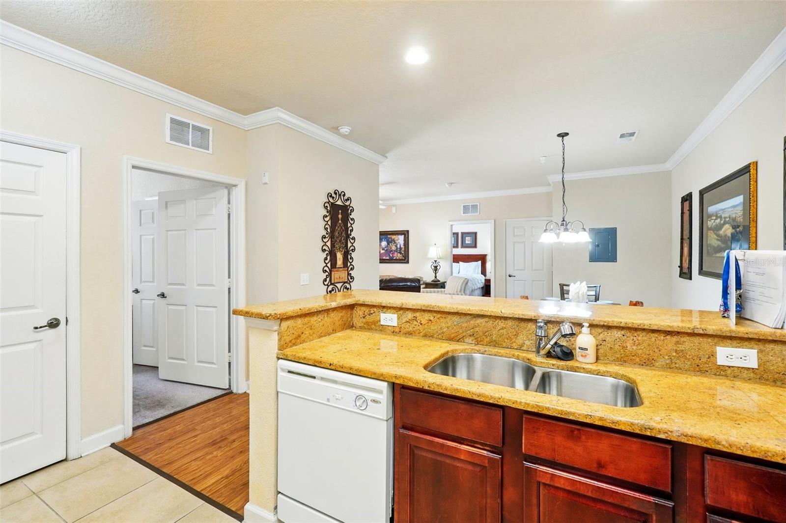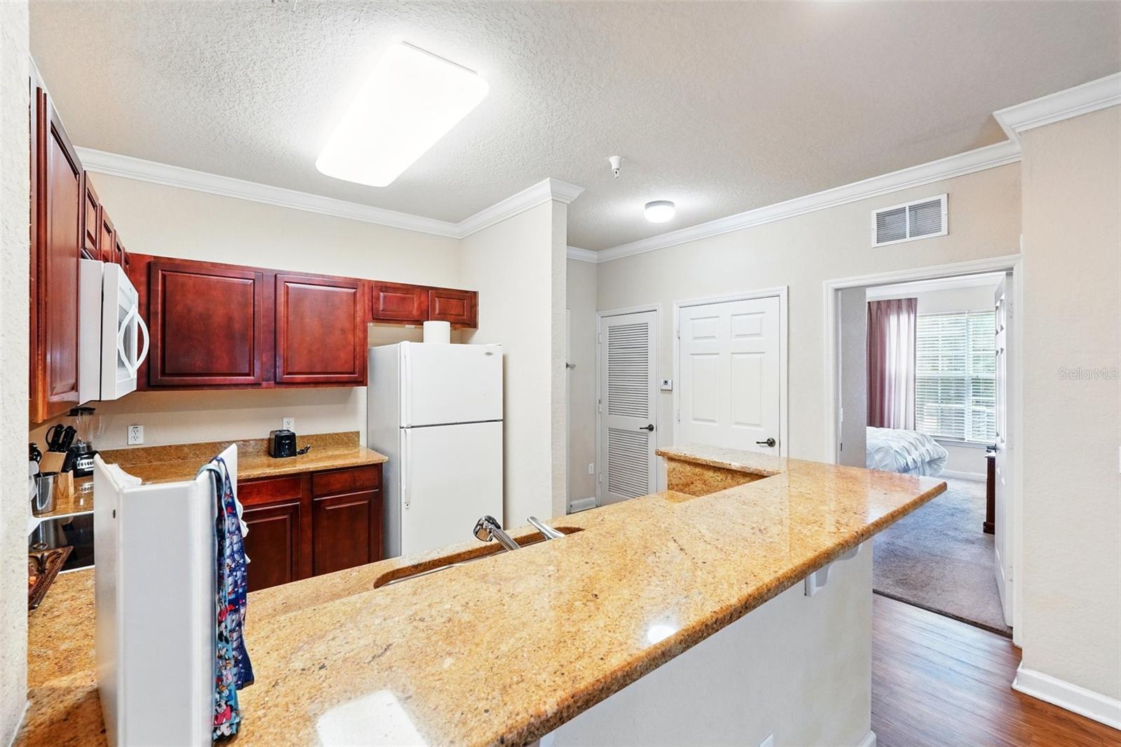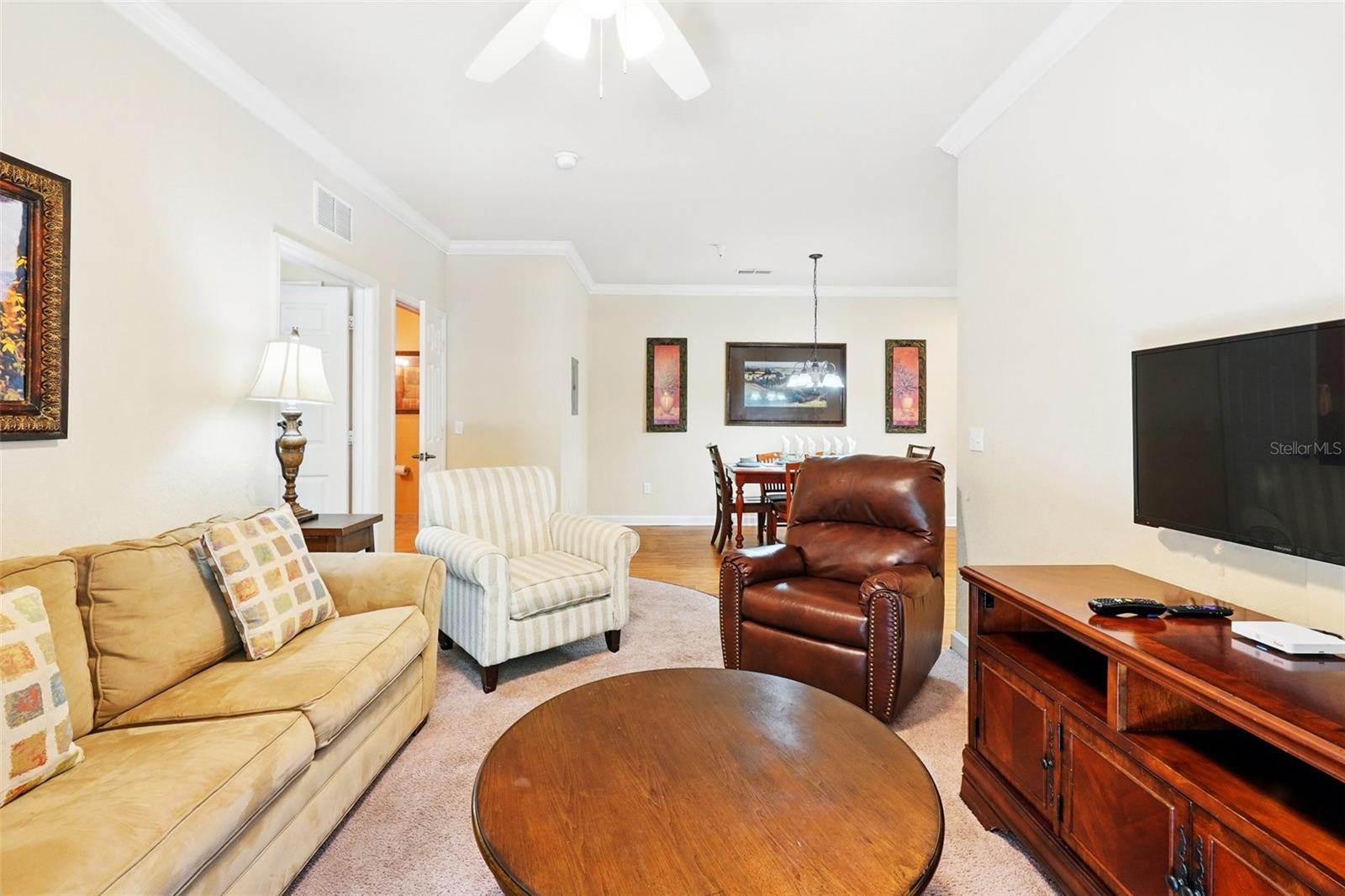 Wonderful investment opportunity or condo community to call home. Close to all Central Florida has to offer! Condo is a 2 bedroom/2 bath unit on the first floor. Convenient to the community pool, restaurant, bar, and fitness center. The condo itself has a nice size kitchen with a breakfast bar, dining room, living room and a screened patio. Also includes a washer and dryer and a new AC unit. Fully furnished and ready to book potential vacationers or move-in ready to make it your own. Come see this great resort style condo community.