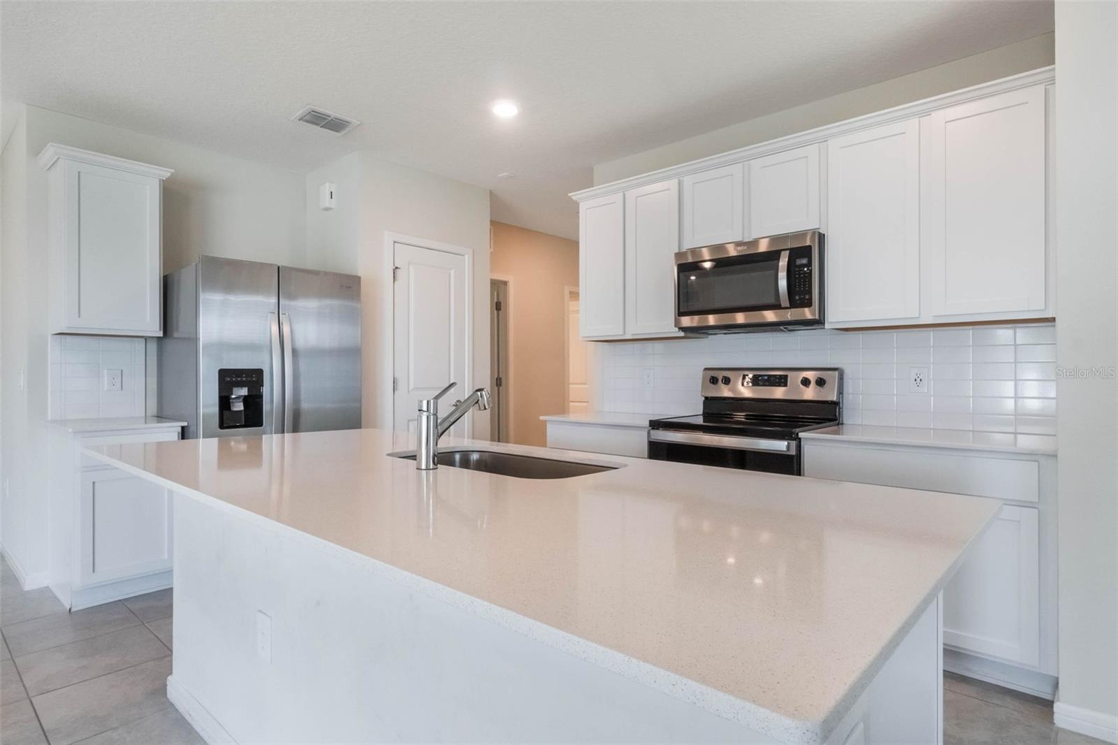 Don't wait to come see this NEWER CONSTRUCTED 4-bedroom 2-bath split plan OPEN CONCEPT home! This home comes with FULLY TRANSFERABLE WARRANTY FROM PULTE. You will have the ease of buying newer construction without the wait! This home offers a Fabulous Chef's kitchen with Quartz countertops , a large ISLAND for entertaining and prep, and STAINLESS APPLIANCES. Tile flooring is throughout the main living areas for easy clean up and seamless open-concept living. The BEAUTIFUL LANAI off of the main living area Is perfect for indoor-outdoor entertaining. The Owner’s Suite offers a private retreat with an en suite bathroom, dual sinks, an upgraded walk-in tiled shower, and a spacious walk-in closet. Three additional bedrooms, a secondary bathroom, and a conveniently located laundry room are on the other side of the home. Located in the Belle Haven community, one of Davenport’s most sought-after communities, minutes from HWY 27,1-4, Posner Park shopping, Champions Gate and DISNEY! The community offers fantastic amenities, including a resort-style pool with cabanas, a playground, and HIGH SPEED INTERNET AND TV INCLUDED IN HOA FEES—all with NO CDD fees! Schedule your showing today!!
