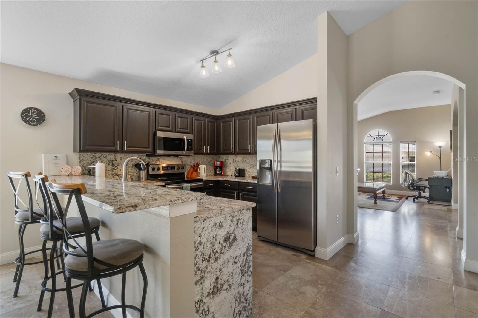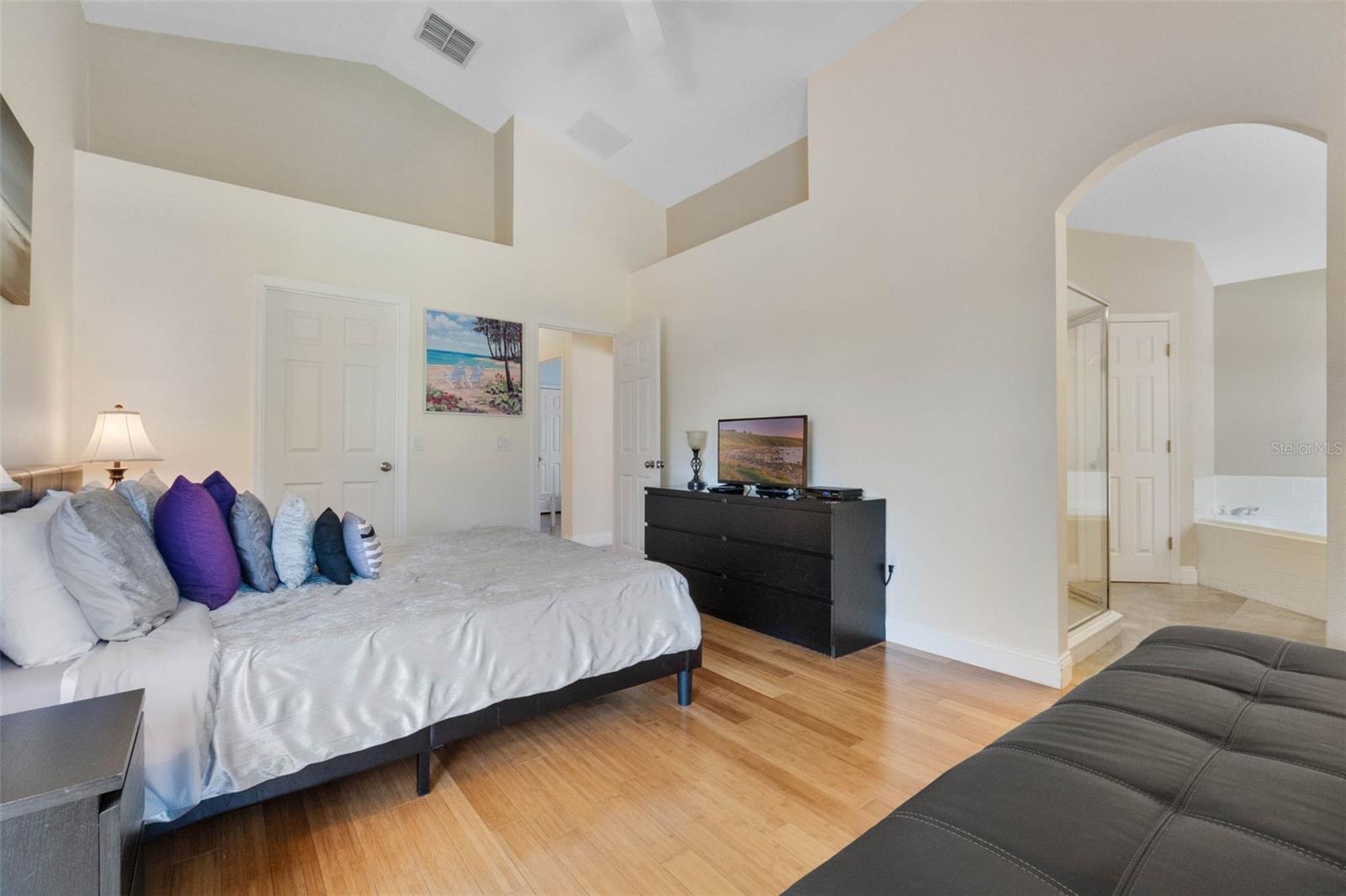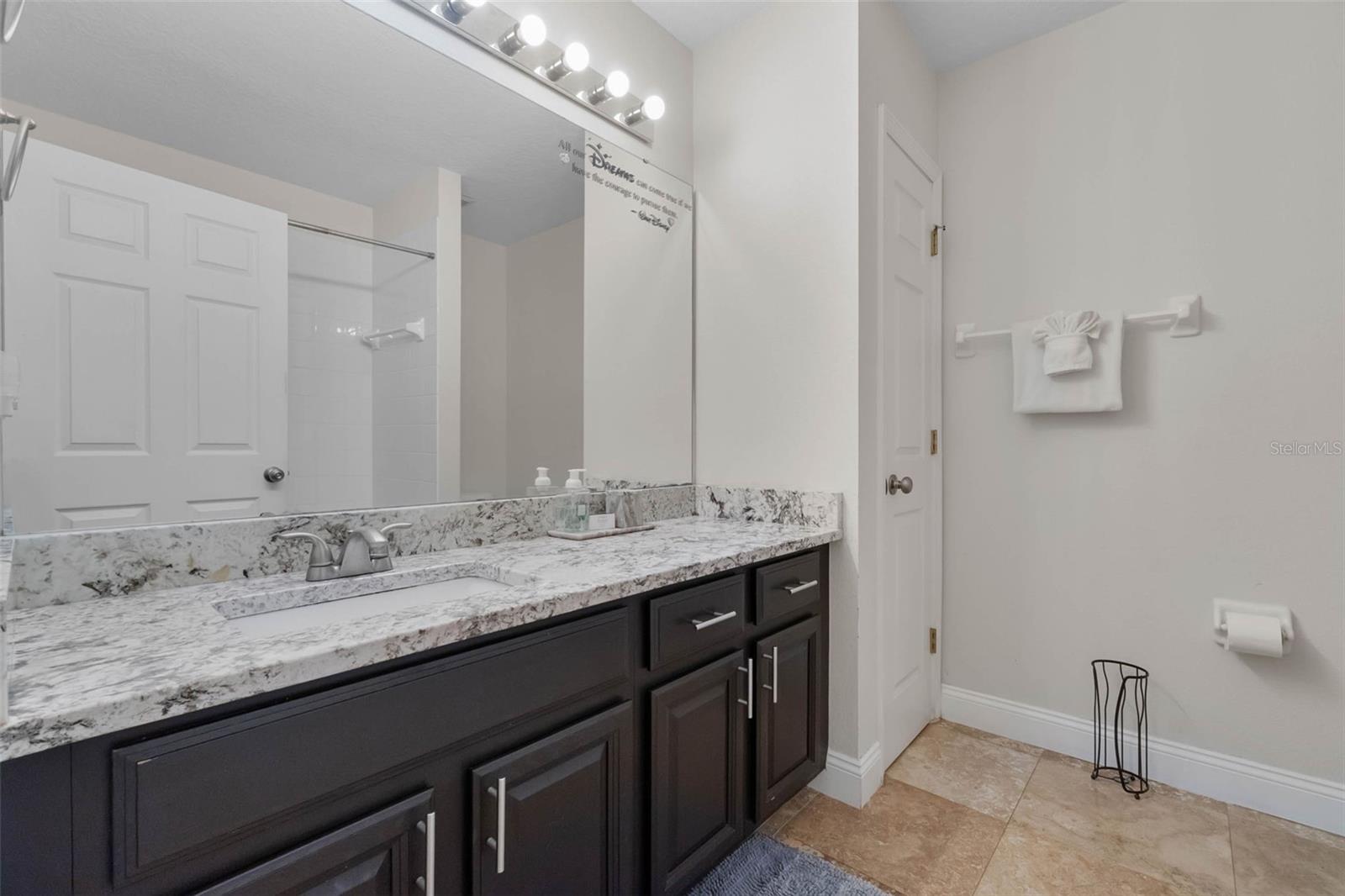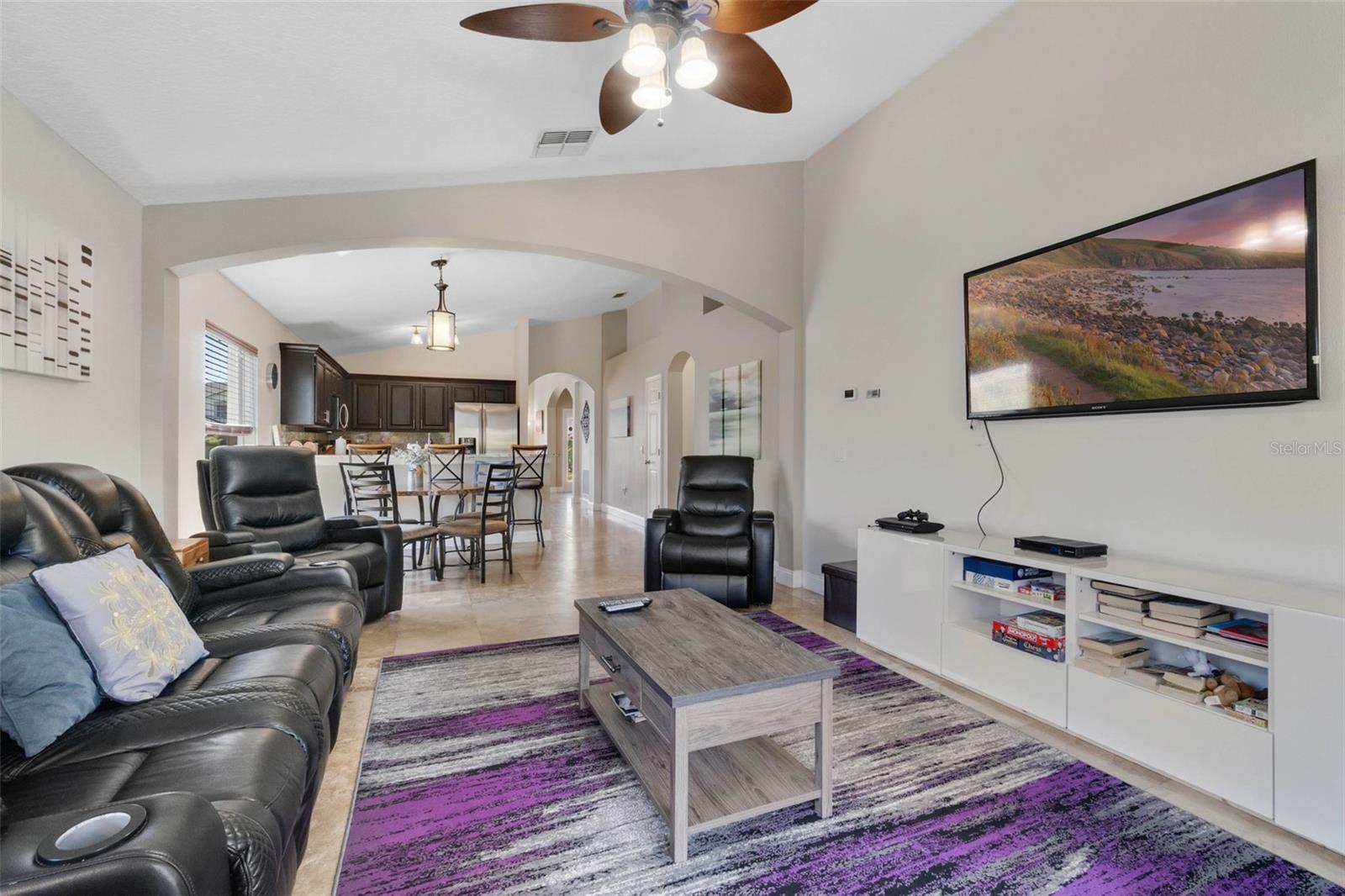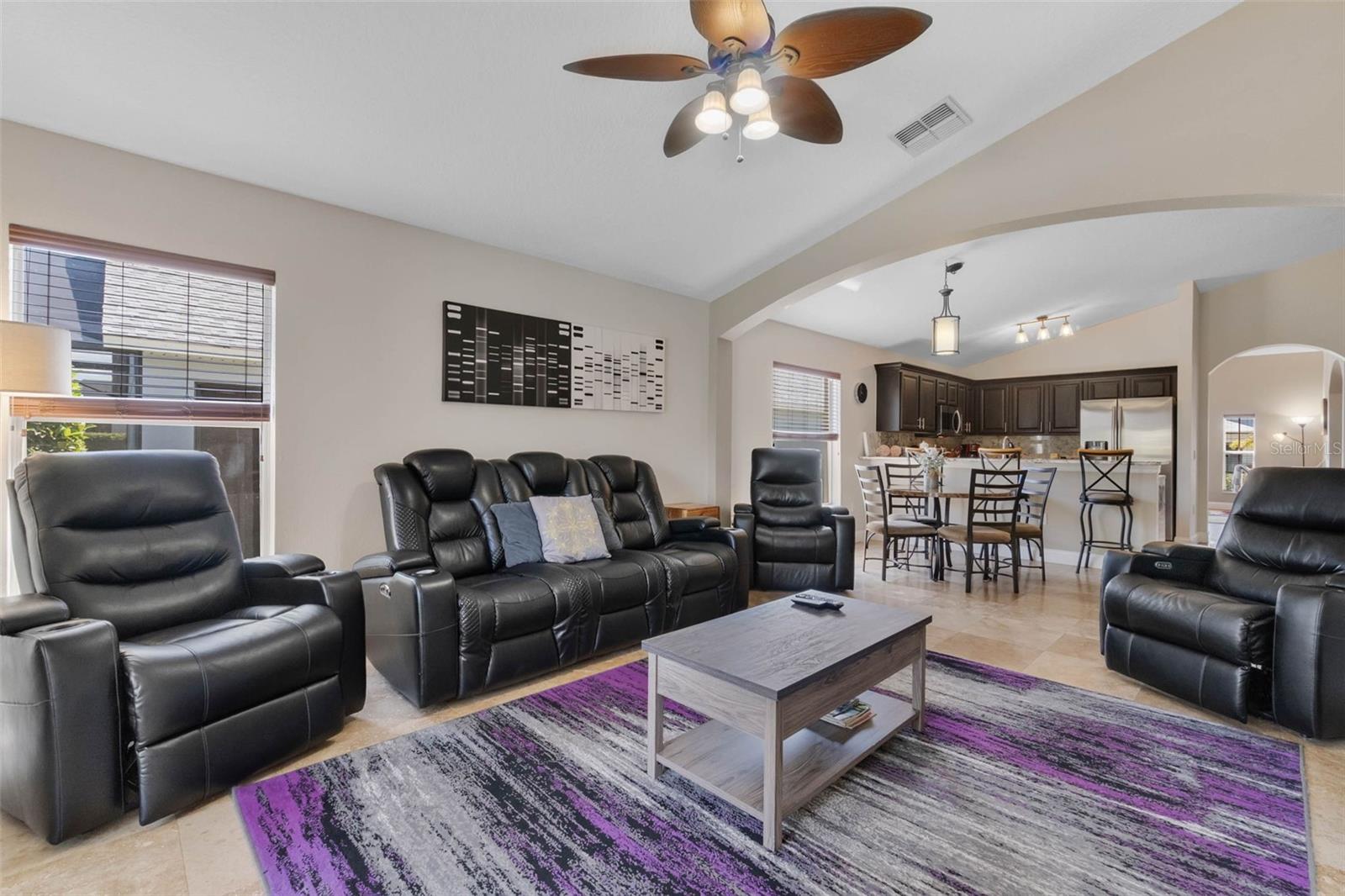 New Roof just installed- 5/2025 !! HVAC 2024, Hot Water - 2017. This welcoming home in the gated community of Sanctuary at West Haven is available now. The home boasts four bedrooms, and three well-appointed bathrooms. The heart of the home features an open-concept design, seamlessly connecting the living room, dining area, and kitchen. The modern kitchen is equipped with dark cabinetry, stainless steel appliances, and granite countertops. Natural light floods the interior through large windows, including an elegant arched window in one of the living spaces. Hardwood bamboo floors in the bedrooms and travertine tile in the common areas add to the home's aesthetic appeal. A dedicated laundry room enhances functionality, while a game room in the garage with vibrant colors and recreational equipment provides a fun space for entertainment. The children's bedroom showcases a whimsical theme, perfect for young imaginations. Throughout the home, carefully chosen decor and color schemes create a cohesive and inviting atmosphere. The outdoor space with a screened in pool and covered eating area completes the backyard. This beautiful home can be bought for you to live as a permanent residence, or it can be used as a short-term rental property. House is being sold fully furnished for your convenience.