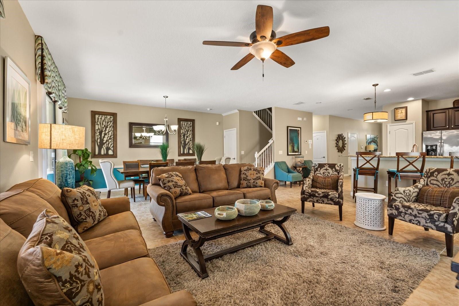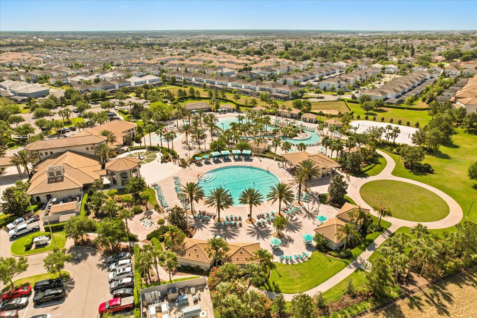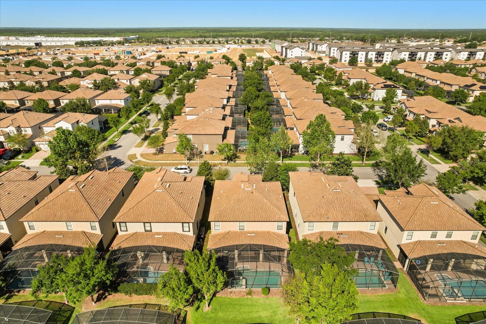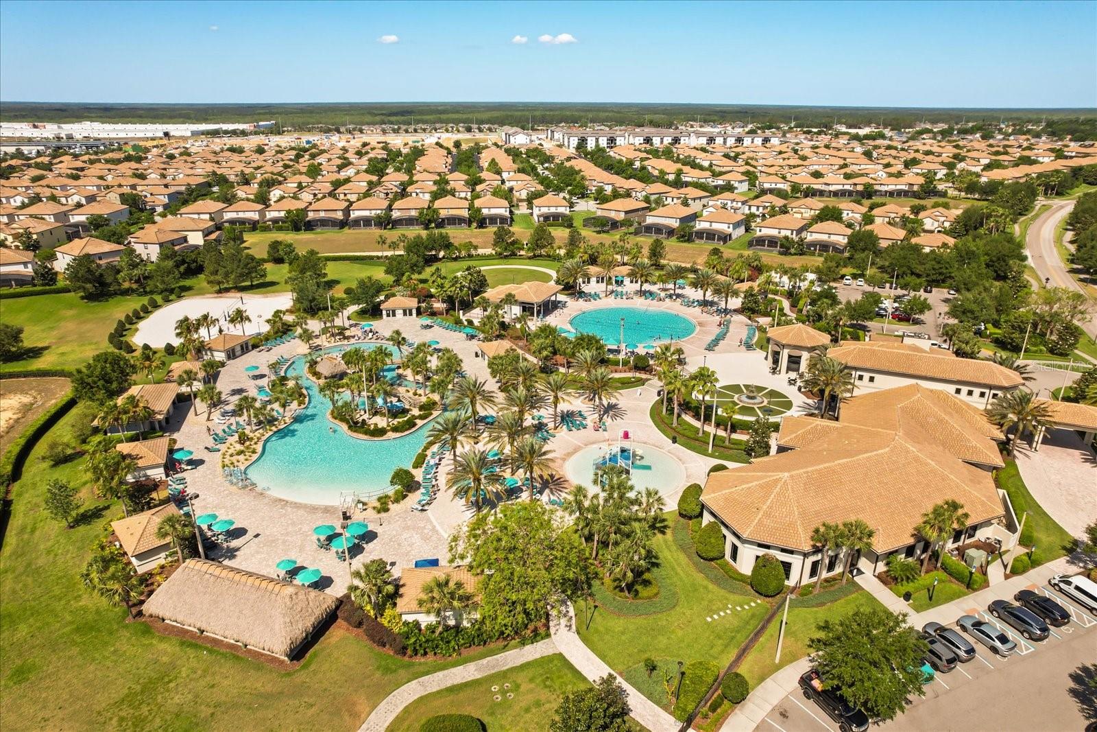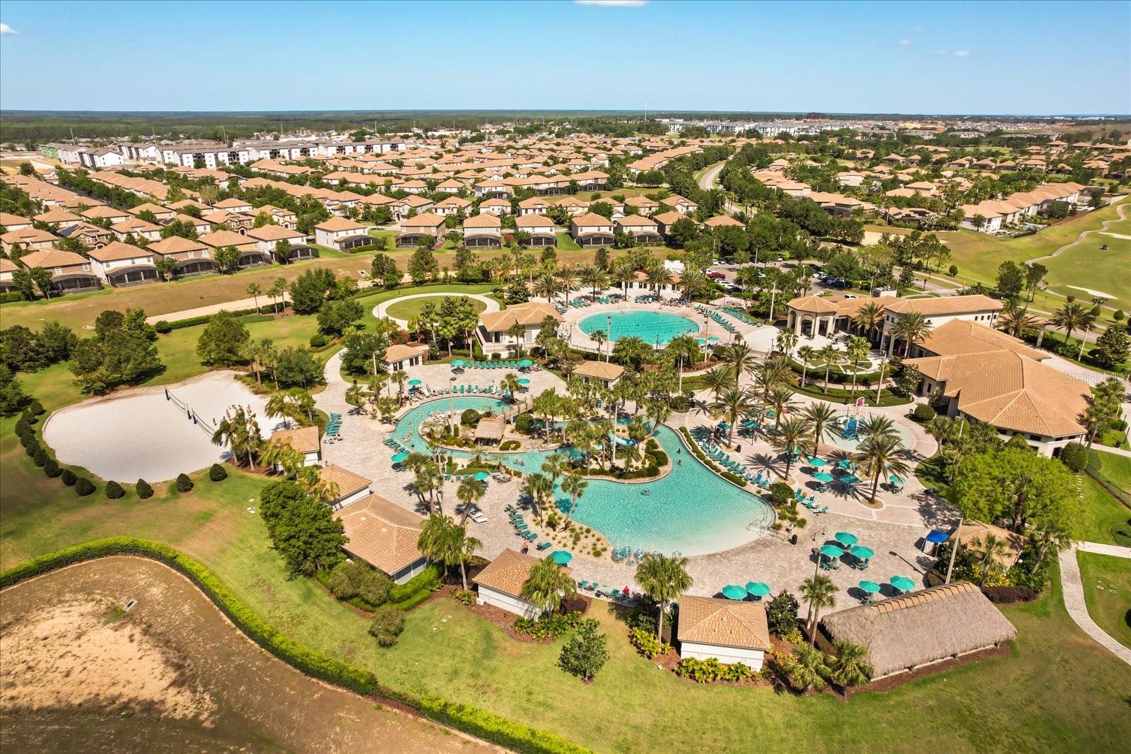 Beautifully appointed 7BR holiday home in Championsgate, a premier golf & resort vacation community in the heart of the attractions area! Fully furnished (including appliances) and accessorized in a casual but luxurious style. Ground floor boasts common living/dining space, kitchen, game room and two suites (both with ensuite baths). Gourmet style kitchen has ample room and equipment for preparing meals and grabbing snacks at the breakfast bar and is open to the living/dining areas, making for one great gathering space. Here you will also find convenient direct access to the patio/pool. The garage has been converted into a fully equipped game room (including darts, pool, foosball). All bedrooms have ceiling fans and TVs. The main primary suite’s bath features a dual sink vanity, garden tub, separate shower, and direct access to pool deck. Upstairs, you'll find a loft area (outfitted as a comfy secondary entertainment spot), 5 additional spacious bedrooms, 3 full baths (including one Jack 'n Jill bath). Out back, you’ll have your own private oasis with an expansive covered porch featuring stylish, practical lounge furniture, and a pristine heated pool/spa under screen enclosure. Speaking of oasis, this home is right next to one of 3 amenity centers, namely, The Oasis Club at Championsgate. Here you’ll enjoy a clubhouse w/fitness center, restaurant, movie theater, and game room, as well as a resort style pool w/tiki bar, lazy river, splash park & water slide. You will also have access to The Retreat amenity center, with its pool/water park, balls fields, 18-hole championship golf course, tennis and more! Great location – short drive to essential shopping/dining (1 mile to your grocery shopping), and about 1-2 miles to SR 27/I4 which can whisk you to the theme parks. This home is ideal for getaways with your entire family and/or friends, or as an investment home w/income opportunity. Come see all that this special home has to offer!