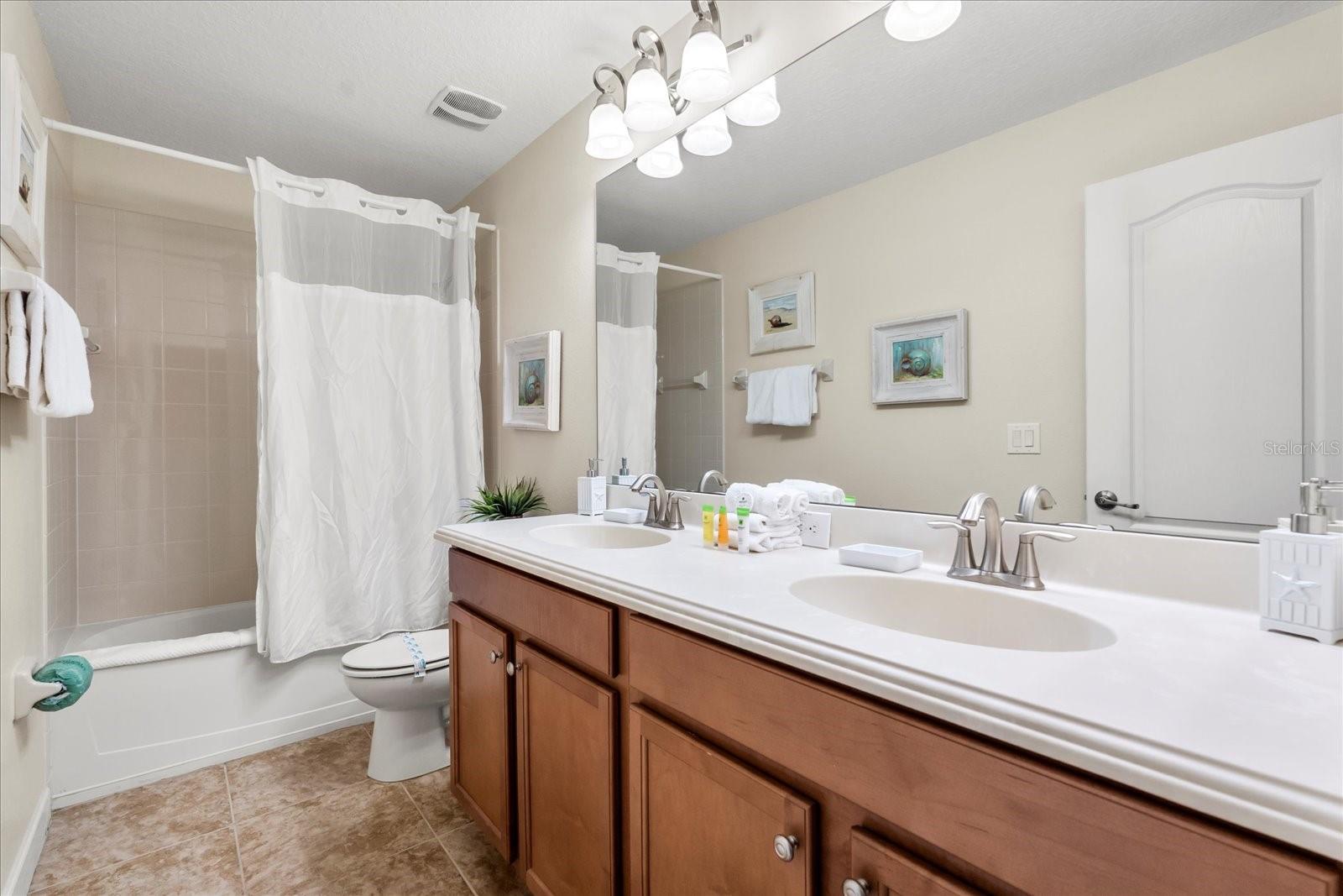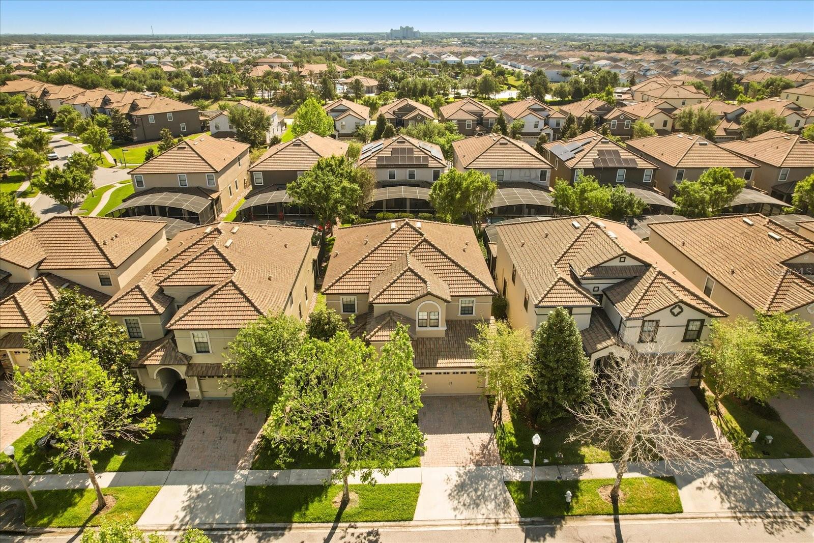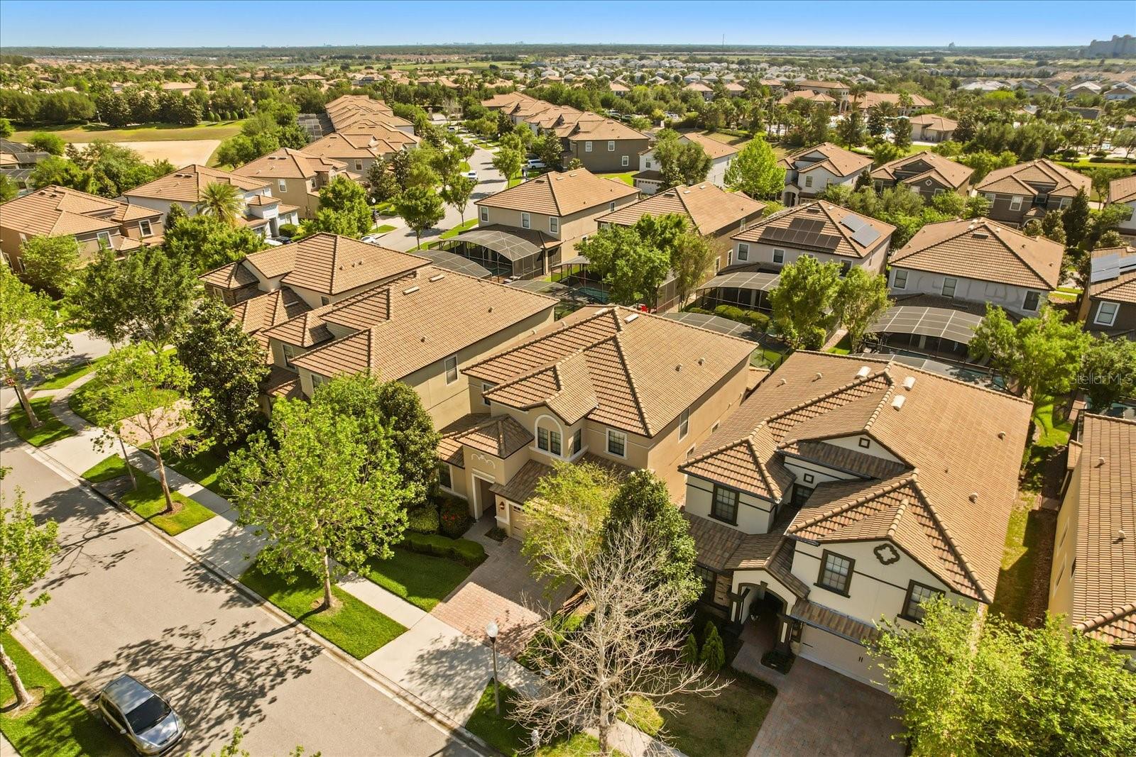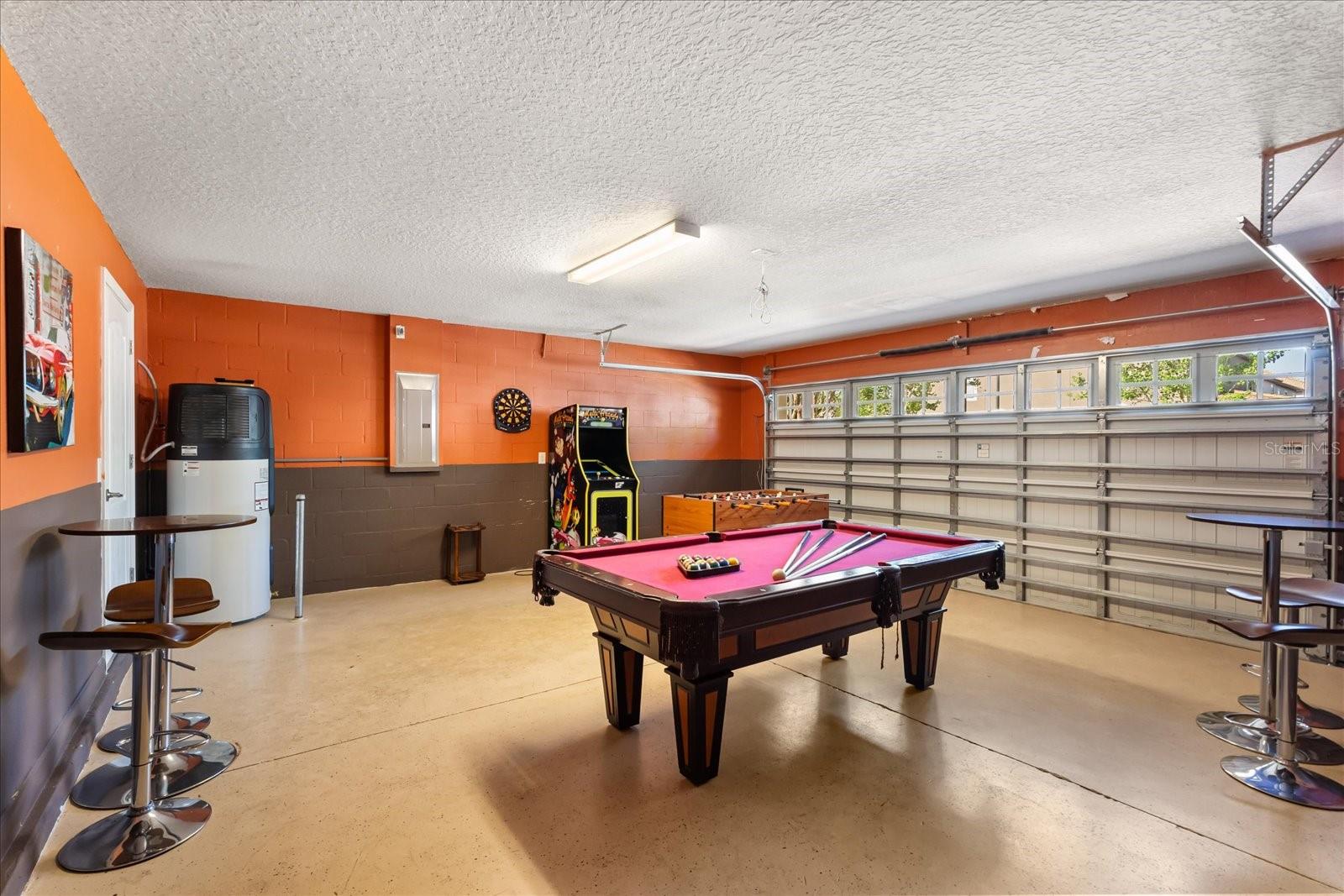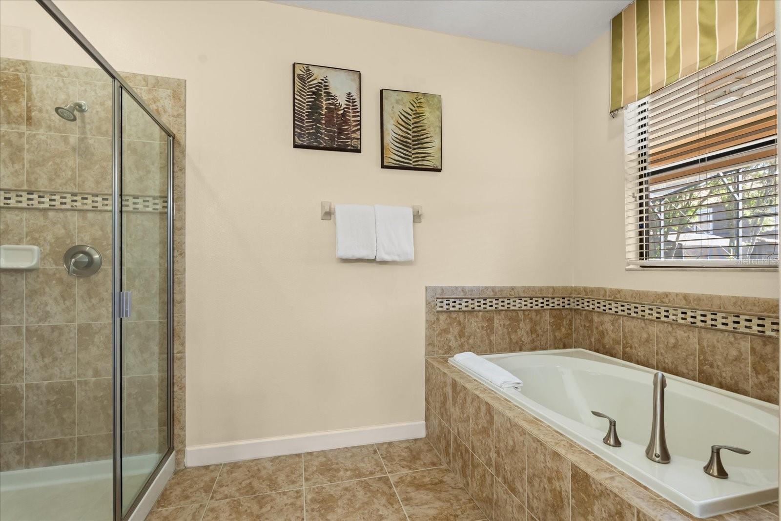 Beautifully appointed 7BR holiday home in Championsgate, a premier golf & resort vacation community in the heart of the attractions area! Fully furnished (including appliances) and accessorized in a casual but luxurious style. Ground floor boasts common living/dining space, kitchen, game room and two suites (both with ensuite baths). Gourmet style kitchen has ample room and equipment for preparing meals and grabbing snacks at the breakfast bar and is open to the living/dining areas, making for one great gathering space. Here you will also find convenient direct access to the patio/pool. The garage has been converted into a fully equipped game room (including darts, pool, foosball). All bedrooms have ceiling fans and TVs. The main primary suite’s bath features a dual sink vanity, garden tub, separate shower, and direct access to pool deck. Upstairs, you'll find a loft area (outfitted as a comfy secondary entertainment spot), 5 additional spacious bedrooms, 3 full baths (including one Jack 'n Jill bath). Out back, you’ll have your own private oasis with an expansive covered porch featuring stylish, practical lounge furniture, and a pristine heated pool/spa under screen enclosure. Speaking of oasis, this home is right next to one of 3 amenity centers, namely, The Oasis Club at Championsgate. Here you’ll enjoy a clubhouse w/fitness center, restaurant, movie theater, and game room, as well as a resort style pool w/tiki bar, lazy river, splash park & water slide. You will also have access to The Retreat amenity center, with its pool/water park, balls fields, 18-hole championship golf course, tennis and more! Great location – short drive to essential shopping/dining (1 mile to your grocery shopping), and about 1-2 miles to SR 27/I4 which can whisk you to the theme parks. This home is ideal for getaways with your entire family and/or friends, or as an investment home w/income opportunity. Come see all that this special home has to offer!