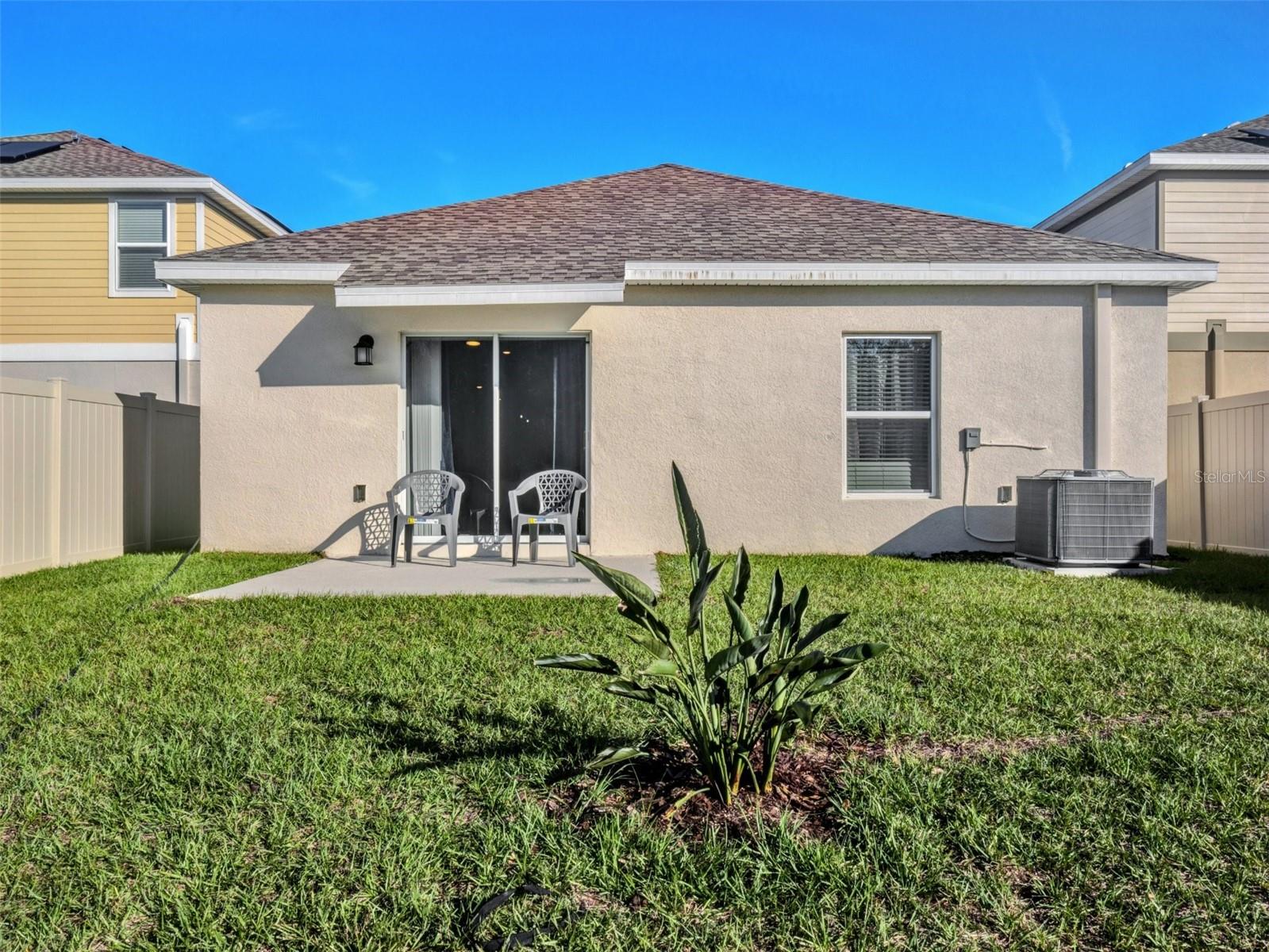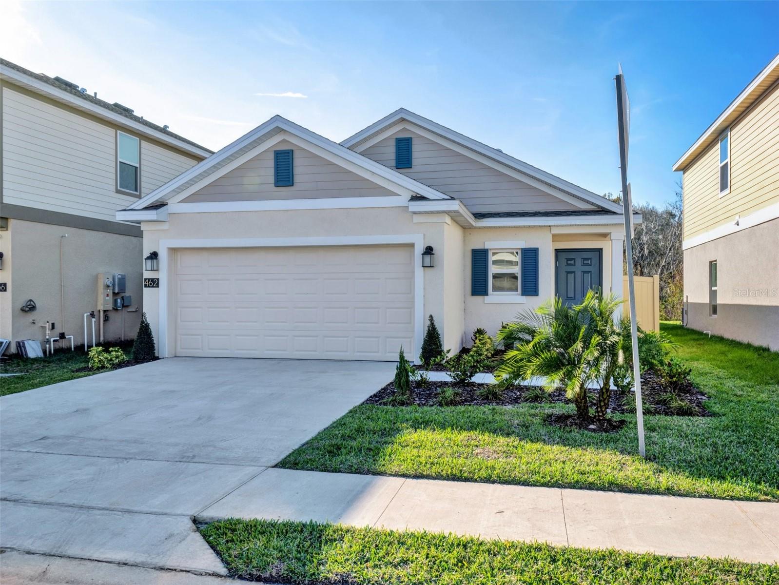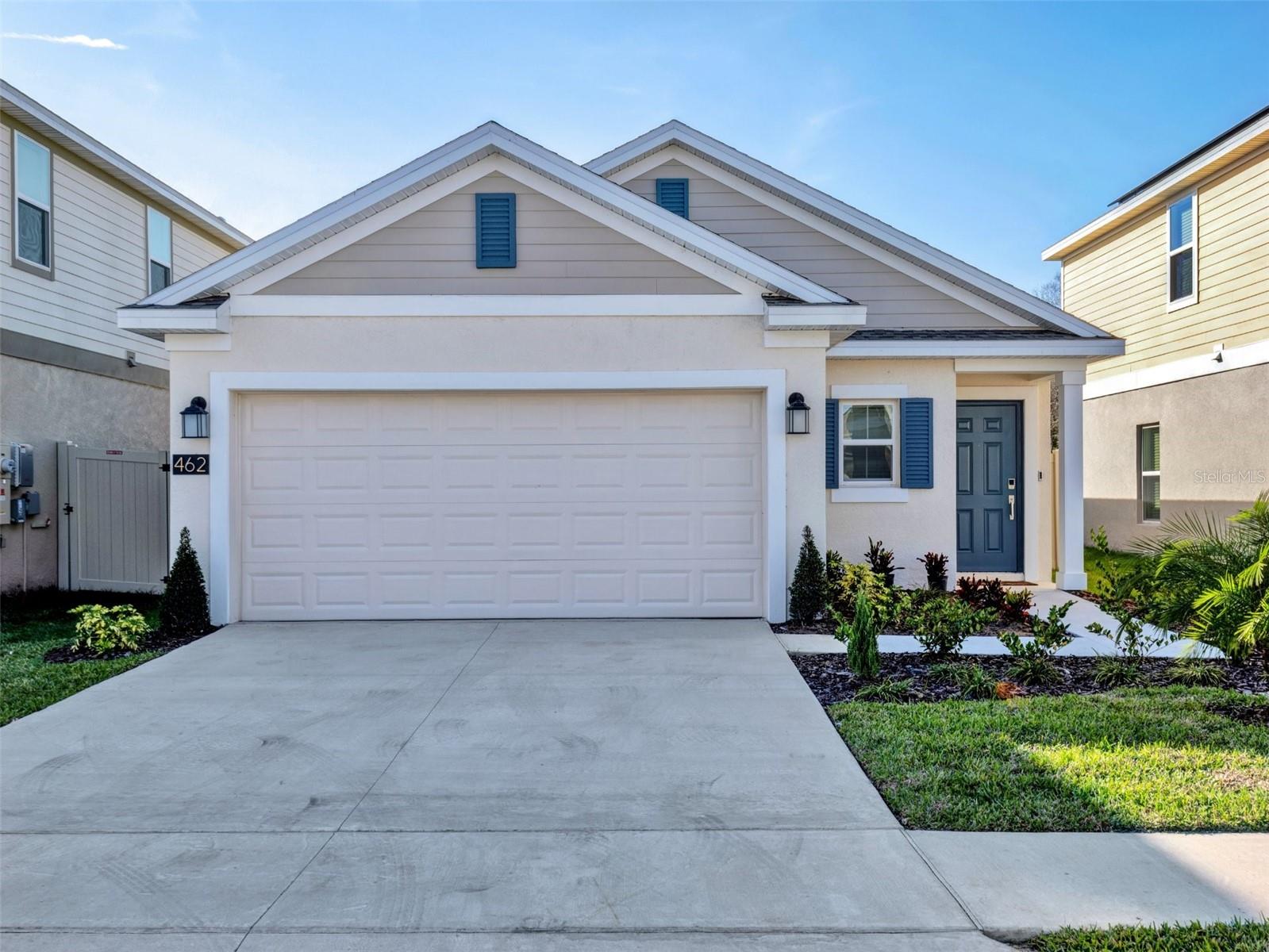 Welcome home to this beautifully designed 3-bedroom, 2-bathroom bungalow, featuring solid block construction and a host of modern upgrades. This property is a rare find with no rear neighbors, ensuring your privacy and tranquility in your own backyard oasis. This eco-friendly home comes equipped with fully paid-off solar panels, significantly reducing your electric bills and making it a smart investment for energy-conscious homeowners. Inside, you’ll appreciate the upgraded tiles and appliances that enhance the home’s appeal. The open-concept layout optimizes living space, seamlessly connecting the kitchen, versatile great room, and dining area. The well-appointed kitchen is a chef’s dream, featuring an island with bar seating, a pantry, and sleek stainless steel appliances—perfect for entertaining or family gatherings. Retreat to the primary bedroom located at the rear of the home for added privacy. This spacious suite boasts an ensuite bathroom with a double vanity and a generous walk-in closet, providing ample storage for all your needs. Additional highlights include quartz countertops, a Ring doorbell camera, upgraded ceiling fans, epoxy garage floors, and a stylish stone backsplash. Enjoy the benefits of an Eco Smart Home, complete with an outdoor in-wall pest control system, eliminating the need for inside treatments. The community offers fantastic amenities, including a pool, cabana, playground, and scenic conservation views, all for low HOA fees! Conveniently located near shopping, dining, and recreational options, you’re just a short drive from Posner Park, Walt Disney World, and I-4. Embrace the vibrant Florida lifestyle in your new home at Horse Creek, where everything you need is at your fingertips. Don’t miss out on this incredible opportunity—schedule your showing today!