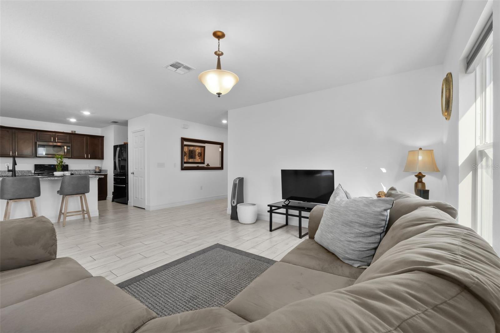 Welcome to your dream home in the wonderful Tivoli Reserve community! Located just a stone's throw from the magic of Disney World and a wealth of popular tourist attractions, 1328 POMPAY Drive offers an unparalleled combination of convenience and peaceful living. Enjoy a unique sense of space with no front neighbors as the property faces a large community green space, perfect for recreation and play. To the rear, a conservation area provides exceptional privacy and a natural, serene environment with no back neighbors. This beautifully maintained, move-in ready home, built in 2020 by KB Homes, boasts 4 bedrooms and 2 bathrooms, along with a desirable open floor plan perfect for modern living and entertaining. The interior features elegant granite countertops throughout, an upgraded kitchen complete with charcoal stainless-steel appliances, wood plank tile floors, and designer ceiling fans and light fixtures. Residents of Tivoli Reserve also enjoy access to fantastic amenities, including a sparkling community swimming pool just a short stroll from your front door. Don't miss this incredible opportunity to own a piece of paradise in a prime location with exceptional privacy, stylish upgrades, and fantastic community benefits! Several golf courses are located nearby as well as a Publix plaza with lots of shops, restaurants, and a 7-Eleven. Call today to schedule a private tour!