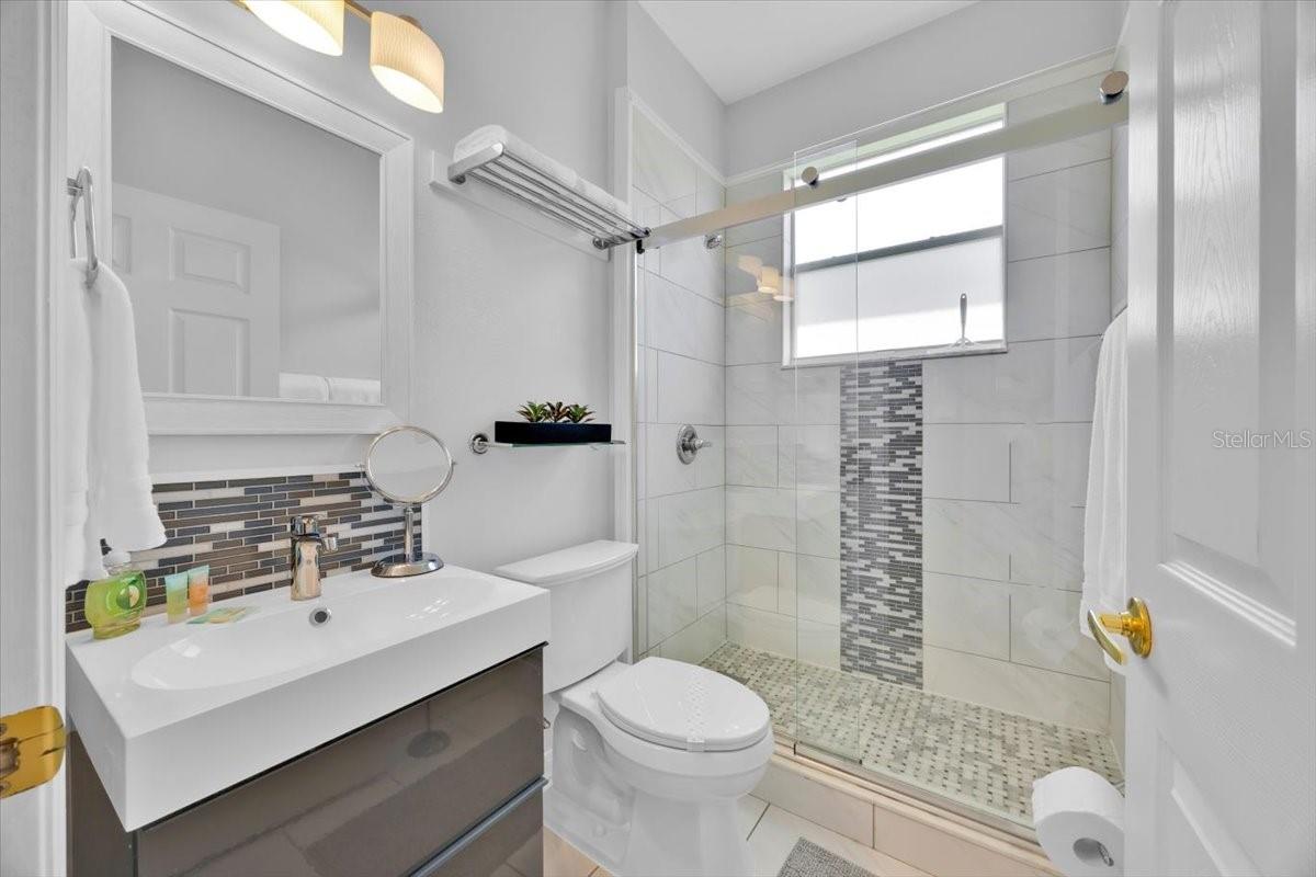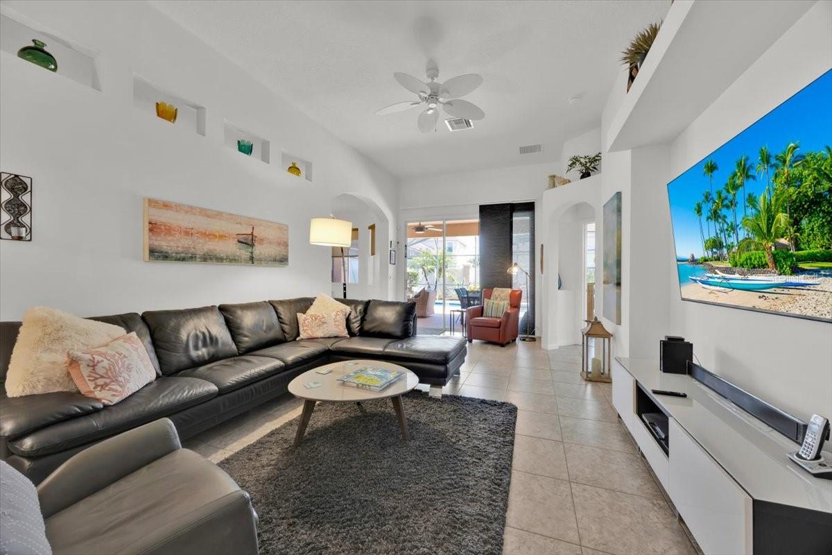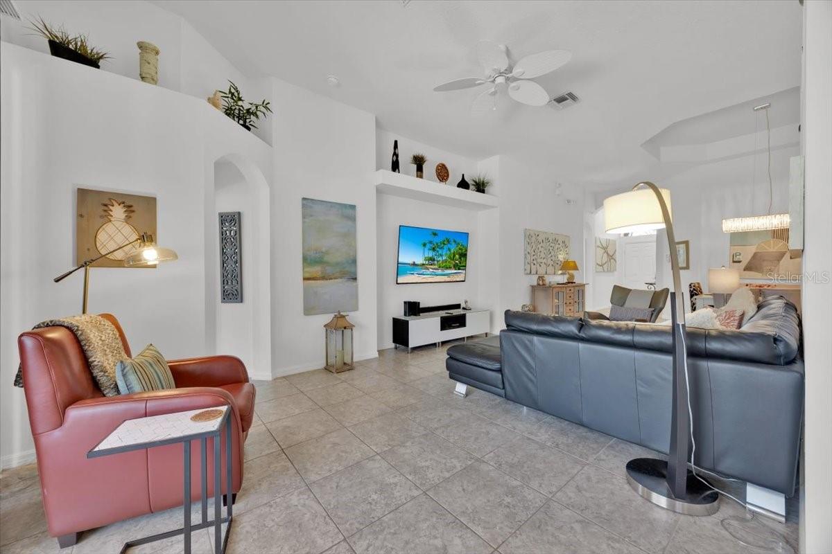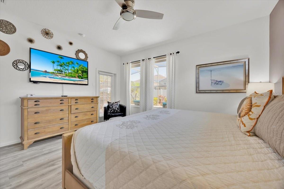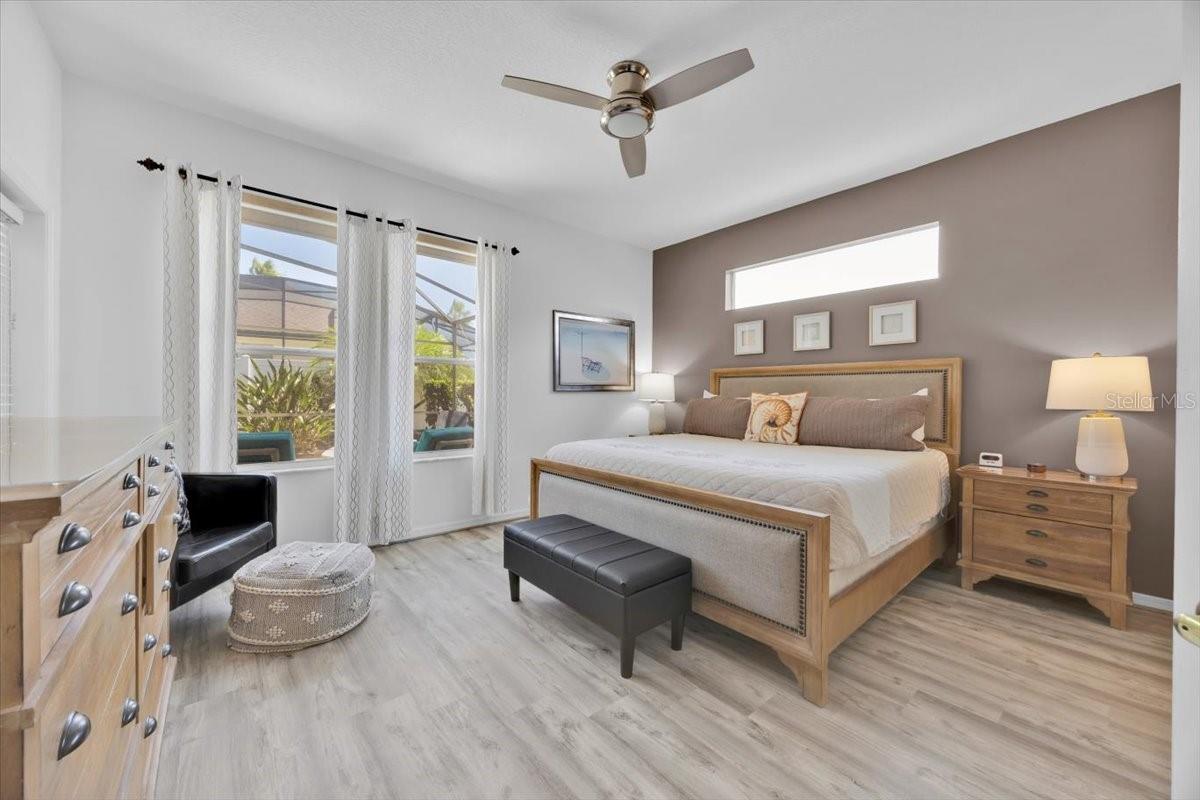 This impressive spacious and airy villa is being utilized as a short-term vacation/investment rental property. It has been upgraded to an Exceptionally High Standard by its owners. This beautiful property boasts three good-sized bedrooms and two upgraded baths. It provides a comfortable living space and well-equipped kitchen/breakfast area with upgraded granite worktops and window blinds. There is also a formal dining area which leads off to a fully equipped laundry room housing new washer and dryer. This leads off into the two-car garage being utilized as a games room. This 1,700-square-foot pool home could be equally utilized as a nice family residence also! The property's spacious bedrooms have been fitted with laminate hard surface flooring. Two of the well-presented bedrooms are fitted with plantation shutter blinds, fitted closets and share a fully updated bath with attractively tiled walk-in shower with modern glass frameless sliding doors. Each of the bedrooms all have flat screen TVs including a 70-inch in the lounge and a 60-inch in the beautifully furnished main bedroom which houses an attractive king-size bed and has upgraded window blinds with complementing window treatments. There is a door off the main bedroom which leads directly out onto the sparkling blue pool and decking area, set up for outdoor living under a covered lanai, which overlooks the pretty landscaped garden area just beyond the fully screened pool cage. The main bedroom has two walk-in closets, separate toilet, walk-in shower and corner tub. The property is conveniently situated and provides an easy commute to local theme park attractions, shopping and either east or west coastlines, accessible by the surrounding newly developed road networks!