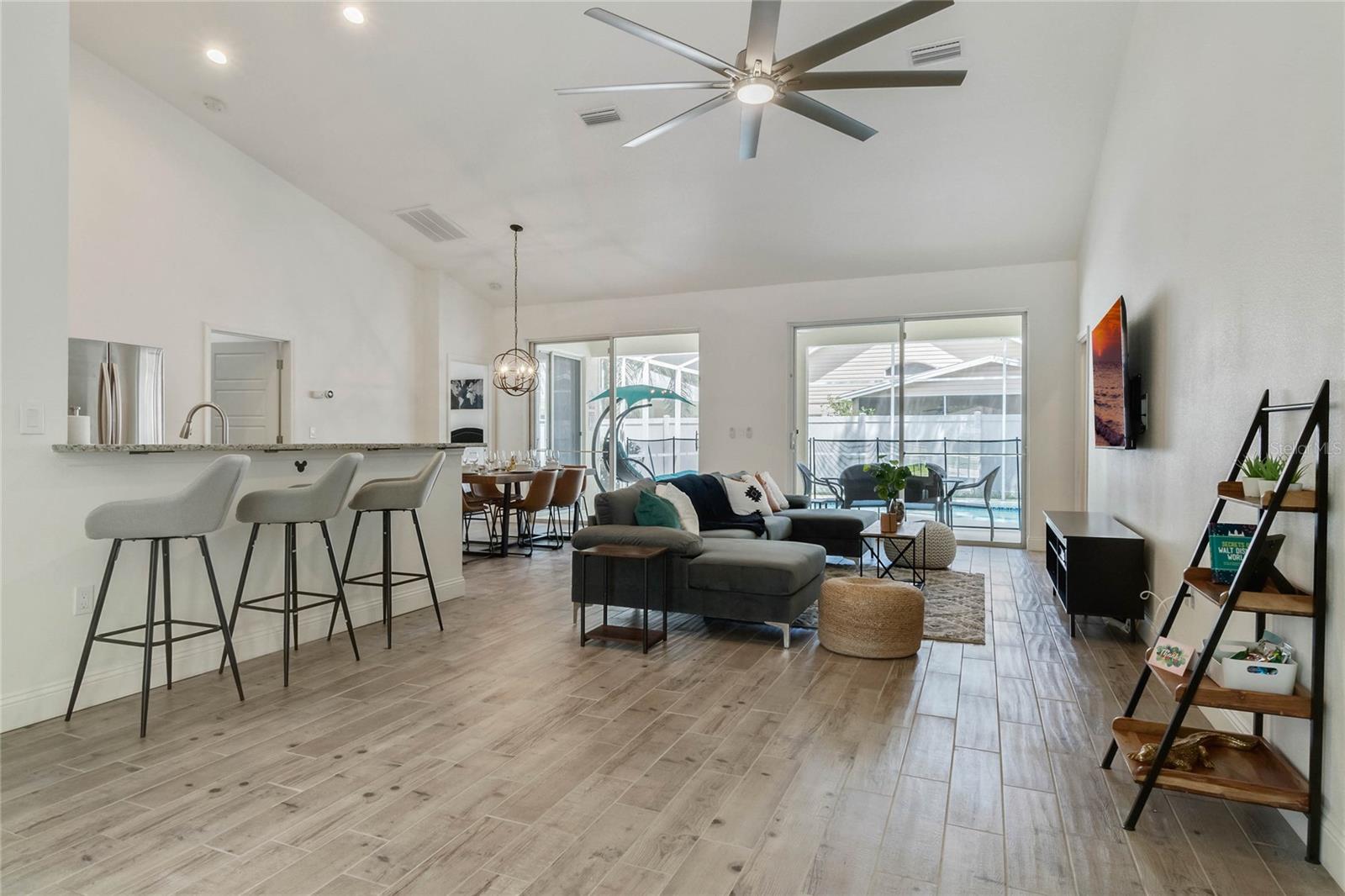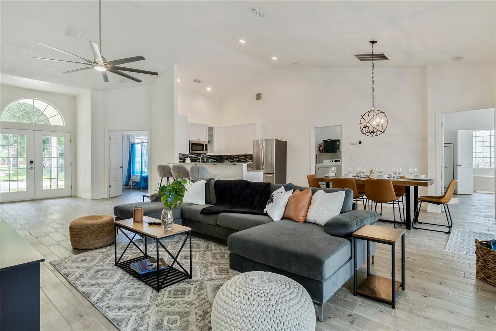 Bridgewater Crossing is a charming 78-acre community in Davenport, home to around 220 villas. It offers peaceful tree-lined pathways, picturesque lakes, and a refreshing community swimming pool for residents and guests to enjoy. Looking for a home that's ready for you to move in with no extra hassle? This stunning property comes beautifully furnished and features an open floor plan that is truly turn-key, making it the ideal choice for anyone looking for a seamless transition into their new residence. Every room is thoughtfully outfitted with tasteful and stylish furniture, designed to complement the space and maximize comfort. Granite countertops, sleek stainless steel appliances, modernized bathrooms, and elegant tile flooring throughout the home. Expansive pool deck featuring a south-facing pool, perfectly positioned to soak up the sun all day long—an ideal space for relaxation and outdoor enjoyment! Key Updates Include: - AC Unit: Replaced in 2021 - Pool Heater: Brand new in 2024 - Water Heater: Updated in 2021 - Pool Pump: Installed in 2022 - Washer & Dryer: Updated in 2021 - Kitchen Appliances: Stove, fridge, dishwasher, and microwave – all replaced in 2021 - Roof: Replaced in 2021 Seller has a painter going over in the next couple of weeks to do the following: 1.Complete Home Power Wash, stucco walls, siding, windows leaving the surfaces thoroughly clean. 2. - Power wash the pool deck to prepare it for painting. Hand cut and roll the pool deck with full-body deck paint. 3- Paint the siding on the side of the house. Fill any cracks if any and paint over. - Paint the siding on the side of the house. Power wash the garage floor. Bridgewater Crossing Amenities: - Community swimming pool - Basketball, beach volleyball, and tennis courts - Children's play area with swings, slides, and climbing frames - Designated picnic and BBQ area - Scenic fishing lake surrounded by tree-lined sidewalks Prime Location: - Just 9.5 miles from the Magic Kingdom, making it a quick 20-minute drive to Disney. - Conveniently located near Orlando International Airport for smooth travel. - Close to shopping hubs like Posner Park and grocery stores, including Walmart and ALDI.