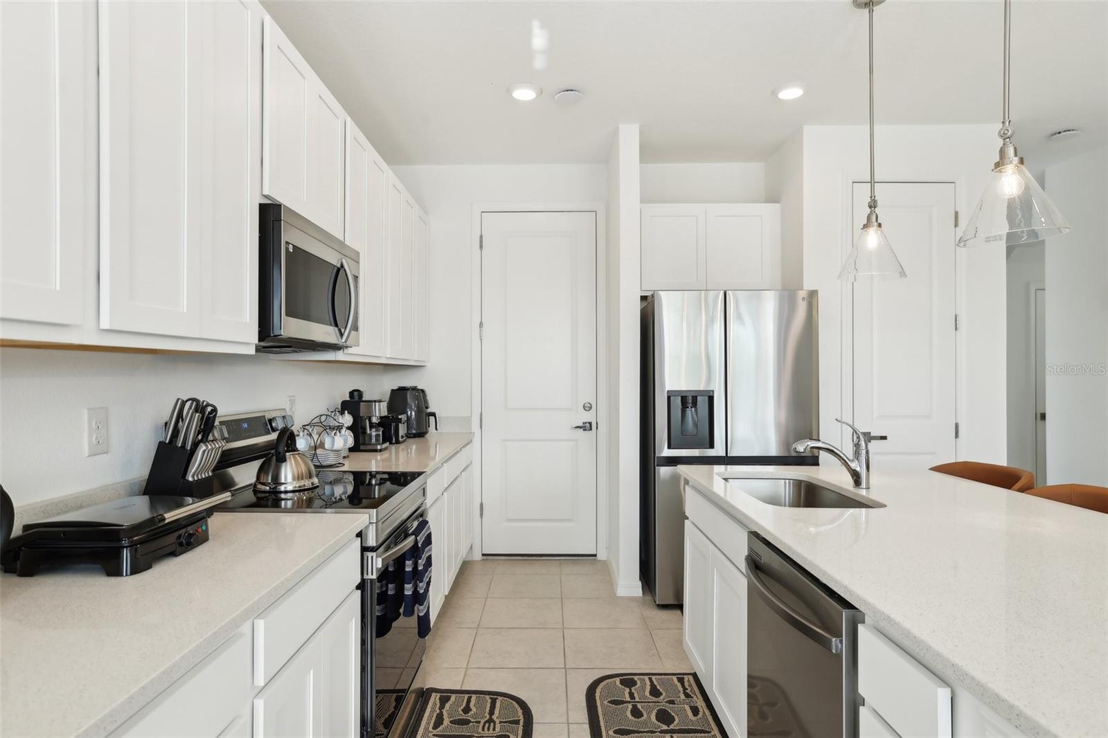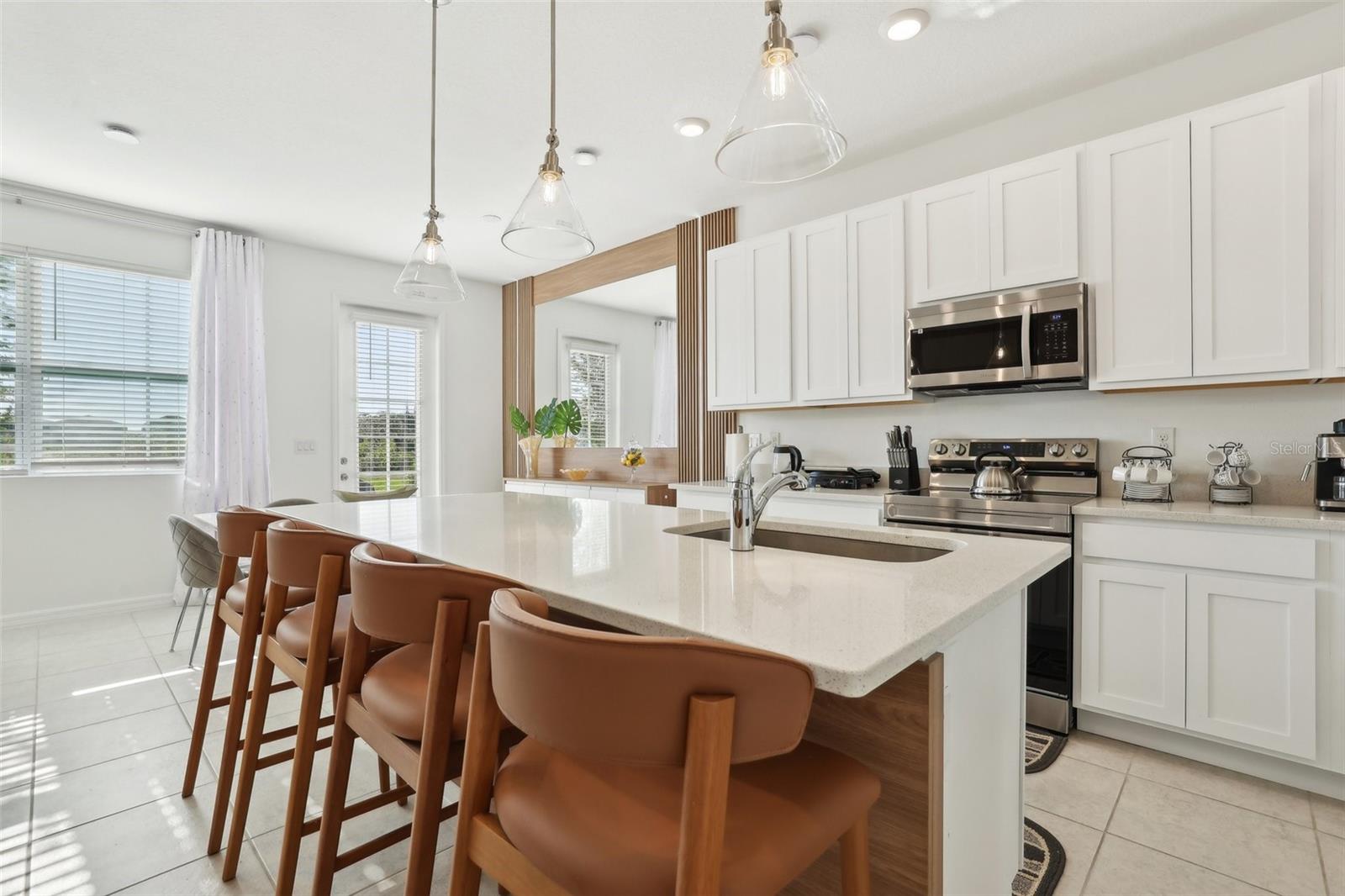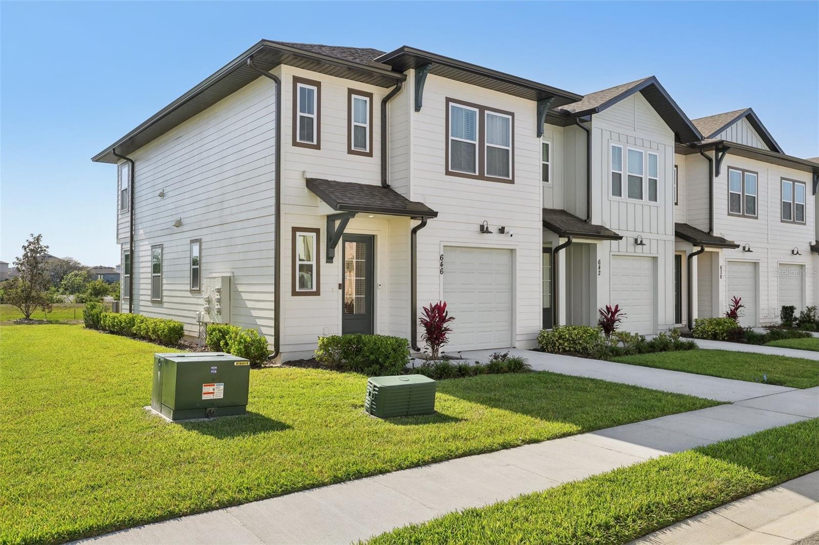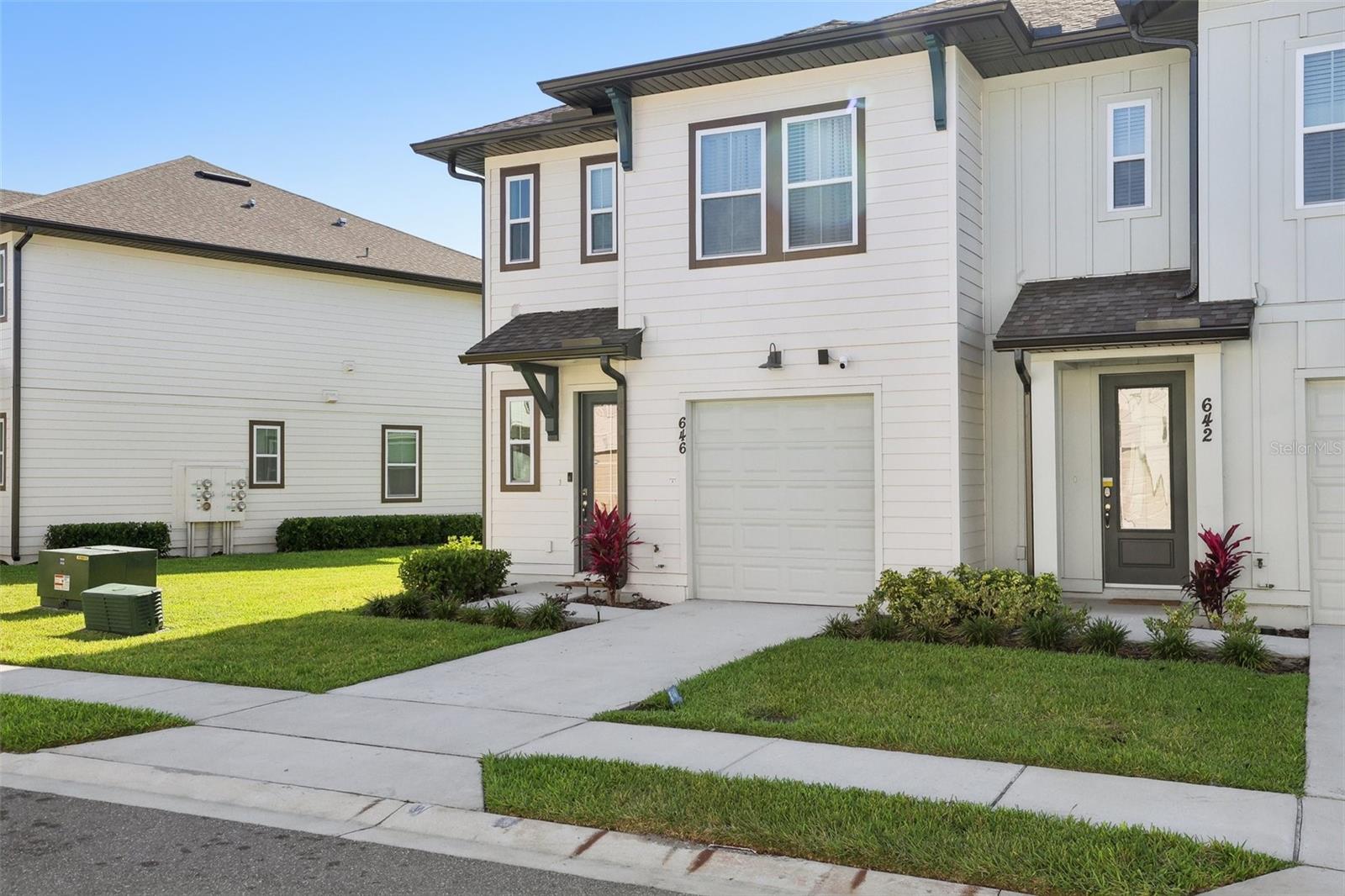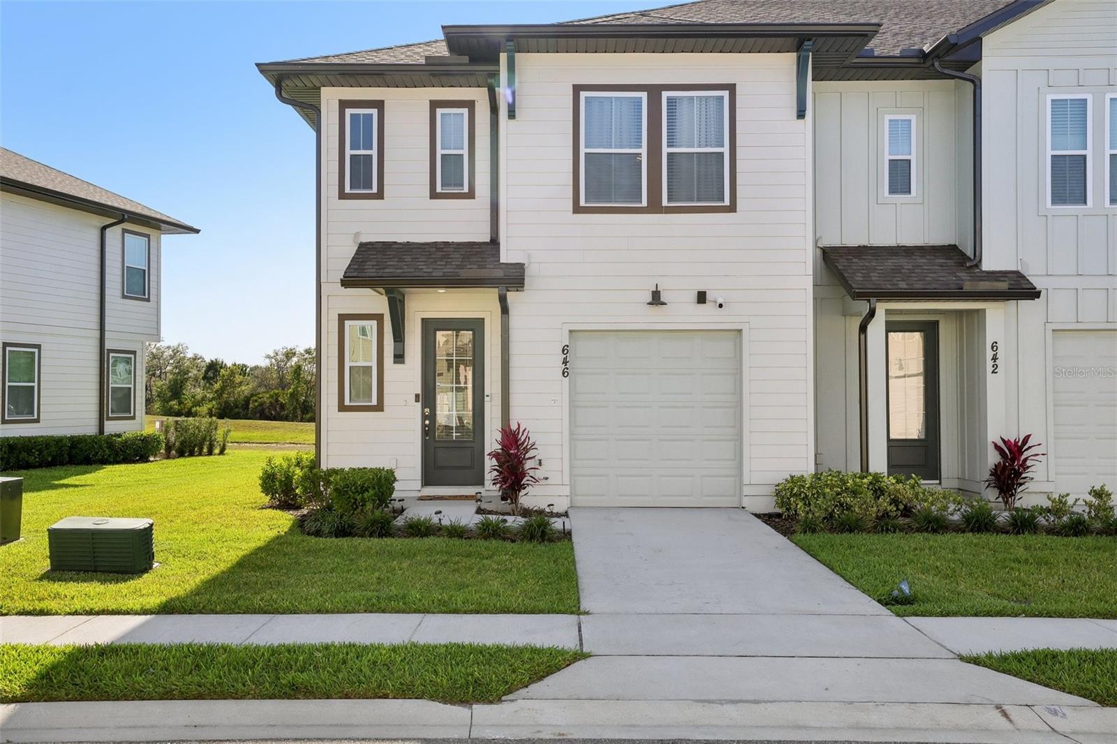 This beautifully designed 3-bedroom, 2.5-bath townhome offers a bright and open layout perfect for modern living. The upgraded kitchen is a true highlight, featuring 42” white cabinetry, quartz countertops, a generous island ideal for gatherings, and premium Samsung stainless steel appliances including a range, microwave, and dishwasher. Downstairs, you’ll find stylish 17x17 ceramic tile flooring, while the upstairs bedrooms are finished with cozy Shaw carpeting. Built with energy efficiency in mind, this home includes double-pane low-E vinyl windows, water-saving fixtures, R-30 ceiling insulation, and LED lighting throughout. It also comes with the Minimalist Essential Collections Package and is backed by a limited structural warranty. Enjoy resort-style living with access to incredible community amenities, such as a sparkling pool, water park, state-of-the-art fitness center, 18-hole mini golf course, and beach volleyball court. Located just minutes from shopping, dining, Posner Park, Champions Gate, and a short drive to Disney World—this home offers the perfect blend of comfort, style, and convenience.