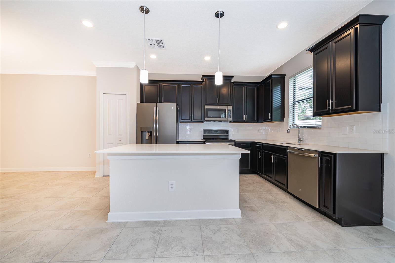 Under contract-accepting backup offers. This stunning townhome at 1227 Sandwedge St offers 3 bedrooms, 2.5 bathrooms, and 1,912 sq ft of beautifully designed living space, blending modern elegance with everyday comfort. Located in the Vistas at ChampionsGate, this gated residential community is surrounded by scenic conservation areas and is ideal for families, golf enthusiasts, and nature lovers alike. Step inside to find an open-concept floor plan with walnut ceramic wood-look tile flooring, recessed lighting, and plenty of natural light throughout the main level. The gourmet kitchen is a chef’s dream, featuring quartz countertops, a large breakfast island, tile backsplash, 42” shaker cabinets with crown molding, a French door refrigerator, and a spacious walk-in pantry. Upstairs, the primary suite showcases a tray ceiling, walk-in closet, and a spa-inspired en suite bathroom with dual vanities, a soaking tub, separate glass shower, and private water closet. Two additional bedrooms, a full bath, and an upstairs laundry room complete the second floor. The dining area can easily be repurposed as a home office or flex space. Enjoy your private open patio facing a peaceful conservation area, perfect for outdoor relaxation with no rear neighbors. Community amenities include two resort-style clubhouses. The Vistas Club features a heated pool, fully equipped fitness center, golf simulator, sauna, game room, and catering kitchen. Residents also enjoy access to the Oasis Club, offering a water slide, lazy river, splash zone, movie theater, restaurant, bar, sports field, and more. HOA fees include: cable TV, high-speed internet, exterior maintenance, grounds care, pest control, trash service, and access to recreational facilities. Located near top-rated schools, this home also offers the convenience of being within close proximity to both of Florida’s beautiful coasts perfect for enjoying quick beach getaways and weekend escapes. Ideally located near I-4, Hwy 27, and US-192, this property provides quick access to Walt Disney World Resort, golf courses, shopping, dining, and Orlando’s top attractions. Please note: The Vistas at ChampionsGate is zoned for residential use. Short-term rentals are not permitted. Schedule your private showing today and experience Florida living at its finest!