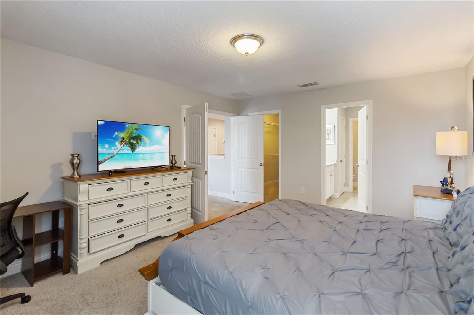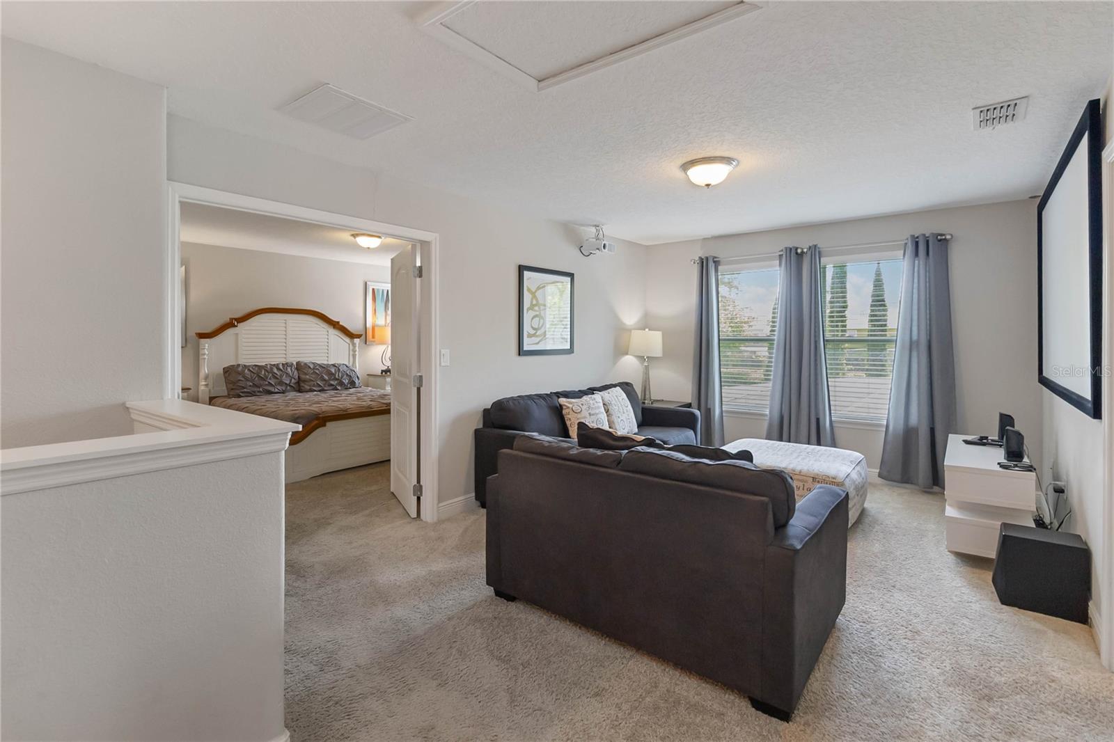 “Mortgage savings may be available for buyers of this listing.” Turnkey vacation investment opportunity! This beautiful 100% furnished home is located in Solterra- a premier short-term rental community, and is ideally situated just minutes from all of Orlando's world class attractions, theme parks, golf, dining, shopping and more! With over 3200 sq ft, 6 bedrooms and 5.5 bathrooms this home boasts a spacious, open concept floorplan that is perfect for entertaining. The kitchen features an oversized island with plenty of seating, white cabinets, SS appliances and granite countertops. The great room offers sliders to a private heated, screened pool & spa lined with covered paver patio that is lined with hedges for ultimate privacy. Formal dining space offers flexibility. Dual primary bedrooms- one conveniently located on the main floor. Upstairs a second primary suite offers a soaking tub, tile shower and dual vanity. Large Bonus room with projector & screen built in. Four more generously sized bedrooms with 3 shared bathrooms. Enjoy easy maintenance with ceramic tile flooring throughout the first floor and peace of mind with a durable tile roof. Solterra offers a wealth of amenities including a clubhouse that features a large zero-entry pool, water slides, a pub-like lounge with flat-screen TVs, a lazy river, pool cabanas, a fully equipped fitness center, tennis courts, a soccer field, walking trails, beach volleyball, a bar with a grill, a business center, and a fantastic play area. HOA fee includes basic internet and Lawn Care! Don’t miss out on the opportunity to make this beautiful home yours - Schedule a private tour today!