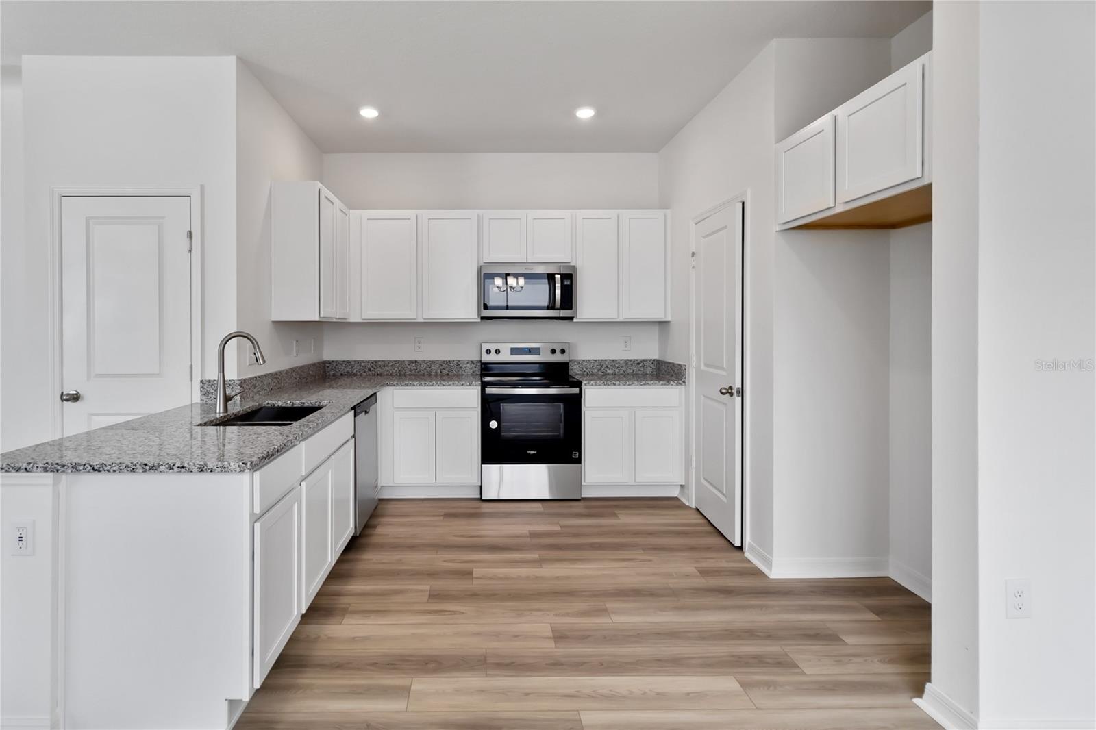 Modern elegance meets everyday comfort in this beautifully designed, two-story home, which showcases an open floor plan with 9-ft. first-floor ceilings and stylish luxury vinyl plank flooring. The contemporary kitchen boasts 36-in. upper cabinets, sleek granite countertops and premium Whirlpool® stainless steel appliances. Upstairs, the primary bath offers a spacious walk-in shower for ultimate relaxation.