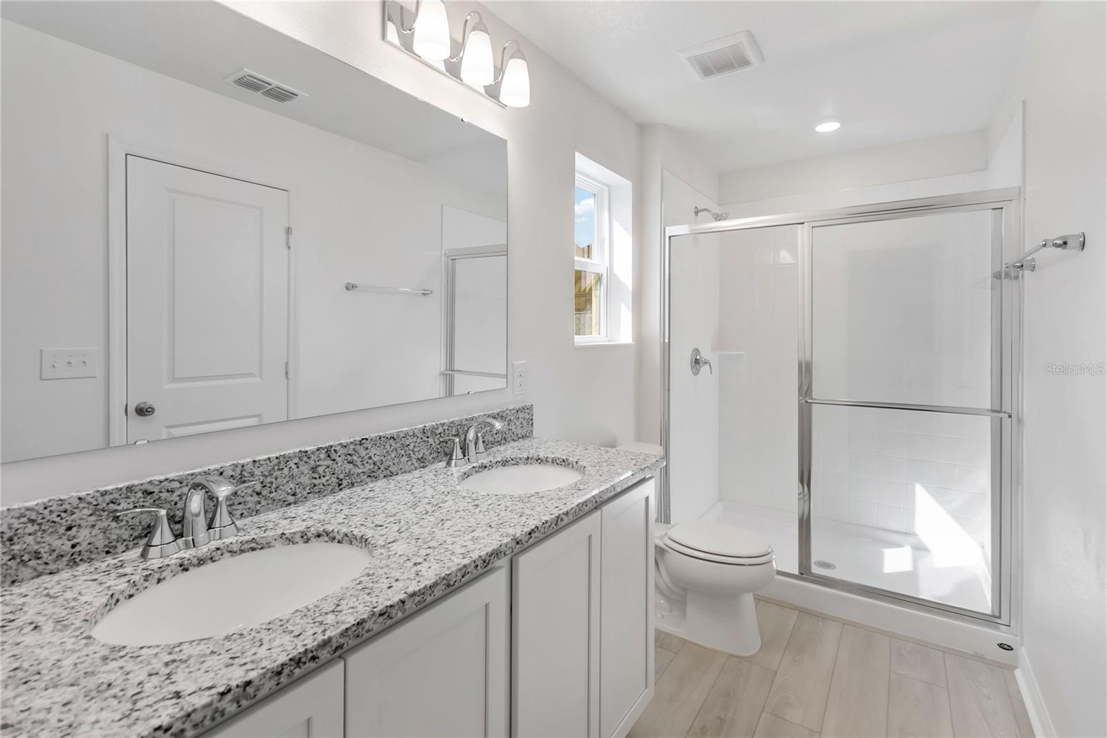 Experience both style and functionality in this stunning, two-story home, which showcases an open floor plan with 9-ft. first-floor ceilings and luxury vinyl plank flooring. The modern kitchen boasts 36-in. upper cabinets, elegant granite countertops and state-of-the-art Whirlpool® stainless steel appliances. Upstairs, the primary bath features a spacious walk-in shower, which creates a sleek and refreshing retreat.