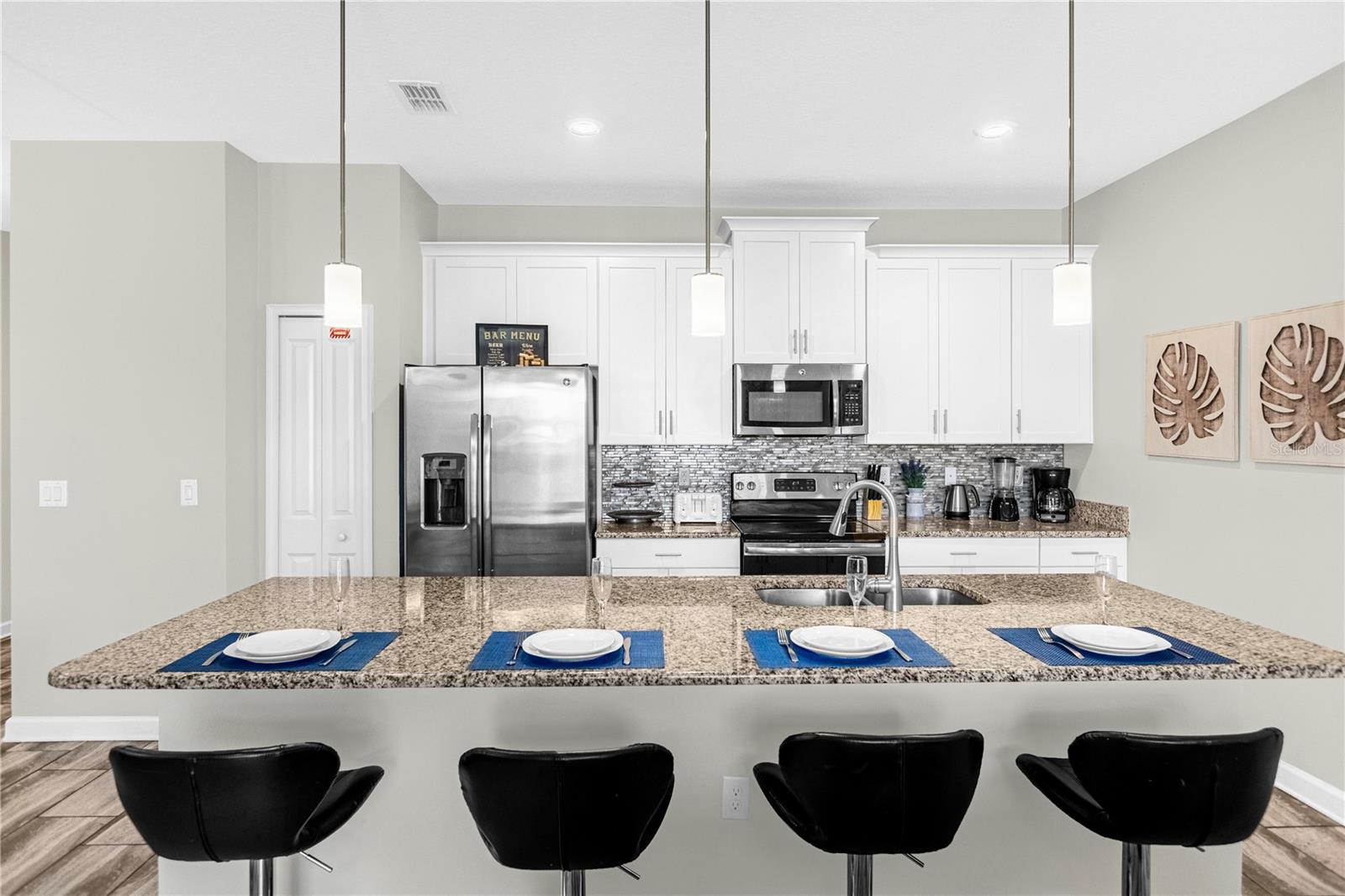 Your Dream Home or Investment Opportunity in ChampionsGate Resort! **PRICE ADJUSTED !! ** NEAR THE OASIS CLUBHOUSE **SEE OCCUPANCY FORECAST IN THE ATTACHMENTS ** Don’t miss your chance to own a beautifully furnished, professionally decorated home in the exclusive ChampionsGate Resort—perfect as a a high-performing short-term rental with bookings already in place for 2025. See attachments. This spacious, light-filled property features an open-concept layout with a seamless flow between the kitchen, dining, and living areas, all leading to a covered poolside patio—perfect for entertaining or relaxing in the Florida sunshine. The private pool offers a splash of luxury, making it ideal for hosting guests or enjoying quiet family time. Inside, you’ll find one bedroom on the main floor, while upstairs boasts a luxurious primary suite, two additional bedrooms, and a convenient washer/dryer. Elegant ceramic flooring in wet areas, neutral tones, and high-quality finishes enhance the home’s timeless appeal. Located in a 24-hour gated community, ChampionsGate offers world-class amenities, including two 18-hole Greg Norman-designed golf courses, a resort-style clubhouse with pools, a lazy river, splash park, waterslides, a fitness center, and more! All of this, plus easy access to Walt Disney World, I-4, shopping, and dining, makes this an unbeatable opportunity. Short-term rentals allowed. Sold fully furnished. Submit your offer anytime .