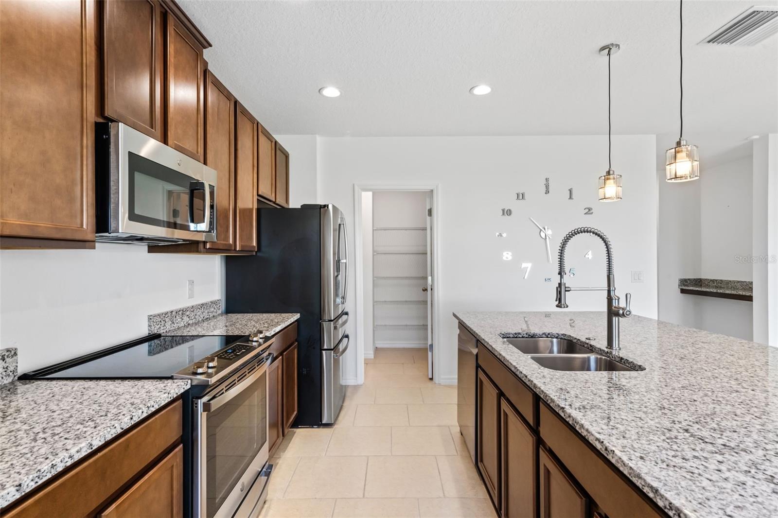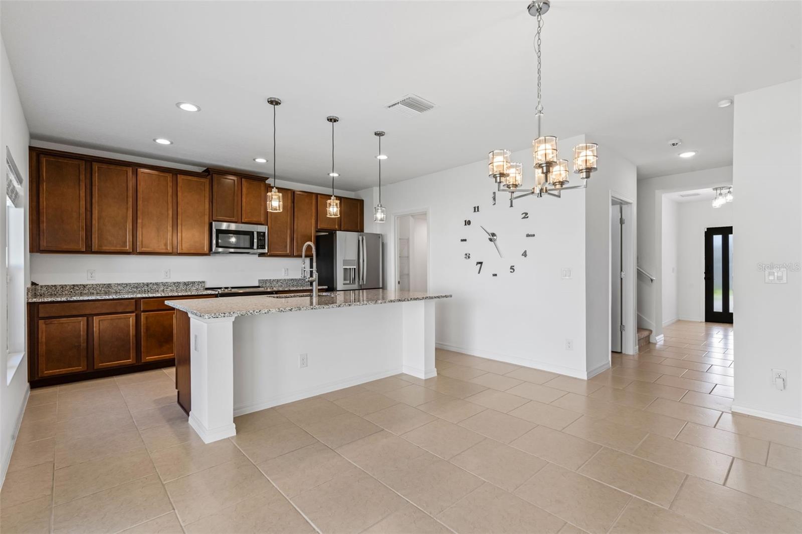 PRICE REDUCED AND 10K CLOSING COST CONTRIBUTION! Move in ready! Welcome to this lovely two-story home featuring 5 spacious bedrooms plus a large bonus space upstairs, located in Davenport, FL—just 20 minutes from the magic of Disney World! Whether you're looking for a long-term rental investment, a private vacation retreat, or your primary residence near Orlando’s top attractions, this property is a fantastic option. The open floorplan offers a wonderful flow, highlighted by a first-floor bedroom and full bathroom—perfect for guests—while a separate powder bath ensures privacy for the bedroom occupant. The large kitchen boasts granite countertops, deep wood-tone cabinets, and a center island with seating, complemented by a breakfast nook area. Ceramic tile flooring spans the first-floor living spaces, adding durability and style. The expansive family room opens to a large, fenced backyard—ideal for entertaining or relaxing outdoors. Upstairs, you'll find a spacious loft/bonus room, the primary suite, and additional secondary bedrooms and baths. Enjoy the community amenities including a pool and playground. Priced exceptionally well, this home offers an outstanding opportunity you won’t want to miss! WELCOME HOME!