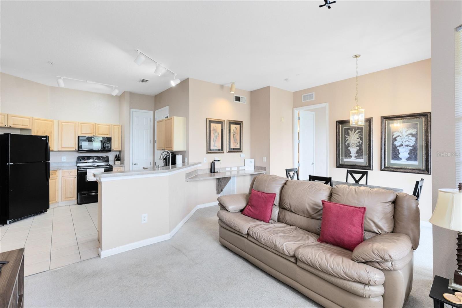 Fully furnished condominium in the popular gated Terrace Ridge community is ideal for short-term/vacation rental, investment rental or an inexpensive permanent residence. On the third floor of an elevator-serviced building, it is well-positioned on the quiet side, away from the parking lot, with all rooms overlooking a wooded area - peaceful. The living area is bright and open with comfortable leather recliners and sleeper sofa, a spacious dining area with sliding doors that open to the private balcony and a built-in desk area for catching up on screen time. The spacious fully equipped kitchen includes all housewares and has plenty of cabinet space including a full-size pantry or storage closet and opens conveniently to the inside laundry room, washer and dryer also included. The hot water heater was just replaced (August 2025) and AC recently serviced. The condominium's split plan offers a spacious primary suite with two walk-in closets, one designed for lock off for owner’s use, and an en-suite bath offering a walk-in shower as well as a tub shower - ideal when everybody is trying to get ready at the same time. The second bedroom has its private hallway as well as a full second bath so is ideally positioned for either additional family members or roommates to have their separate space. There is a beautiful community pool and clubhouse with a fitness center all included in the very reasonable HOA fee which also includes water, trash, cable and high-speed internet meaning your only other monthly bill is electric, ideal for managing your budget and keeping your running costs low. Terrace Ridge is ideally just minutes from shopping (including Publix and Aldi) and a wide variety of dining options with easy access to Interstate 4 and SR 429. Qualified buyers may receive a 1-year interest rate buydown for the first year paid for by the Seller's preferred lender when financing this home (subject to credit approval and program availability) - call today for details.