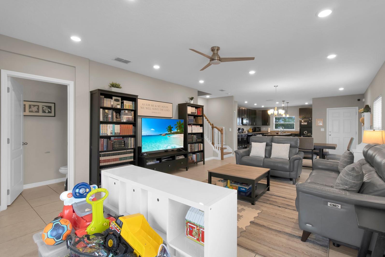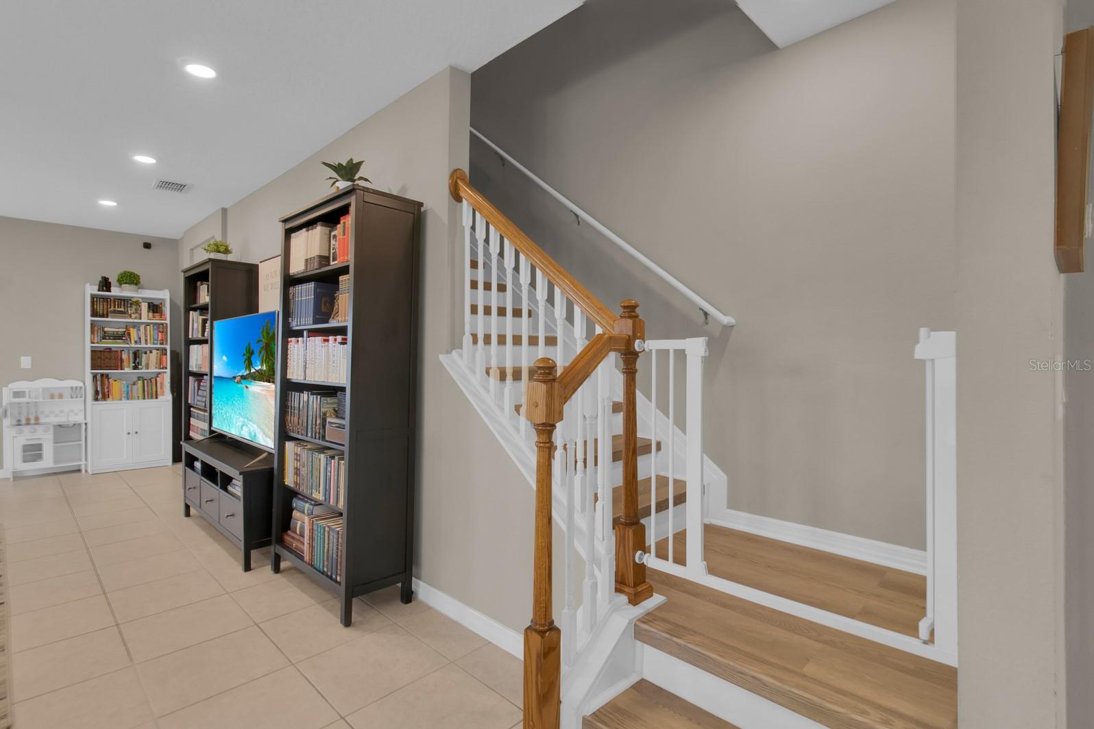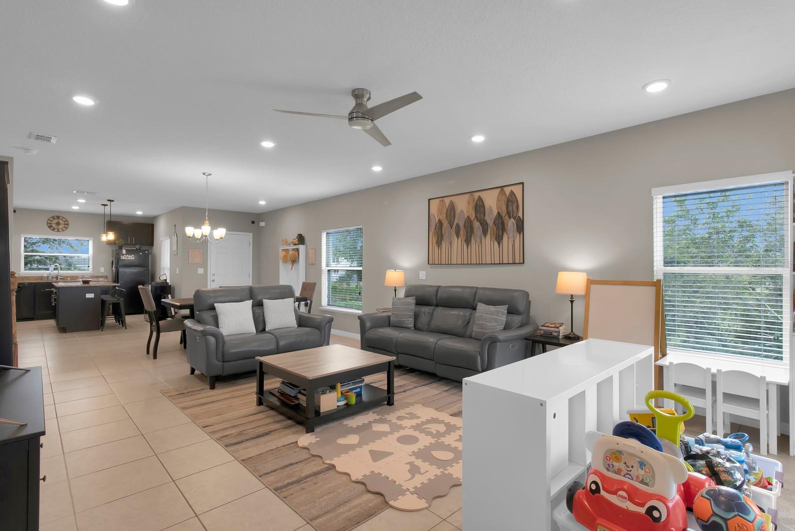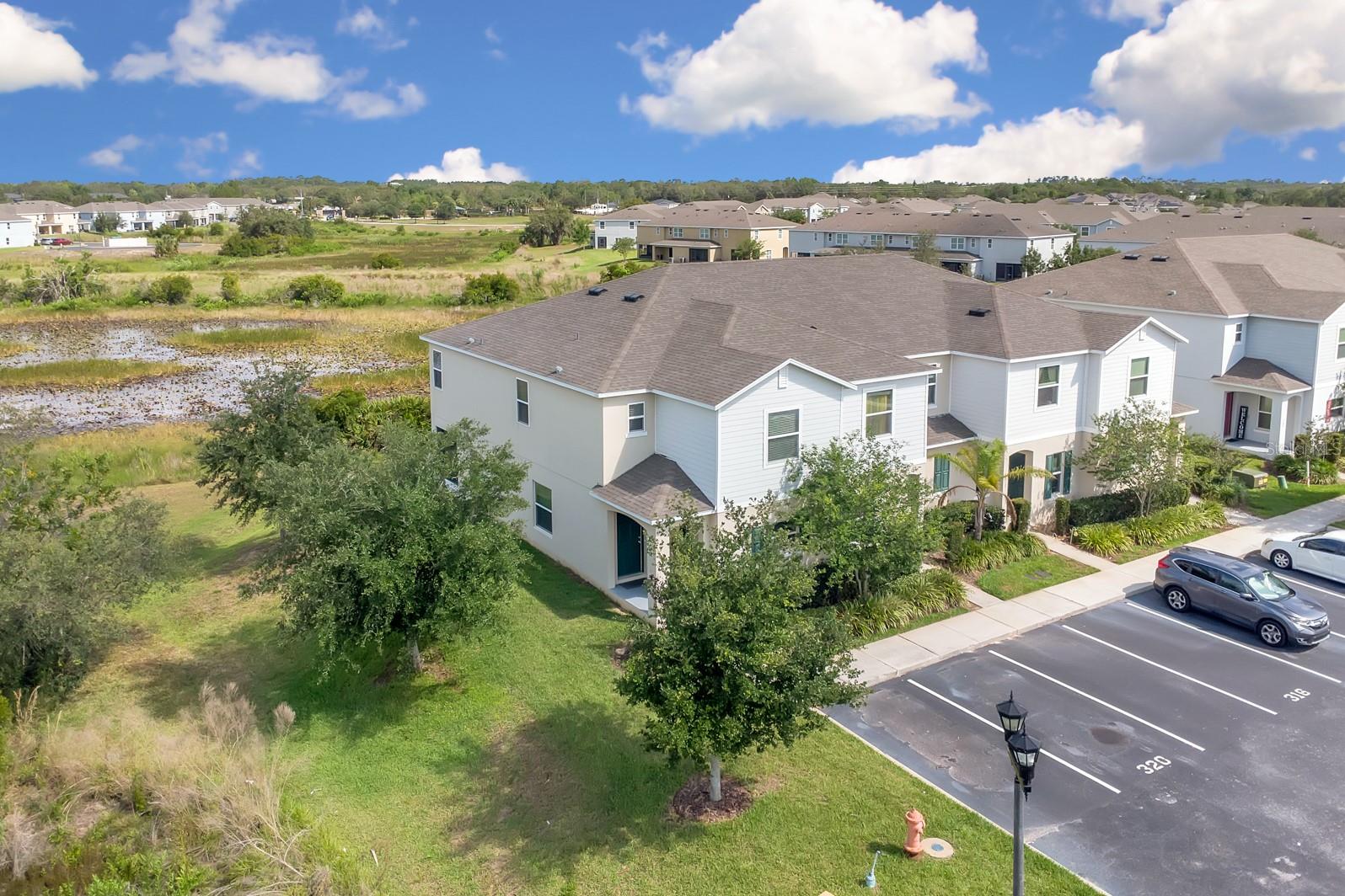 Exceptional Opportunity in Williams Preserve! Welcome to 320 Primrose Drive, a beautifully maintained end-unit townhome nestled in the desirable gated community of Williams Preserve. Whether you're looking for your next home or a smart investment property, this residence is a perfect choice. This spacious 3-bedroom, 2.5-bathroom townhome offers a functional layout and stylish finishes throughout. Upon entering, you're greeted by an open-concept kitchen featuring granite countertops, black appliances, ample cabinet space, and a convenient center island—ideal for cooking, meal prep, and entertaining. The family and dining area is expansive, with tile flooring and sliding glass doors that lead out to your screened-in lanai—complete with an additional exterior storage room. A powder room is also located on the first floor for guests' convenience. Upstairs, the primary suite is generously sized and features a large walk-in closet, dual vanities, and a walk-in shower. Two additional bedrooms and a second full bathroom offer space and privacy for family or guests. The upper level is finished with laminate flooring throughout, and a full-size washer and dryer are also included. Residents of Williams Preserve enjoy access to resort-style amenities, including a community pool and playground. The location is ideal—just minutes from Champions Gate, with easy access to restaurants, shopping centers, and all major highways. This home is move-in ready and waiting for its next owner. Whether you're settling in or adding to your portfolio, 320 Primrose Dr is a must-see!