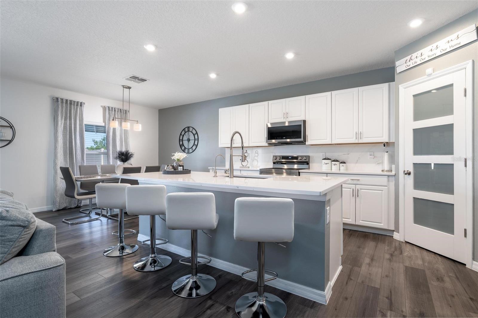 ***Motivated Seller - Bring All Offers *** For Sale is a 6-bedroom, 5-Full-Bath home with a HUGE FENCED BACKYARD and a POOL that shows like a MODEL HOME! It features two downstairs bedrooms and bathrooms, one of which has an en-suite bath, a Huge Upstairs Primary Suite + a Spacious Loft. Two of the upstairs bedrooms share a Jack-and-Jill Bathroom, plus there is another bathroom next to the loft with another bedroom adjacent. Open-Concept Living with tastefully done upgrades such as Vinyl Plank Floors, Hardwood Staircase, Quartz Countertops & Quartz Backsplash in the Kitchen, along with High End Samsung Appliances, plus more! The huge fenced-in backyard features a 15x25-foot HEATED SALT WATER PEBBLE STONE POOL that goes from 4 Feet in the Shallow Side to 6 Feet in the Deep. And if that's not enough, the neighborhood features a playground and community pool that you can access from your backyard. The homeowner also did all the little things so you don't have to, such as the added water softener, garage door insulation, mounted toolboxes, plus more! This home is perfect for a large family with or without pets that's looking for a large home with a lot of space where everyone gets easy access to a bathroom, plus enough space to entertain and run around! Plus, you are conveniently located within 25 minutes to Disney and only 5-10 minutes from Publix and other shopping and grocery stores. And if that's not enough, the Posner Park Mall with Target, Best Buy, Chipotle, Chick-fil-a, and BJ's Wholesale Club is only 12 Mins away! MOTIVATED SELLER! Schedule your private tour today!