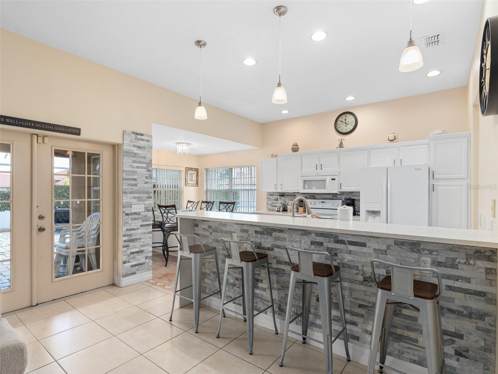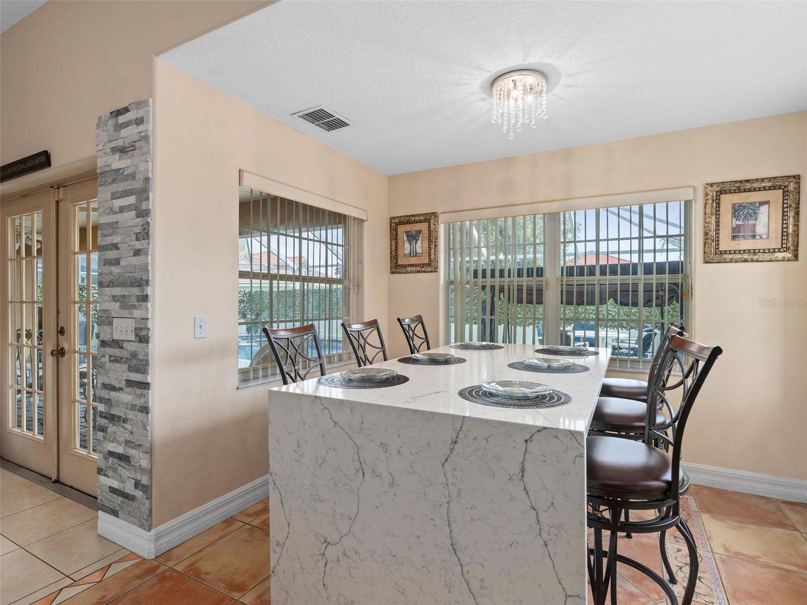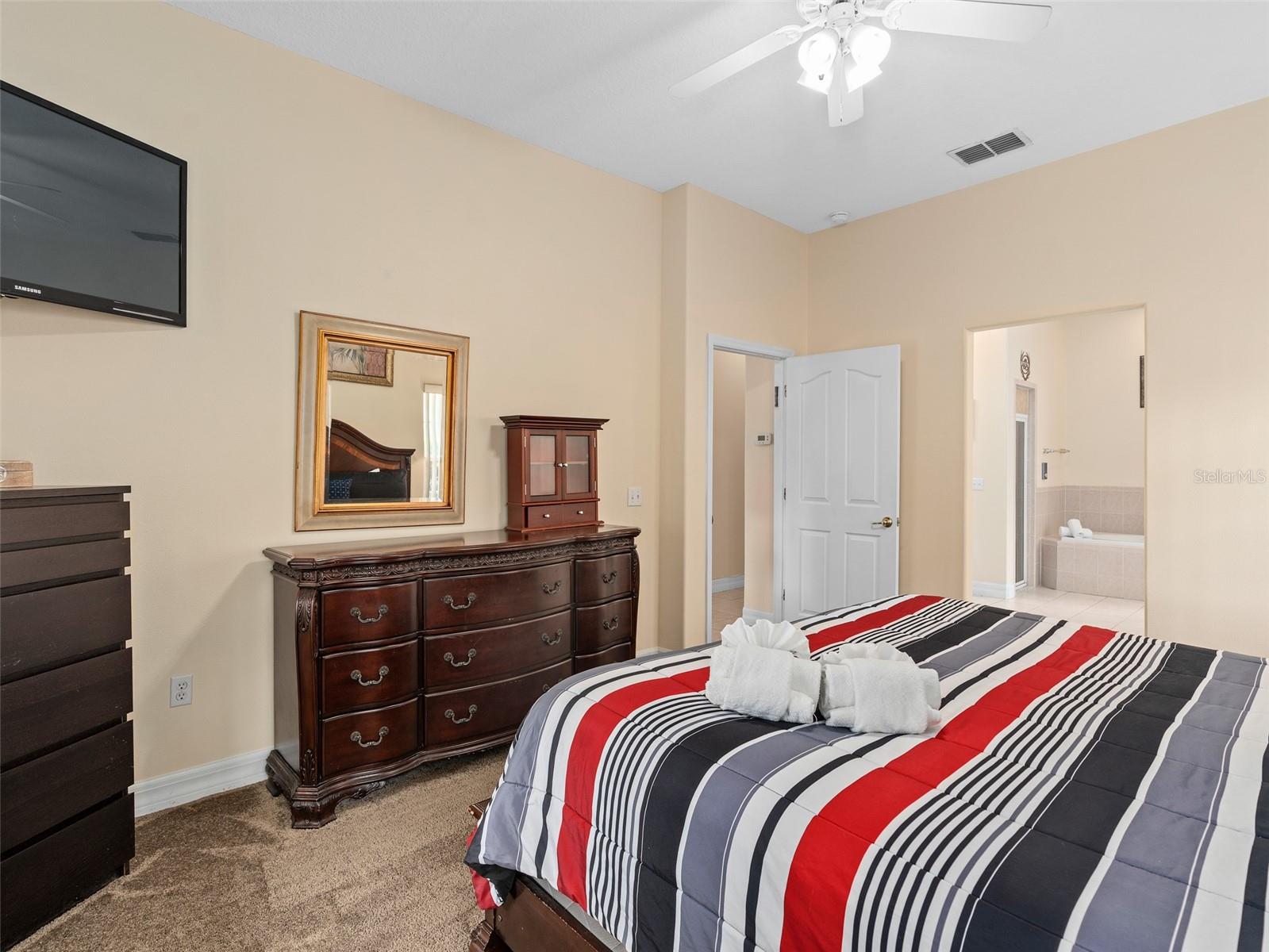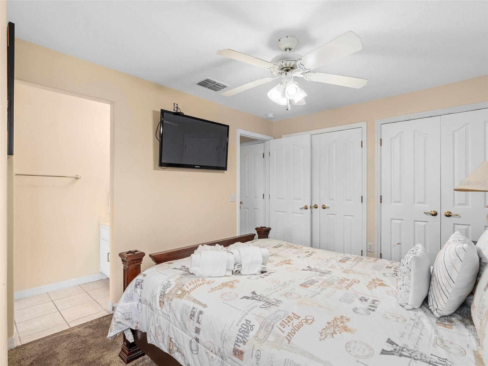 Price REDUCED to Sell Fast!!! This exceptional residence features 5 bedrooms, 7 full bathrooms, and a sauna, making it ideally suited for short-term rental, long-term occupancy, or as a primary residence. This house was utilized as a short-term vacation rental through Airbnb for a couple of years after current owner moved out of state. Positioned just 12 minutes from the Disney Parks, this property is nestled within a secure gated community on a generously sized corner lot. Upon entry through the double French doors, guests are welcomed by elegant ceramic tileflooring.To the right lies the primary living room, complemented by a charming fireplace and overlooking the dining room. The dining are provides access to an open-concept kitchen space featuring updated cabinetry, a double kitchen sink, dishwasher, new garbage disposal,microwave,refrigerator, and range. Adjacent to the kitchen is a breakfast nook comfortably seating six individuals. Facing the kitchen is another living area,which leads to a second set of double French doors providing access to the stunning pool and ground spa area, enveloped by a brick decking and accompanied by a full stand-up shower. Here, guests can unwind and appreciate the captivating sunrises and sunsets with loved ones. Please note that the built-in grill is currently non-operational and requires a new burner. The first floor hosts the primary master bedroom,complete with a dual-sink bathroom and expansive walk-in closets. Opposite the master bedroom is a spacious master bathroom featuring a steam stand-up sauna and separate tub. Additionally, a generously sized laundry room is conveniently situated on the same floor, with access to the double-car garage below. Upstairs, four additional bedrooms await discovery. The second master bedroom offers dual sinks, tiled floors, a separate shower and tub, and a walk-in closet. The third bedroom is equipped with a full shower/tub bathroom, while the fourth bedroom features a stand-up shower. The fifth bedroom also boasts its own full shower/tub bathroom, all adorned with Mediterranean-style roofing. FURNITURE in the pictures will NOT CONVEY, However, the Sauna Room and Equipment will.