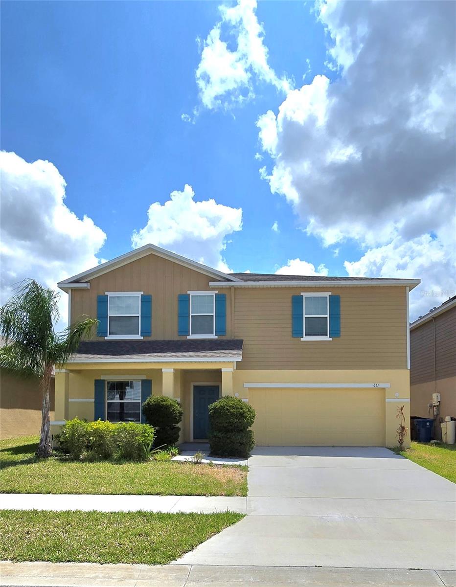 Got Space? This spacious five-bedroom, three-bathroom, two-story home is waiting for you. As you drive up, the inviting front porch welcomes you. Upon entering, you'll find tile flooring throughout the first level, complemented by high ceilings that create an open and airy atmosphere. The open floor plan is ideal for entertaining, with the kitchen seamlessly overlooking the dining and living areas, allowing you to engage in conversation while preparing your favorite meals. The kitchen is well-appointed with stainless steel appliances, granite countertops, pantry, and a breakfast bar for casual dining. Additionally, the first floor features a bedroom that could serve as a guest room or a home office, along with a full bathroom. As you ascend to the second floor, you will discover a large loft area, providing endless possibilities to suit your needs. The primary suite offers a designer touch with its tray ceiling and includes an ensuite bathroom with dual sinks and a walk-in closet. There are three additional generously sized bedrooms and another full bathroom to accommodate your fit. Interior laundry closet is conveniently located on the second floor for ease. Don't forget to explore the backyard! Step through the sliding glass doors from the great room to find a screened-in, covered patio, perfect for enjoying the outdoors. Situated in the Northridge Reserve community, you will have access to a sparkling resort-style pool, a dog park, and couple of playgrounds. Conveniently situated just off US 27 and in close proximity to I-4, this location provides a wealth of dining and shopping options. Additionally, it is near the renowned theme parks of Central Florida, ensuring a myriad of entertainment possibilities. Don't miss the opportunity to make this exceptional home yours!