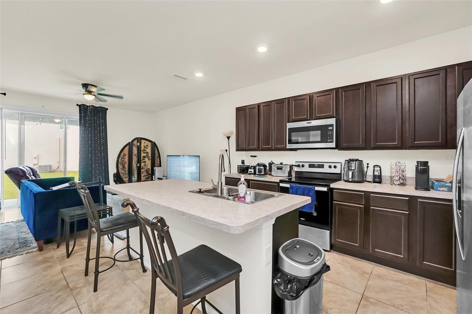 ***$10,000 Closing Cost Incentive*** This Atria at Ridgewood Lakes contemporary two-story townhome is in a Gated Community off US-27, 3 miles South of I-4, between the Posner Park mega shopping complex and the Advent Health Medical Corridor. This townhome has a Huge Kitchen Island ideal for entertaining and a panel sliding Glass Door that opens to a Massive Covered Lanai with which to enjoy that beautiful Florida Weather morning, noon, and night. The equipped kitchen has solid wood cabinets, stainless steel appliances, and a walk-in pantry. Also, the Upstairs has a Spacious Master Bedroom located upstairs that includes a walk-in closet and an ensuite bathroom with a double vanity and spacious shower. This open floor plan is ideal for families, investors, and those seeking a low-maintenance lifestyle in Central Florida. The Smart Home Technology includes Keyless Entry, Skybell system, Alexa, and much more. The recreational facilities include a playground, tennis courts, and walking paths with Golf-Cart access offering convenient transportation options.