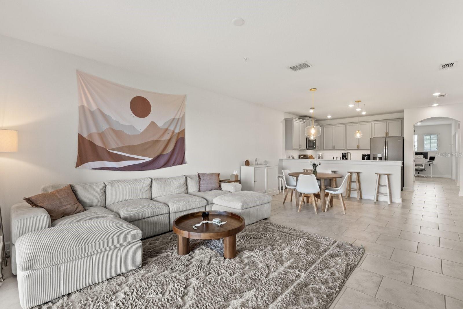 Welcome to this beautiful two-story condo located in the sought-after Champions Club community at Champions Gate! This spacious 3-bedroom, 2-bath home features stylish tile flooring throughout, a cozy living room and kitchen combo, and ceiling fans in every bedroom for year-round comfort. The modern kitchen is highlighted by recessed and pendant lighting, perfect for cooking and entertaining. Retreat to the expansive master suite, which opens up to a private balcony overlooking open space—ideal for relaxing or enjoying your morning coffee. The primary bathroom includes a soaking tub, shower over tub, and dual sinks for added convenience. The seller is willing to offer a closing cost credit. Enjoy resort-style living with access to the exclusive Oasis Club featuring a lazy river, waterslide, state-of-the-art fitness center, restaurants, theater room, spa, sand volleyball courts, tennis, and a tiki bar. Located in a manned and gated community just minutes from Disney, shopping, dining, and medical facilities. Call today to schedule your showing!