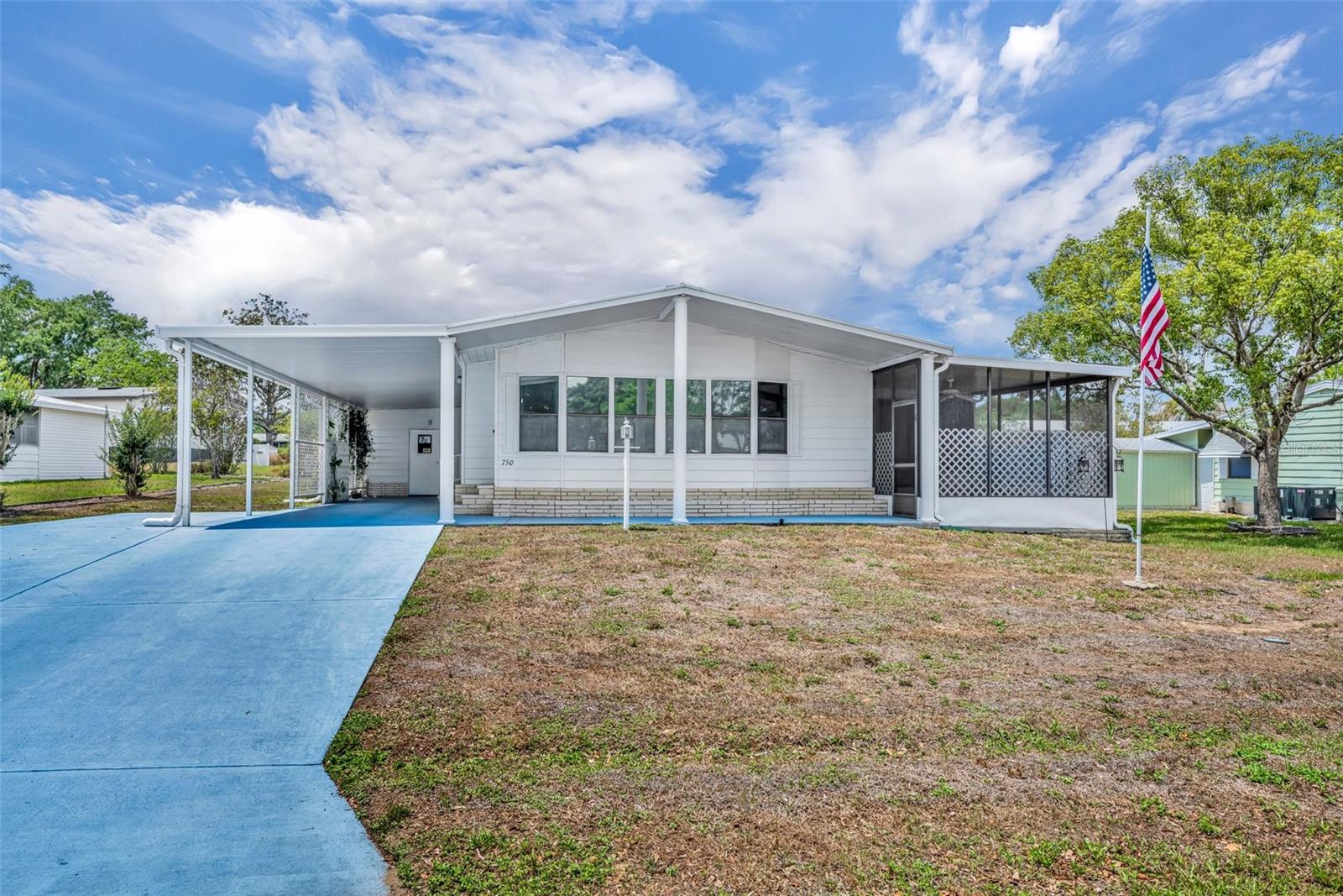 Beautiful home in Polo Park 55+ Golf Community - LAND-OWNED! Welcome to this well maintained 2-bedroom, 2-bath home located in the desirable 55+ community of Polo Park in Davenport. This spacious home features a bright and open layout, including a 24' Florida room with A/C and heat, perfect for year-round living or entertaining. The Florida room leads down to a screened-in porch, offering peaceful outdoor enjoyment in any weather. Inside, you’ll find a well-equipped kitchen with ample cabinetry, a cozy dining area, and a comfortable living space. The primary suite includes an en-suite bath and generous closet space. The extended driveway provides plenty of parking, and the property includes an 8x12 storage shed with built-in shelving- ideal for tools, hobbies, or extra storage. Polo Park is a land-owned community with low HOA fees and no lot rent. Amenities include a 9-hole executive golf course, two heated pools, two full-service clubhouses, tennis, pickleball, shuffleboard, bocce ball, fitness center, library, and billiards. Enjoy access to Lake Davenport with a private boat ramp, plus a calendar full of clubs and social activities. Conveniently located near Posner Park shopping, dining, medical facilities, and just minutes to Walt Disney World and major highways. Don’t miss this opportunity for low-maintenance living in a vibrant, active adult community.