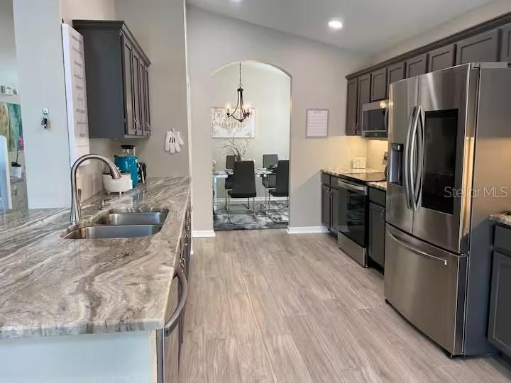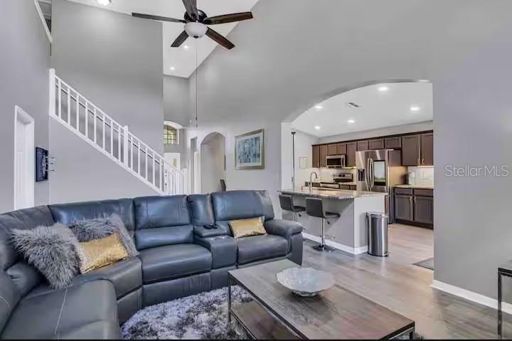 Welcome to this beautiful 5-bedroom, 3-bathroom pool home located in the heart of Davenport, tucked inside a secure and serene gated community. This spacious residence offers the perfect blend of comfort, style, and convenience—ideal for a growing family or as a vacation retreat. Step inside and discover an open-concept layout designed for modern living. The kitchen is a true centerpiece, featuring sleek stainless steel appliances, a large kitchen island with additional seating, and plenty of counter and cabinet space to meet all your culinary needs. Just off the kitchen, you’ll find a dedicated laundry room for added functionality. The home offers five generously sized bedrooms, including a well-appointed primary suite and additional rooms perfect for family, guests, or a home office setup. With three full bathrooms, there’s plenty of room for everyone to have their own space. Step outside and unwind in your private screened-in pool, perfect for relaxing or entertaining under the Florida sun. Whether you’re swimming laps or lounging poolside, you’ll love the peaceful ambiance and privacy this home provides. Set within a well-maintained gated community, residents enjoy peace of mind along with easy access to local attractions, shopping, dining, and major highways. Don't miss your chance to own this incredible home that offers both comfort and luxury in one of Davenport’s most sought-after communities. Schedule your private showing today!