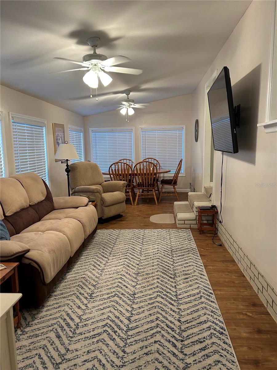 Park East is an age 55+ Resident Owned Cooperative (Co-op) Community. The price of the home includes 1 share of the community ownership valued at $58,200). When you are a shareholder there is no lot rent to pay. The HOA fee for this property is $211.00 monthly which includes Lawn Cutting and Edging, DIRECTV STREAM Cable and Frontier Fiber Optic High Speed WIFI. The clubhouse features an exercise room, library, billiard room and large hall with full kitchen (available to rent for private parties) where loads of community activities take place including Bingo half the year on Thursday nights and community holiday parties. Golf carts ok in community to drive on roads. Come live in this well sought after community and also enjoy the beautiful picturesque lakefront with 2 boat docks and picnic area. Executive public 9 hole golf course surrounds this beautiful community. Incredible picturesque lakefront with picnic area ,bbq's and firepit private boat ramp docks and fishing pier. Pool area with lounges, heated pool with relaxing spa. 15 minutes to Disney property. Taxes are paid to Polk County. WONDERFULLY UPDATED MANUFACTURED DOUBLE WIDE NESTLED DEEP INTO THIS BEAUTIFUL COMMUNITY. JUST A FEW HOUSES AWAY FROM THE LAKE ACCESS. THE HOME FEATURES 3 BEDROOMS 2 RENOVATED BATHS AND A 10 X 25 REAR EXTENSION (ALL PERMITS FILED WITH COUNTY) USED AS A COMFORTABLE DEN. THE HEATED / AIR CONDITIONED AREA OF THIS HOME IS 1,370 SQ. FT. THE HOME HAS NEW LAMINATE FLOORS AND CERAMIC TILE FLOORS. NEW ROOF 2 YEARS AGO. NEW DOUBLE PANE INSULATED WINDOWS LAST YEAR. ATTACHED GOLF CART GARAGE BIG ENOUGH TO HOUSE 2 GOLF CARTS. ALSO FEATURES A DOUBLE WIDE FRONT CARPORT / COVERED PATIO AND A COMFORTABLE LANAI. OCCUPANCY APRIL 1, 2026