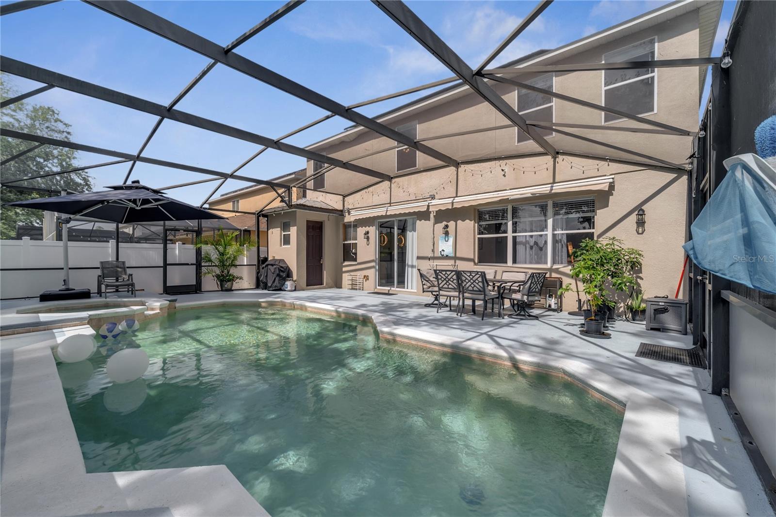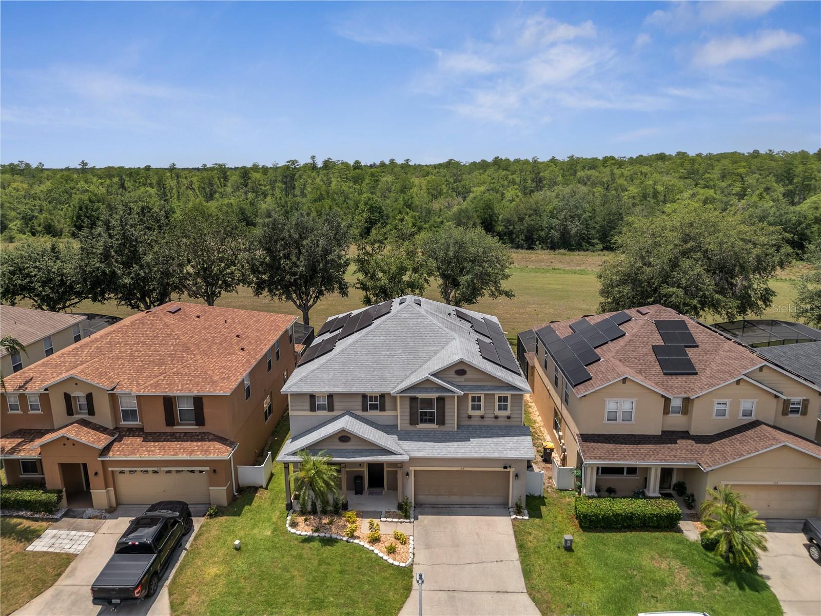 **JUST PRICE REDUCED, HIGHLY MOTIVATED SELLERS** Welcome HOME! Presenting 325 Aldridge Lane a gorgeous pool home property nestled beautifully in the desirable community The Retreat at Legacy Park in Davenport. This sleekly designed 5-bedroom, 4.5-bathroom home offers you 3,396 square feet of comfort. The oversized open floor plan with high ceilings is designed with a wide variety of features to include a downstairs master bedroom option, upstairs master bedroom option, 3 additional spacious rooms, a convenient upstairs laundry room, open kitchen-living room combo, formal dining area, and greater living room area. While including on the exterior a spacious front porch, paver walkways on each side of the home, and a huge FENCED back yard to compliment your private pool oasis. This homes pool offers a spacious deck size including a spa, outdoor bathroom, mechanical awnings for shade, additional exterior lighting, transparent lower privacy pool screens, and the most gorgeous retention pond / conservation wooded view you could ever ask for. Plenty of privacy with no rear neighbors for quiet time enjoyment and family gatherings. Some of the homes most highlighted features are to include a beautifully designed open kitchen with a huge island offering Quartz countertops, stainless appliances, brand new luxury heavy weight front door with digital entry pad lock, brand new silent garage door opener, installed electric car charger in the garage, upgraded vanities & toilets for restroom areas, upgraded light fixtures, brand new carpet on the stairways to second floor, Bluetooth speakers installed to master bathroom upstairs, and fresh interior paint done within 2024. Your exterior upgrades include matured landscaping with added rock, new matured upgraded sod (grass) added to the home, brand new pavers added to each side of the home exterior for pathways, exterior drainage to protect any standing water, brand new pool screening of the entire framing, mechanical pool awnings, and vinyl fencing within the yard. Digital upgrades include a brand-new rainbird irrigation system that can be controlled from an App, App controlled AC control switch, and a brand-new pool pump that can be digitally App controlled as well. With an amazingly built 2005 structure, this property is complimented with a 2021 roof, 2015 HVAC, 2024 Irrigation system, and 2023 solar panel system offering light bill energy savings you cannot believe. Previous bills are available upon request to showcase the value this solar panel system has brought to the home all under leased warranty with an end of contract opt-out or purchase. The location within Davenport itself is also a key highlight feature for the property, making it perfect for an Airbnb investor or first-time homeowner using this as your primary residence. While you are conveniently just minutes away from local grocery stores, shopping plazas, major interstate toll roads, gas stations, endless restaurants, hospitals, and urgent care facilities. You are centrally just 20 minutes away from Disney theme parks attractions and Disney Springs area. And, right under 30 minutes away from Island of Adventure, Universal Studios, City Walk, and Sea World attraction parks in Orlando! This property just feels like a new chapter starting and is the perfect forever home for a family. This gorgeous home will not last! Book your private showing today! Sellers have an appraisal report completed as of 5.16.25 that is available upon request.
