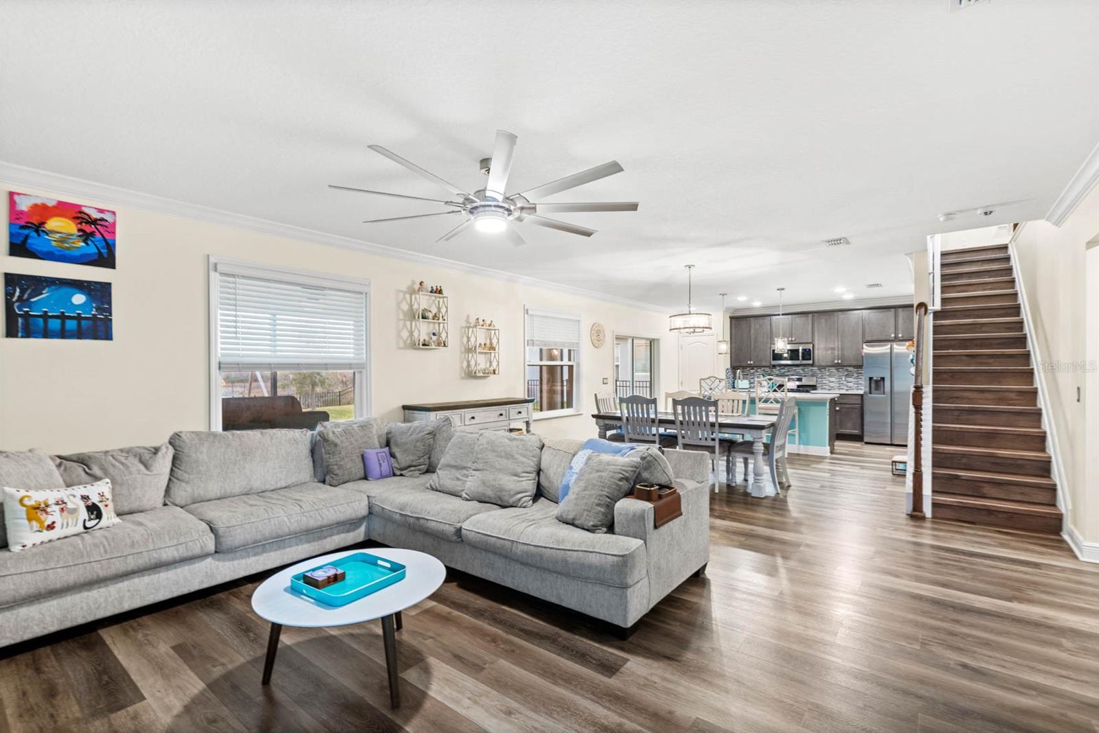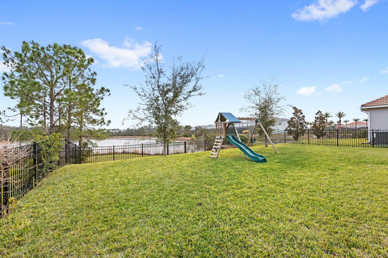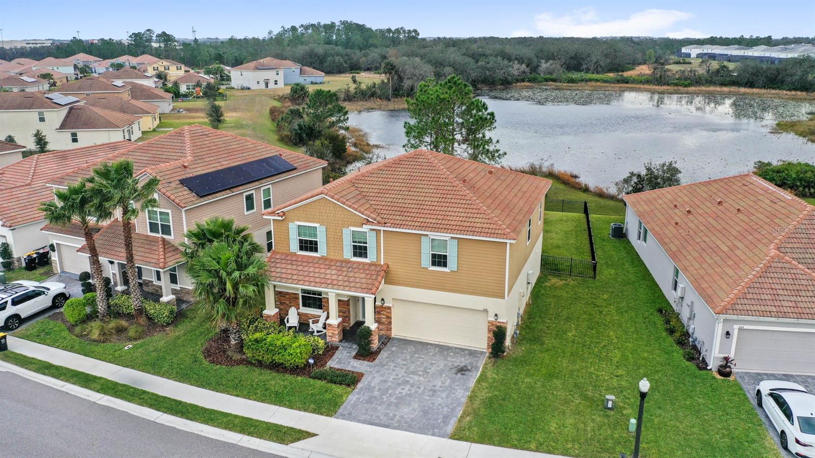 Welcome to Your Dream Home in Solterra Springs! Discover resort-style living with residential peace of mind in the highly sought-after gated community of Solterra Springs. This stunning, newer 5-bedroom, 3-full-bath home offers an abundance of modern upgrades and luxurious features, making it the perfect haven for relaxation, entertainment and very Family friendly. Key Features Include: Luxury Vinyl Plank Flooring throughout for durability and style, Crown Molding that adds a touch of elegance, Stainless Steel Appliances and Quartz Countertops in the kitchen, Custom Primary Closet, Extended Screened-In Coastal Lanai for year-round outdoor enjoyment, Strada Home Security System for added peace of mind. The layout boasts large bedrooms, including a first-floor ensuite for convenience and a primary suite upstairs for ultimate privacy. The backyard is an oasis with water views, breathtaking sunsets, and a large fenced-in yard, perfect for relaxation or entertaining. Room for your DREAM POOL in this yard! Community Amenities You'll Love: Resort-style pool and lazy river, fully equipped gym, Sand volleyball court, Two playgrounds, a brand-new meeting center. This home truly has it all, blending luxurious living with the comforts of a welcoming community. Don’t miss your chance to make this exceptional property your own. Schedule your private showing today!