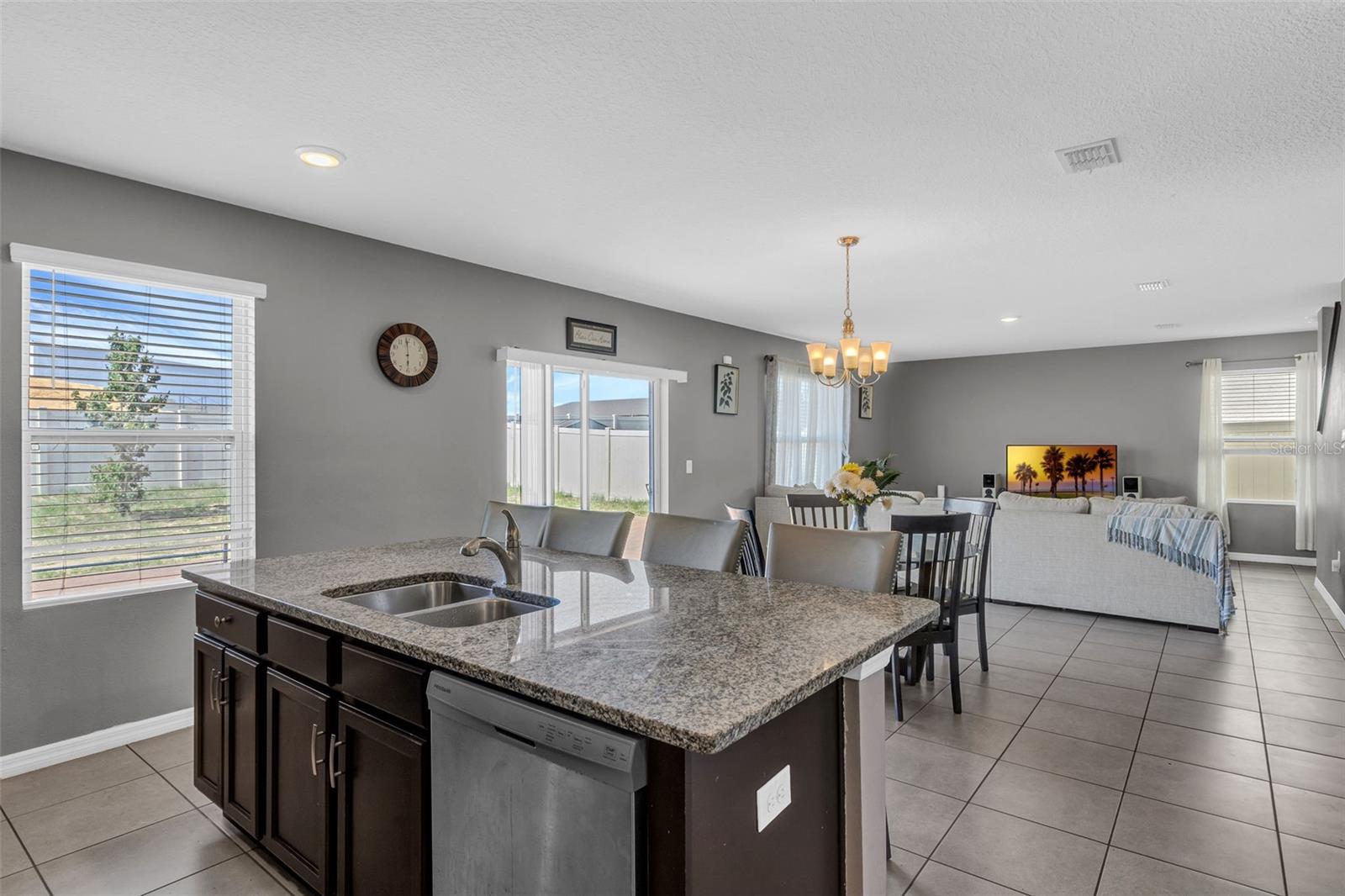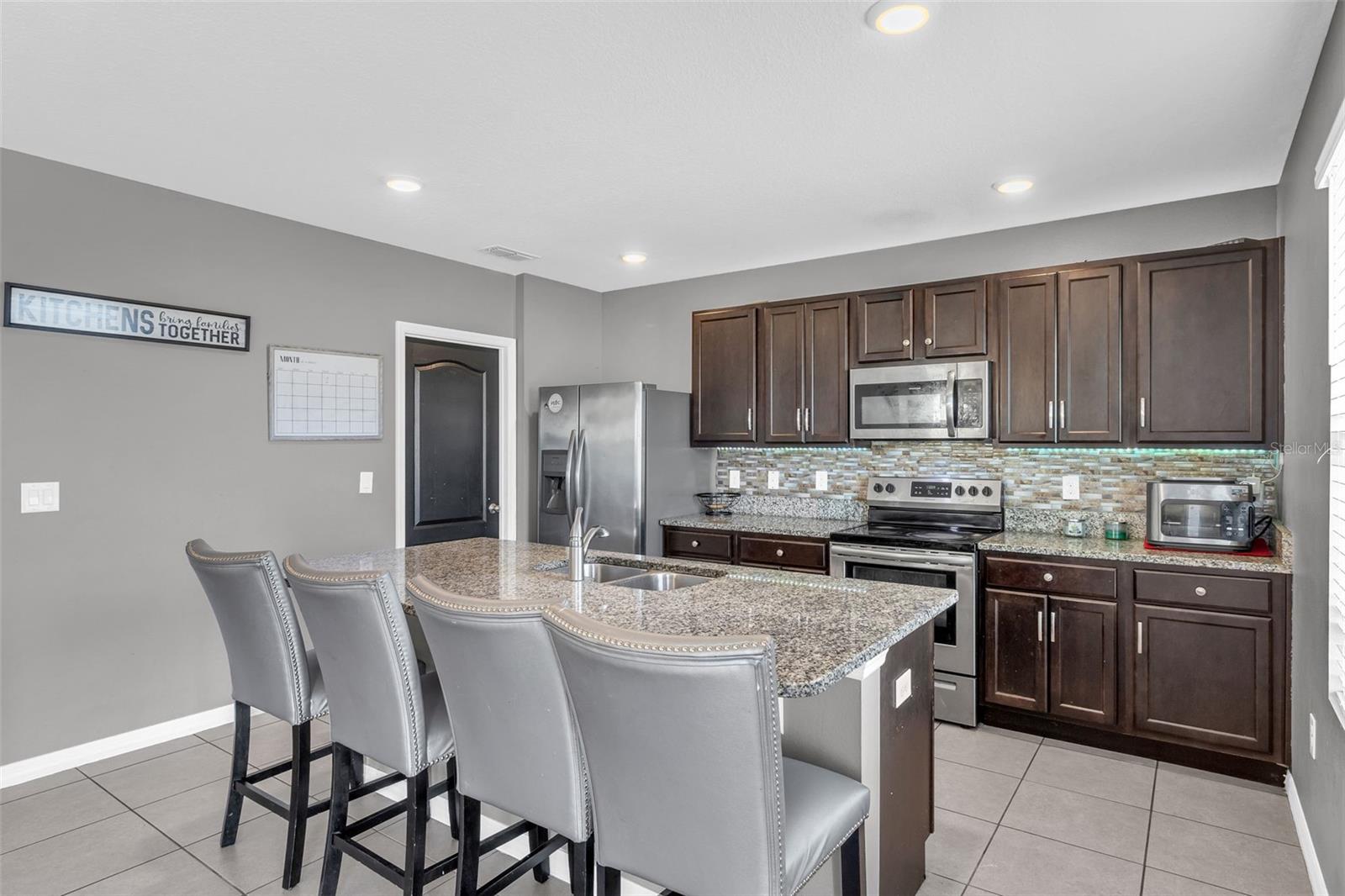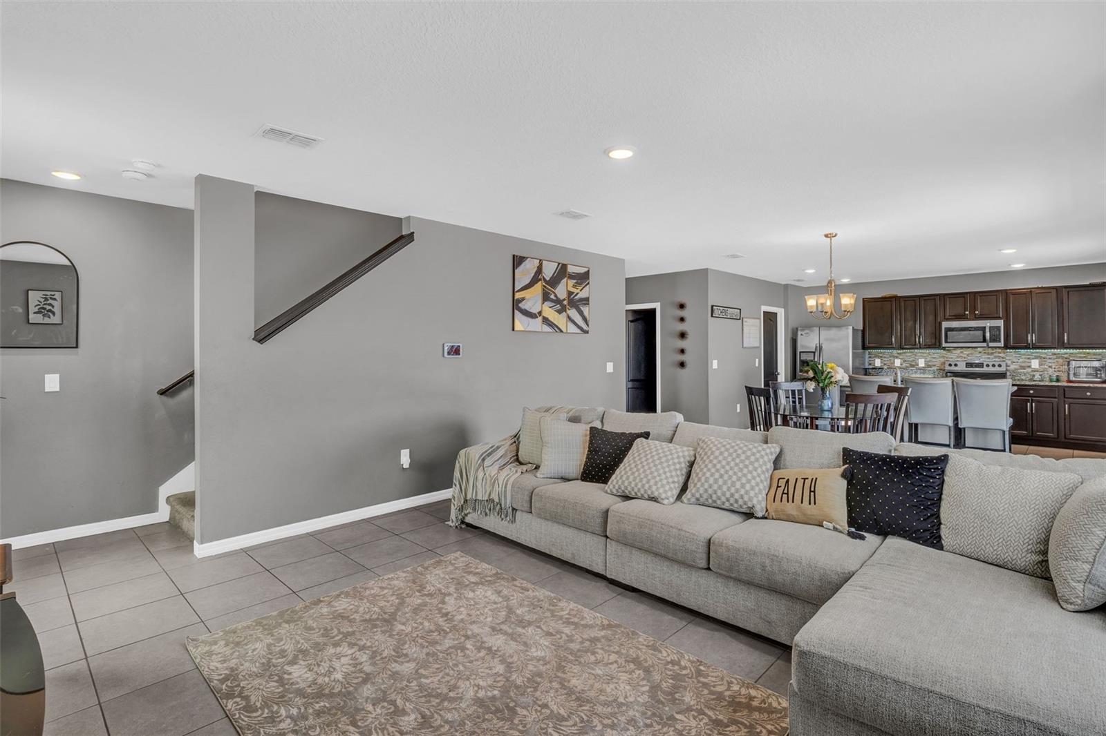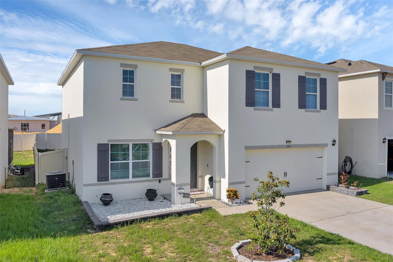 Welcome to 269 Ludisia Loop, a beautifully maintained 4-bedroom, 2.5-bathroom single-family home located in the sought-after community of Orchid Grove in Davenport, Florida. Built in 2019, this spacious two-story residence offers over 2,500 square feet of comfortable living space with a thoughtfully designed layout that blends functionality with modern style. The heart of the home is a stunning open-concept kitchen featuring granite countertops, stainless steel appliances, ample dark wood cabinetry, a stylish backsplash, and a large center island that seamlessly flows into the dining and living areas—perfect for entertaining guests or enjoying everyday family life. Upstairs, the expansive primary suite boasts a walk-in closet and a private ensuite bathroom, while four additional bedrooms provide plenty of space for guests, home offices, or growing families. Throughout the home, you’ll find plush carpeting and durable ceramic tile, along with high ceilings and abundant natural light. The upstairs laundry room adds convenience, and the fully fenced backyard offers a safe, private outdoor space ideal for relaxing or letting pets roam. Residents enjoy access to community amenities including a swimming pool, playground, park, and sidewalks. The home also includes a two-car garage, central air and heating, and is zoned for Loughman Oaks Elementary, Boone Middle, and Ridge Community High School. Conveniently situated near Highway 27 and just minutes from shopping, dining, and Central Florida’s famous attractions, this home offers the perfect balance of comfort, convenience, and community. This move-in ready property is a must-see for buyers looking to settle in one of Davenport’s most desirable neighborhoods.