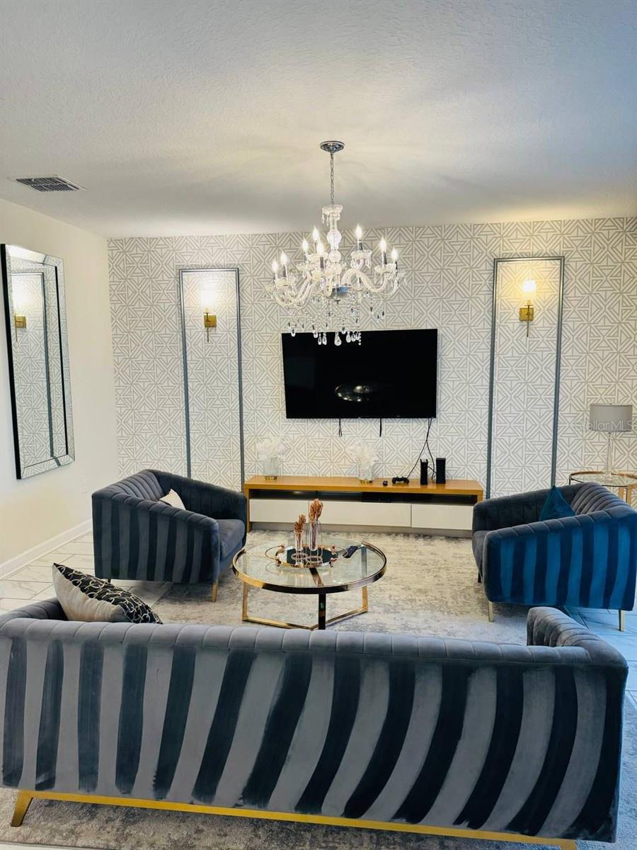 One of a kind Luxury furnished and decorated house with a Top Designer! This Airbnb vacation home located just 15 minutes from the Disney parks, this exceptional residence combines the allure of its location with exquisite interior design, embodying a unique blend of style, luxury, and comfort that elevate each day into an unparalleled experience. Boasting 6 bedrooms, 5 bathrooms, and a meticulous decoration carried out by expert designers, every corner of this property surprises with a sense of opulence. From the spacious living room with a home theater to the cozy game room, each detail has been carefully crafted for entertainment, elegance, and enjoyment. Additionally, it includes internet, cable, phone services, and garden maintenance, ensuring a relaxed and worry-free lifestyle. The real highlight is the exclusive resort-style club that offers a slow river, water slides, a poolside bar, spa, as well as volleyball and tennis courts, transforming each day into a retreat of luxury and a unique experience. This residence is not just a home; it's a lifestyle change where sophistication and comfort merge in a setting of unparalleled elegance. It's impossible not to want to call this house your home!