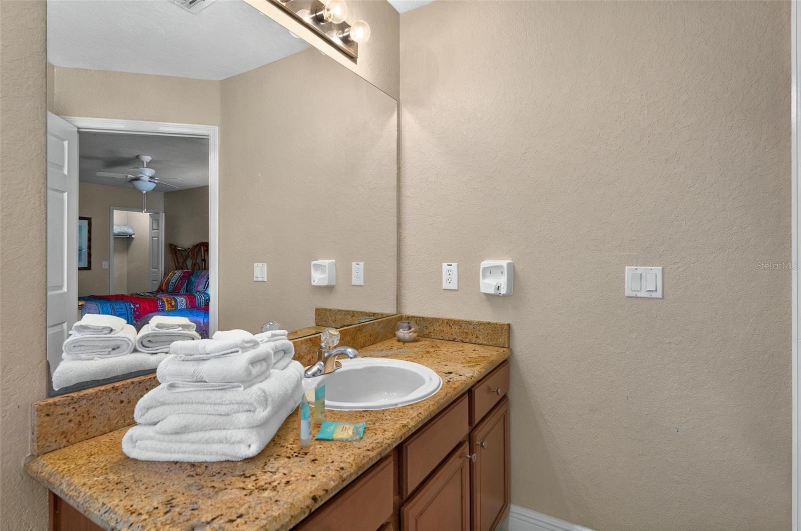 Beautifully furnished 3-bedroom, 3-bathroom two-story townhome located in the highly sought-after Regal Palms Resort. This spacious home features two ensuite bedrooms, offering ideal privacy and flexibility. The downstairs primary suite includes a private entrance, making it perfect for use as a lockout unit or home office. The kitchen is fully equipped with granite countertops, stainless steel appliances, and all the essentials for preparing meals at home. Sold fully furnished, this property is move-in ready and ideal as a primary residence, vacation home, or investment property. The HOA covers a wide range of services, including 24/7 manned security gate, internet, basic cable, exterior maintenance (including the roof), trash service, pest control, and exterior insurance—providing peace of mind and low-maintenance living. Enjoy access to resort-style amenities including lagoon-style pools, lazy river, water slide, jacuzzi, poolside tiki bar, arcade, on-site restaurant, and ice cream shop. Additional features include a fully equipped fitness center, sauna, volleyball court, and playground. Conveniently located near shopping, dining, major highways, and just a short drive to Orlando’s world-famous theme parks. Don’t miss your chance to own in this vibrant and amenity-rich community—schedule your showing today!