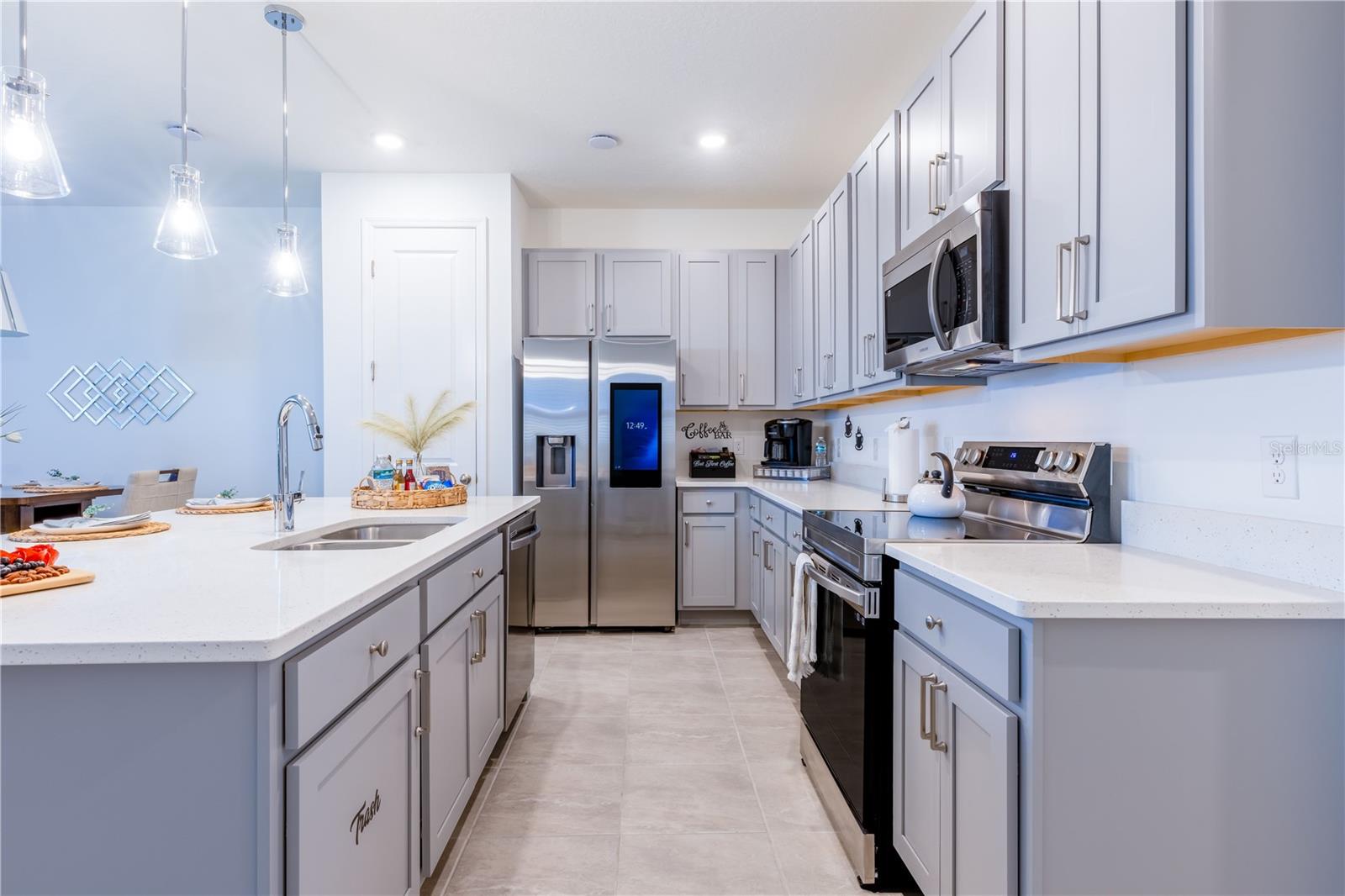 Stunning 3-Bedroom Townhome Minutes from Disney – Fully Furnished & Short-Term Rental Ready! Investors Call! Welcome to this beautifully upgraded 3-bedroom, 2.5-bath townhome offering a bright, open-concept layout designed for modern living. The stylish kitchen is a true showstopper, featuring 42” grey cabinetry, quartz countertops, a large center island perfect for entertaining, and premium Samsung stainless steel appliances including a range, microwave, and dishwasher. Downstairs boasts elegant 17x17 ceramic tile flooring, while the upstairs bedrooms feature plush Shaw carpeting for added comfort. This energy-efficient home includes double-pane low-E vinyl windows, water-saving fixtures, R-30 ceiling insulation, and LED lighting throughout. Sold fully furnished, this property is move-in ready and ideal as a primary residence, vacation home, or short-term rental investment. The community offers exceptional resort-style amenities, including a sparkling pool, water park, state-of-the-art fitness center, 18-hole mini golf course, and beach volleyball court. Centrally located just minutes from Posner Park, Champions Gate, shopping, dining, and world-famous Disney Parks—this townhome is the perfect combination of style, convenience, and opportunity. Investors welcome!