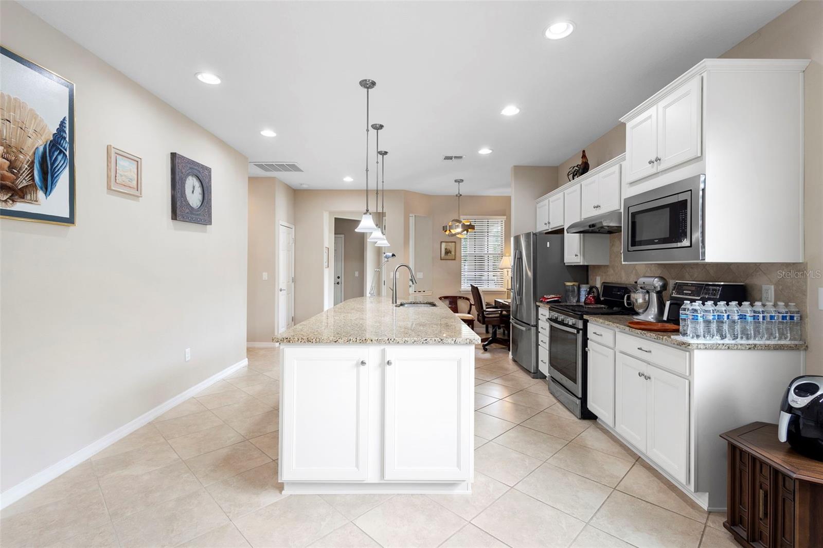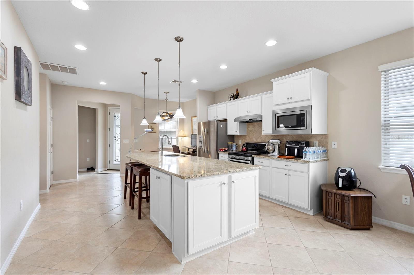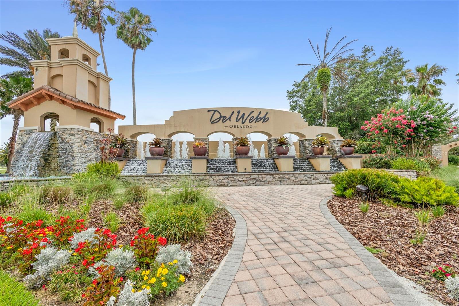 Spacious 2-bedroom, 2-bath home with a 2-car garage in Del Webb Orlando, the premier 55+ community. Inside, the kitchen shines with crisp white cabinets and stainless-steel appliances, while a brand-new air-conditioning system (with warranty) ensures comfort year-round. The home is conveniently located just steps from the secondary resident-only gate, and offers peace of mind with a 24/7 staffed security gate and master association-owned private road maintenance. Del Webb Orlando residents enjoy exclusive access to the 30,000+ SF Montecito clubhouse—featuring a cozy tavern, indoor walking track, fitness center, indoor/outdoor pools and spas with locker rooms, billiards, ping pong, craft room and a grand ballroom for special events. Outdoor amenities include pickleball, tennis, bocce, basketball, shuffleboard, a community gardening center, an outdoor amphitheater, a large brick fire pit, and a screened-in gazebo over the water. Miles of biking and walking trails wind through the Ridgewood Lakes gated community, and the home sits adjacent to the recently renovated 18-hole White Heron Golf Club. Conveniently located just four miles from Posner Park shopping and minutes from Disney World, Universal Studios and other Orlando/Central Florida attractions, this residence also offers easy access to I-4, medical facilities, airports, and the Sunrail station. AdventHealth Hospital is only three miles away, making this home an ideal blend of active resort-style living and everyday convenience.