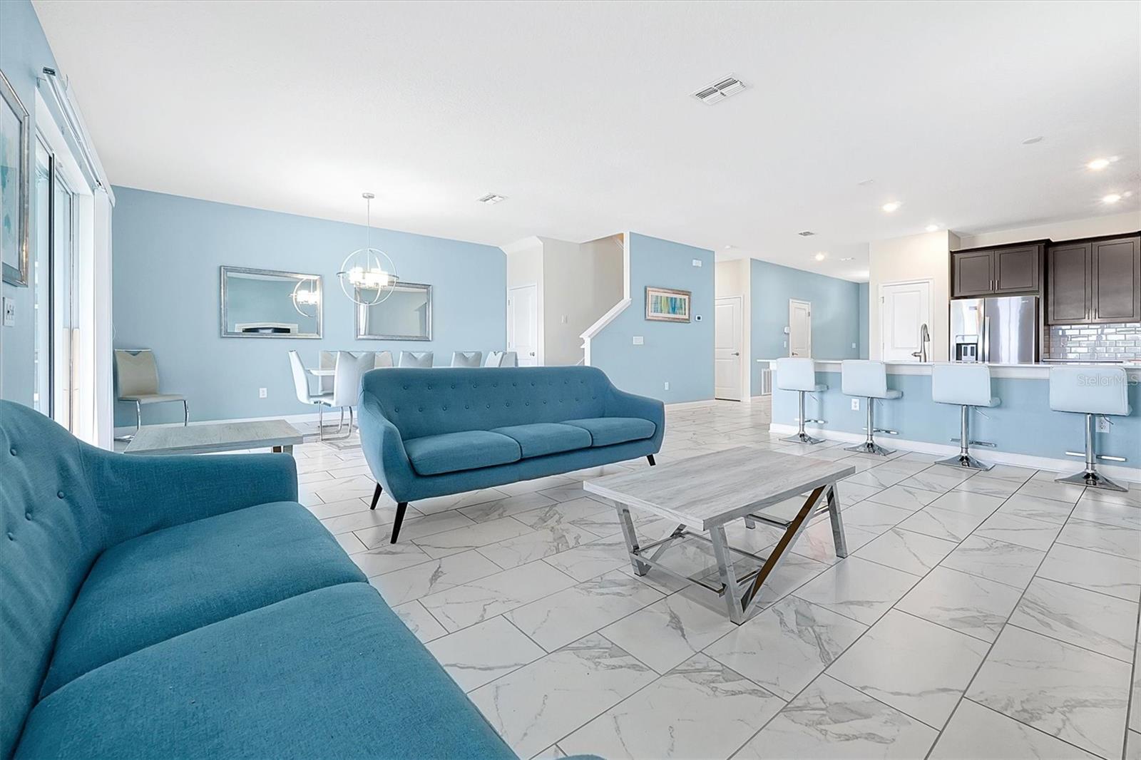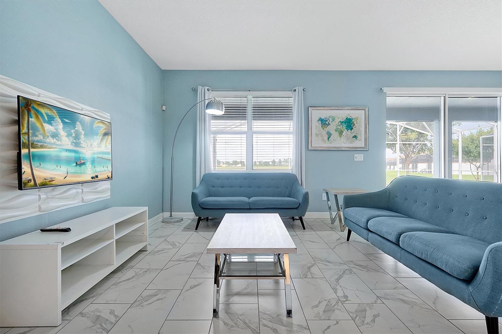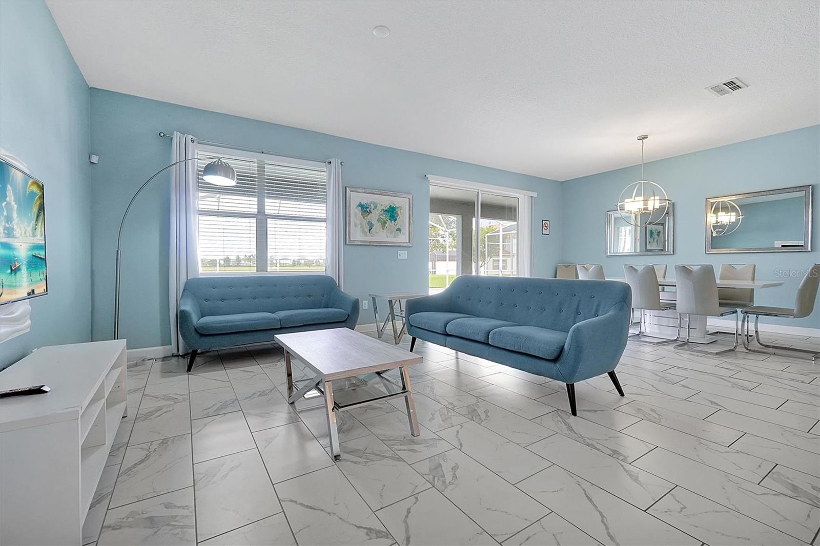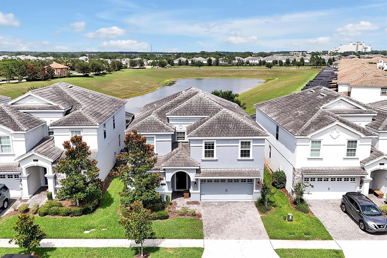 WATER VIEW! SAPCIOUS BEAUTIFUL FULLY FURNISHED RESORT STYLE POOL HOME! One of the most famous GOLF Resorts in Orlando - gated and guarded Championgate Community! Enjoy Golf on site! 8 bedrooms and Movie/Theater Room and Loft and 5 bathroom. Title roof. Open floor plan. Professional design and decorations in the whole house, costumed paintings, modern beautiful tiles, furnitures, lightings, luxury theater room, garage converted to a large game room, covered screened lanai, heated pool, water view without neighbors on the back...all are PERFECT for indoor and outdoor gathering and entertaining! Oversized master suite downstairs with garden tub and separated shower. This is an AMAZING resort community, features an over 10000 sqft clubhouse, fitness center, pools, lazy river, waterslide, theater, game room, restaurant, tiki bar, cabanas, tennis, volleyball...etc. Only a few mins to shoppings, eatings. Closed and easy access to Disney World, Universal, Sea World, Premium Outlets. HOA includes Internet/Cable and Lawn maintenance and Daily Trash and Community amenties access. Schedule a showing TODAY!